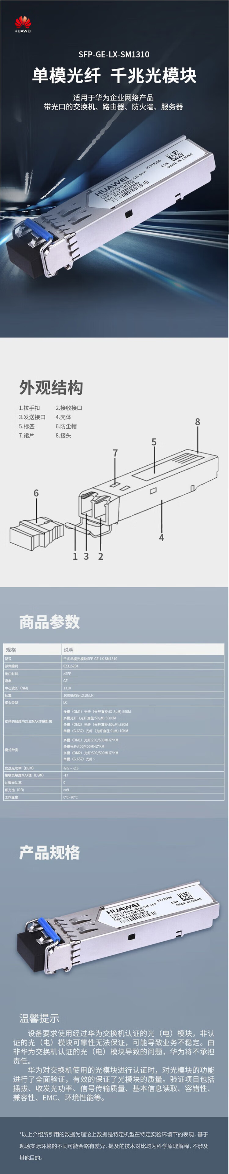 Huawei (HUAWEI) SFP-GE-LX-SM1310 Huawei optical module Gigabit single-mode optical fiber module (1310nm, 10km, LC)