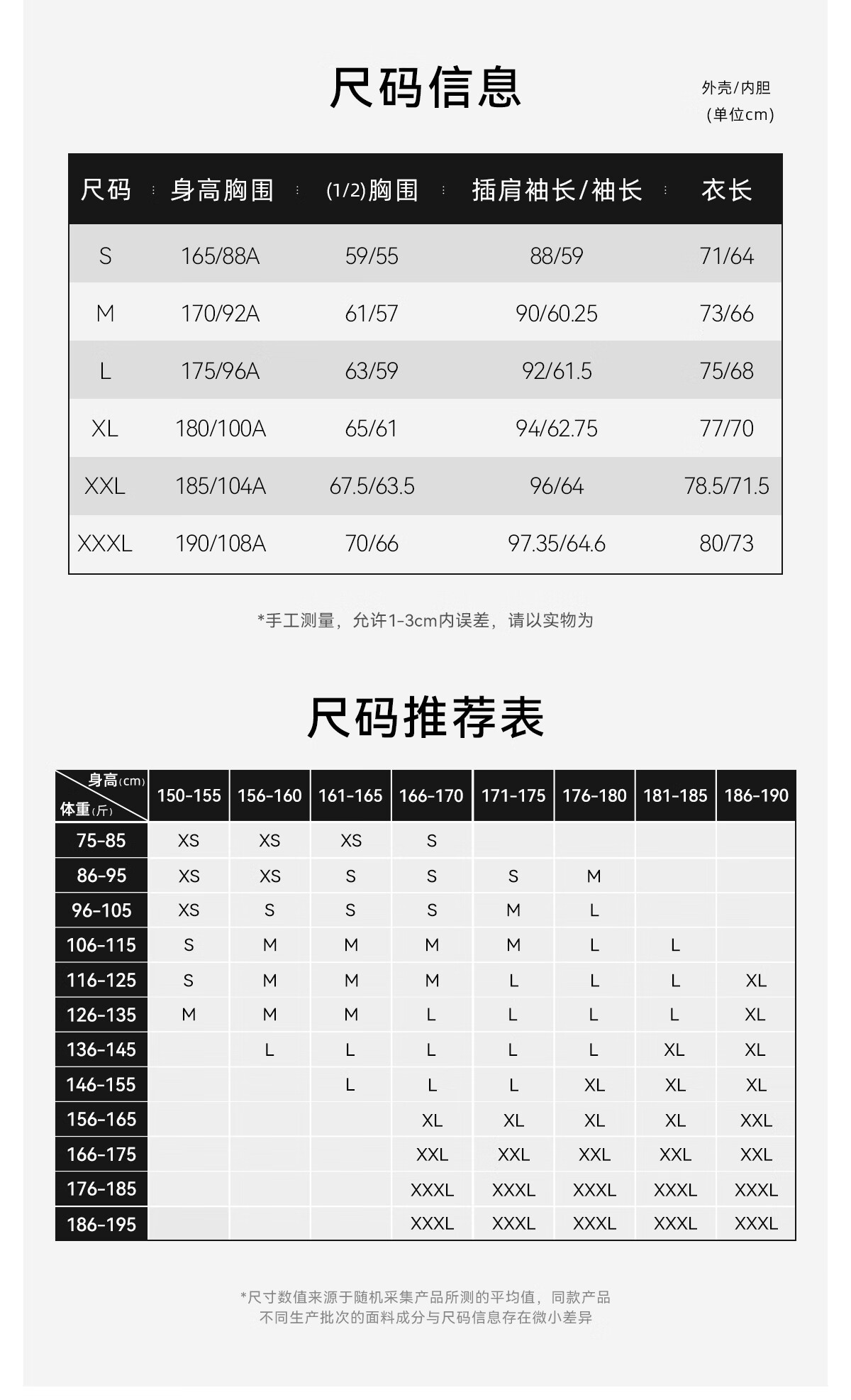 China (cm) 165 / 88-90 170 / 96-98 175 / 108-110 180 / 118-122 185 / 126-130