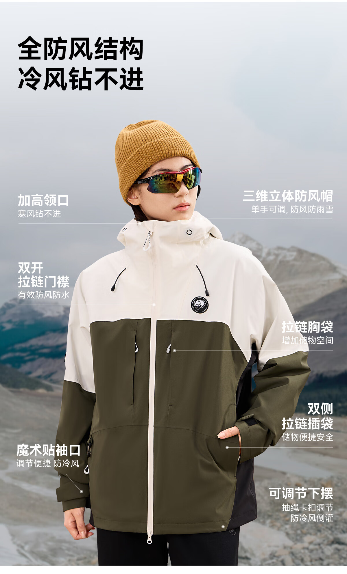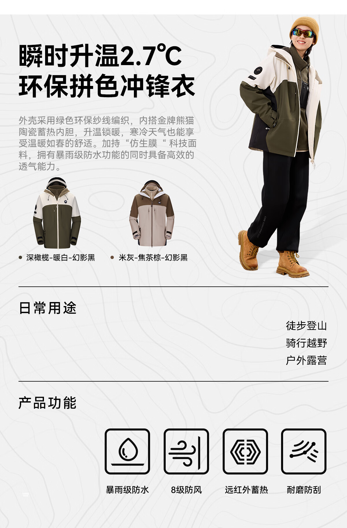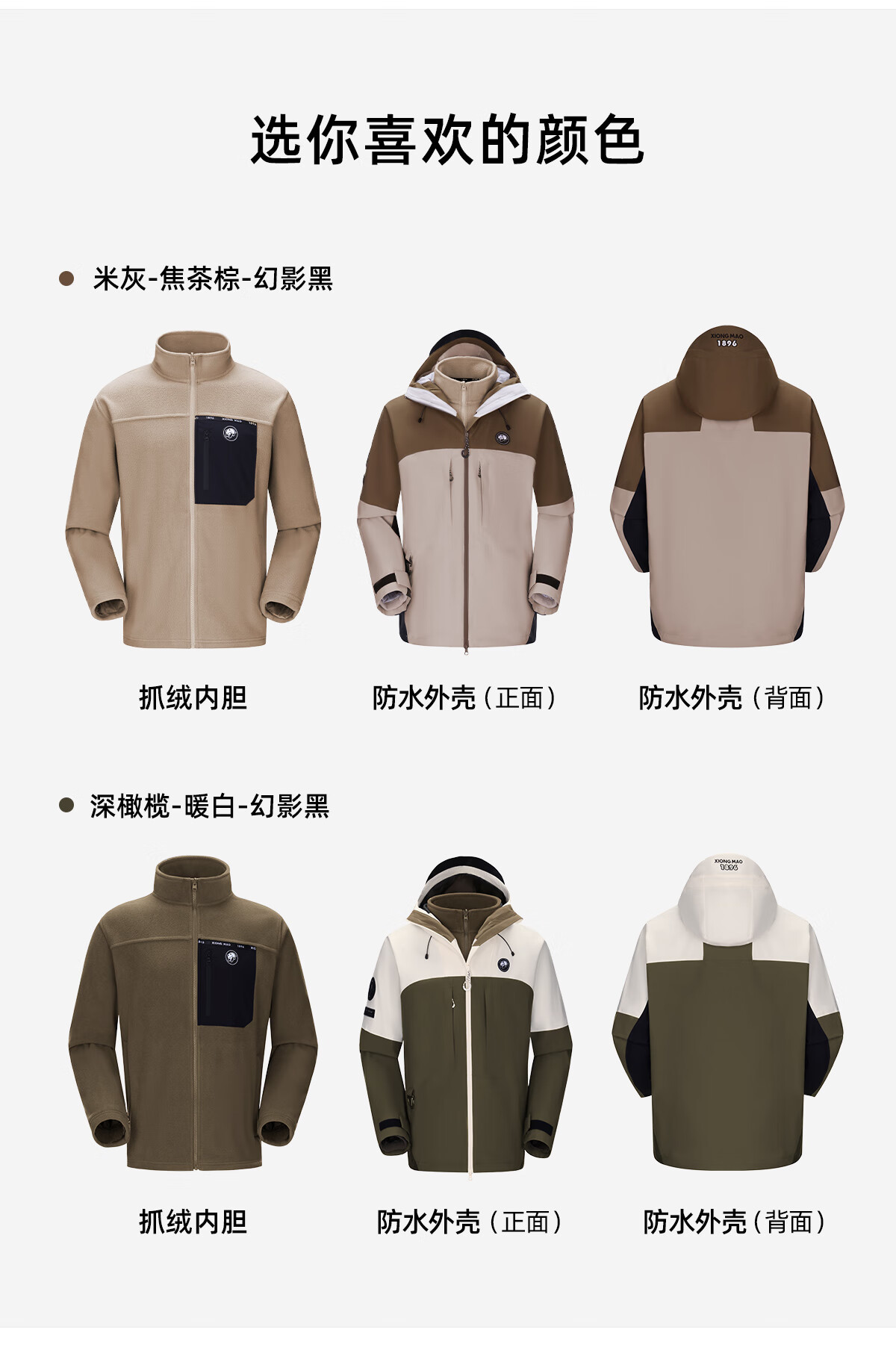 Panda Camel Series 3-in-1 Jacket Fleece Warm Waterproof Windproof Mountaineering Jacket for Men and Women 0604,L