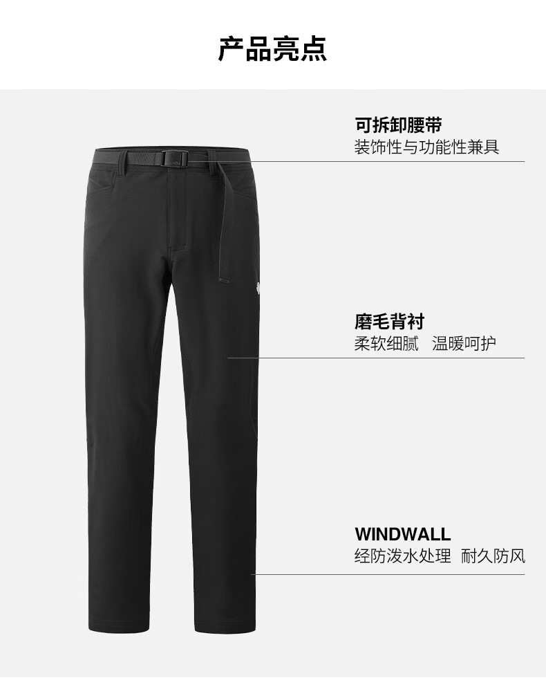 The North Face casual trousers for men, outdoor warm, splash-proof and windproof sports pants 8DMF black/JK3 34
