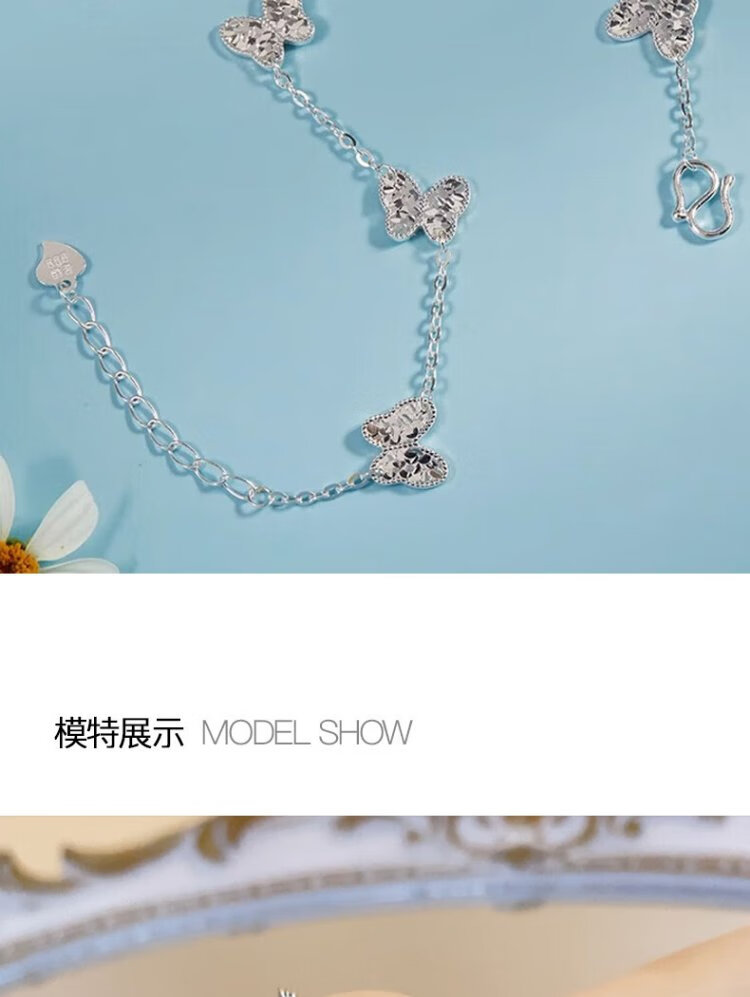 Lossot Fashionable Butterfly Platinum Bracelet Women's PT950 Platinum Butterfly Bracelet Girlfriend Wife Birthday Gift