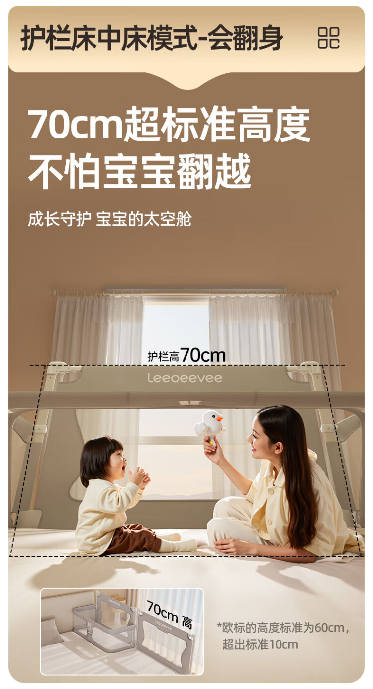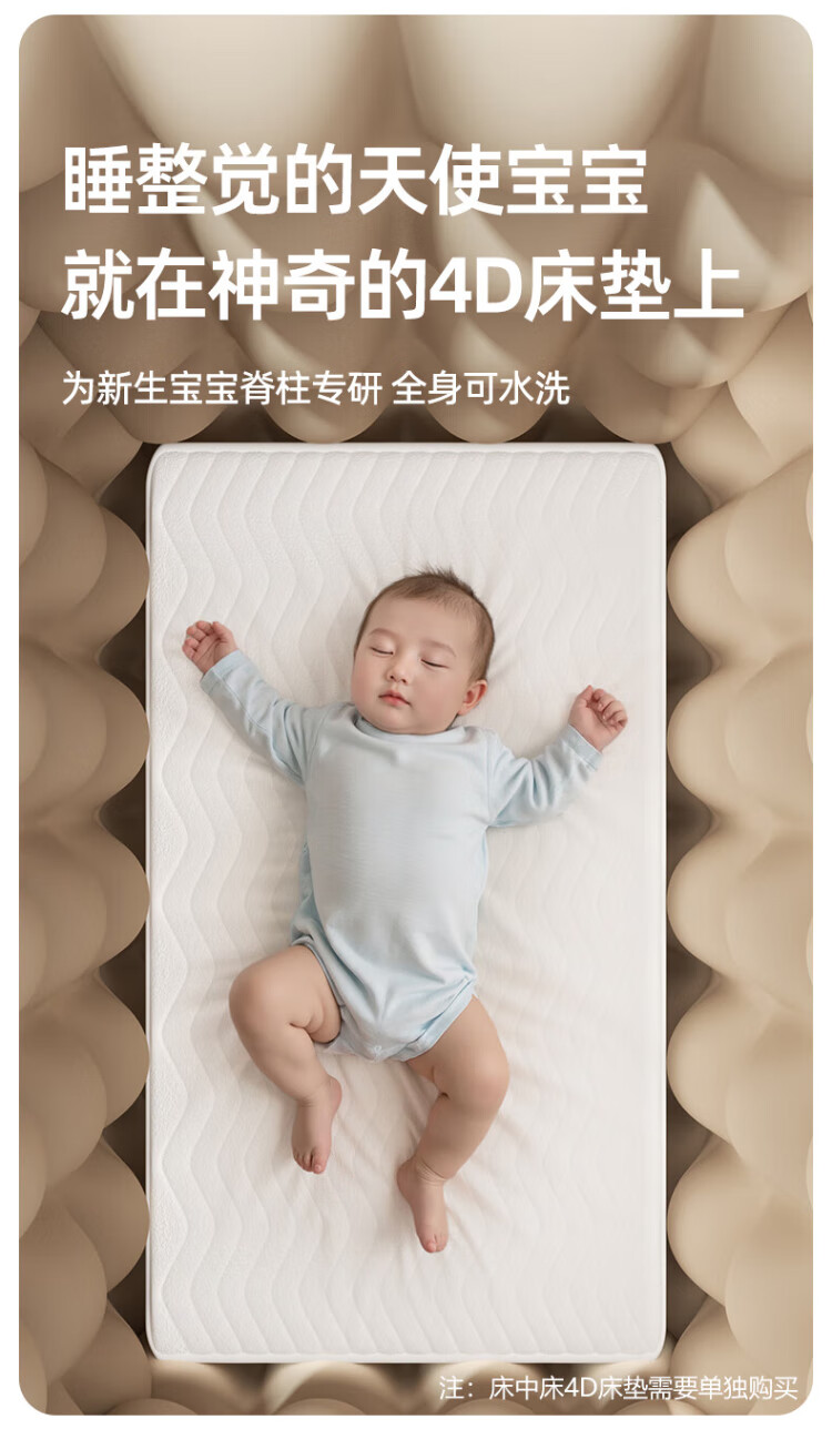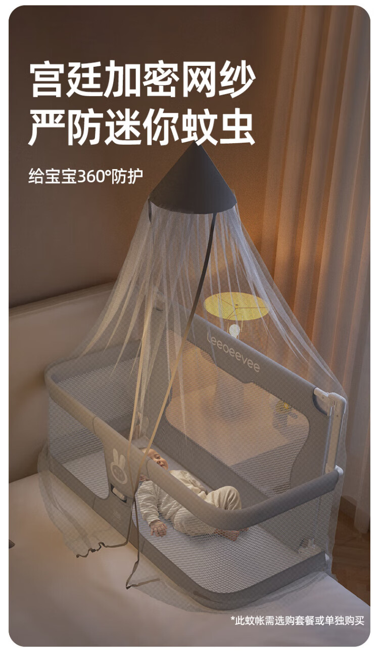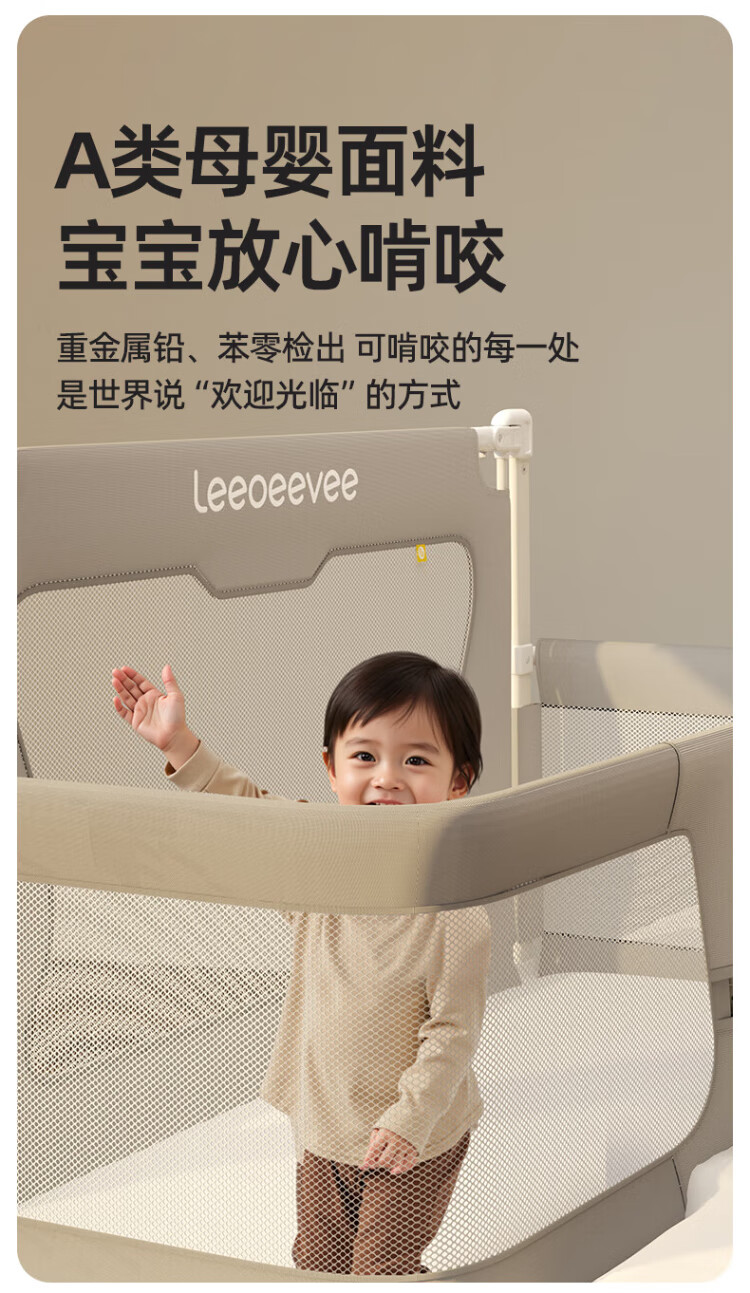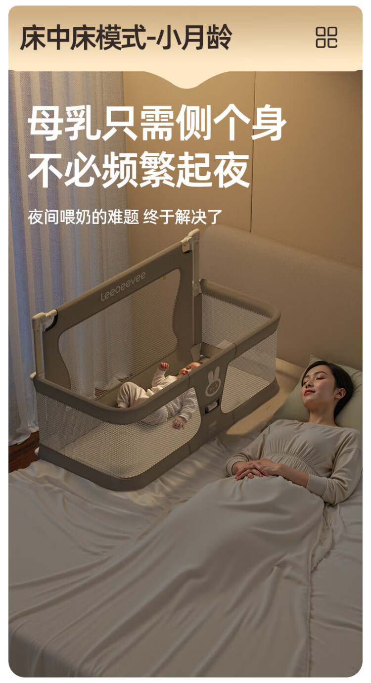 Leeoeevee deer bed in bed baby baby bed lifting anti-pressure portable bed multi-functional installation-free upgraded model beige