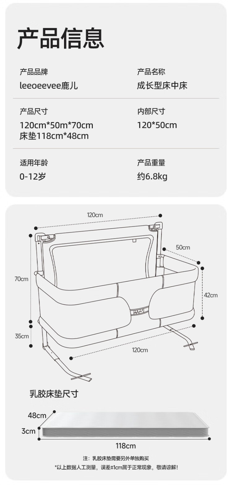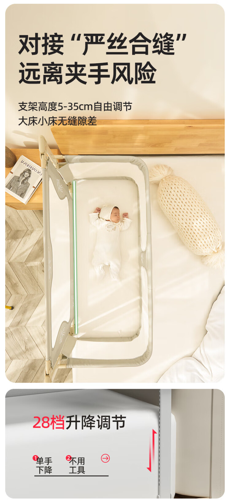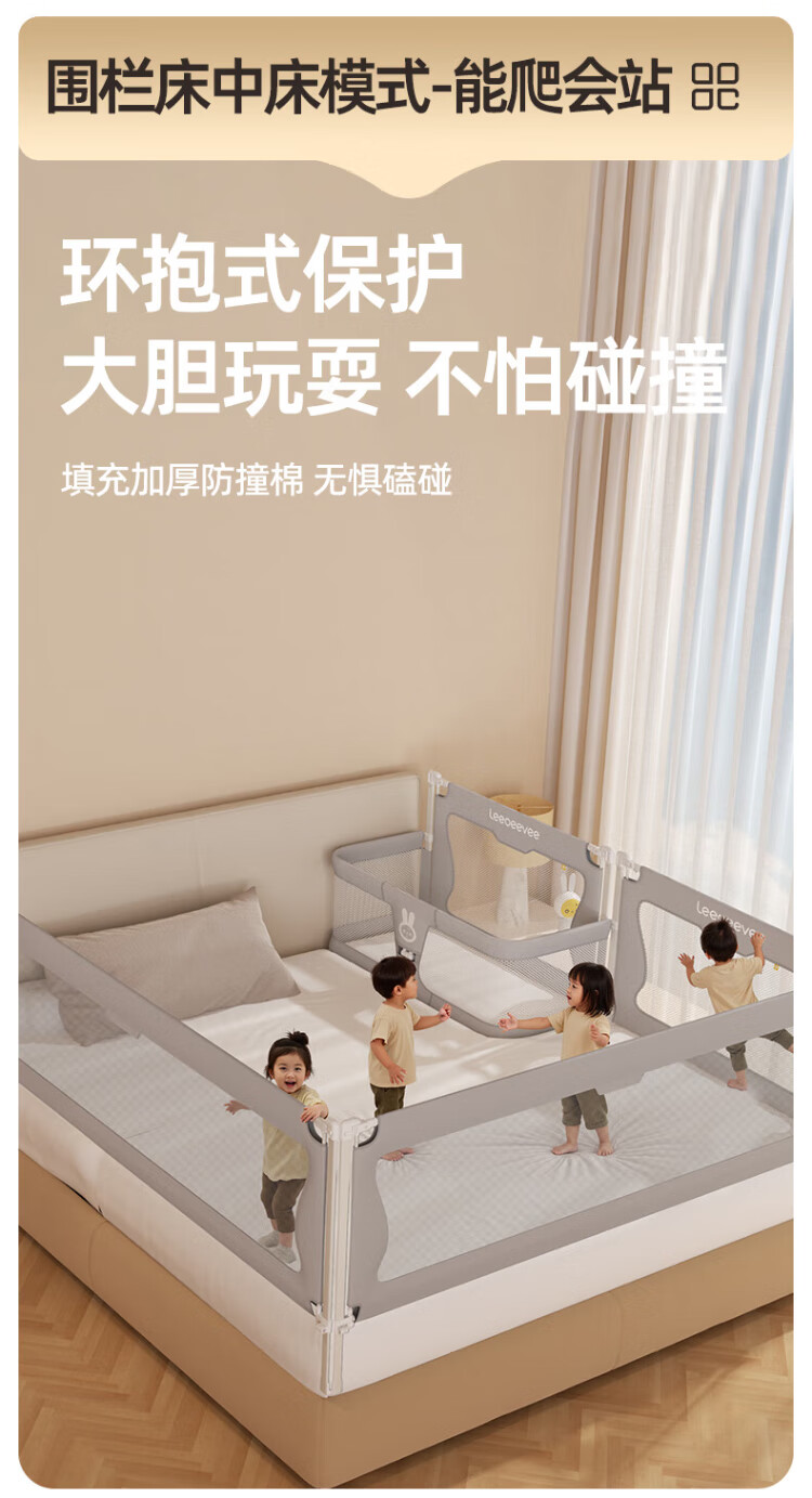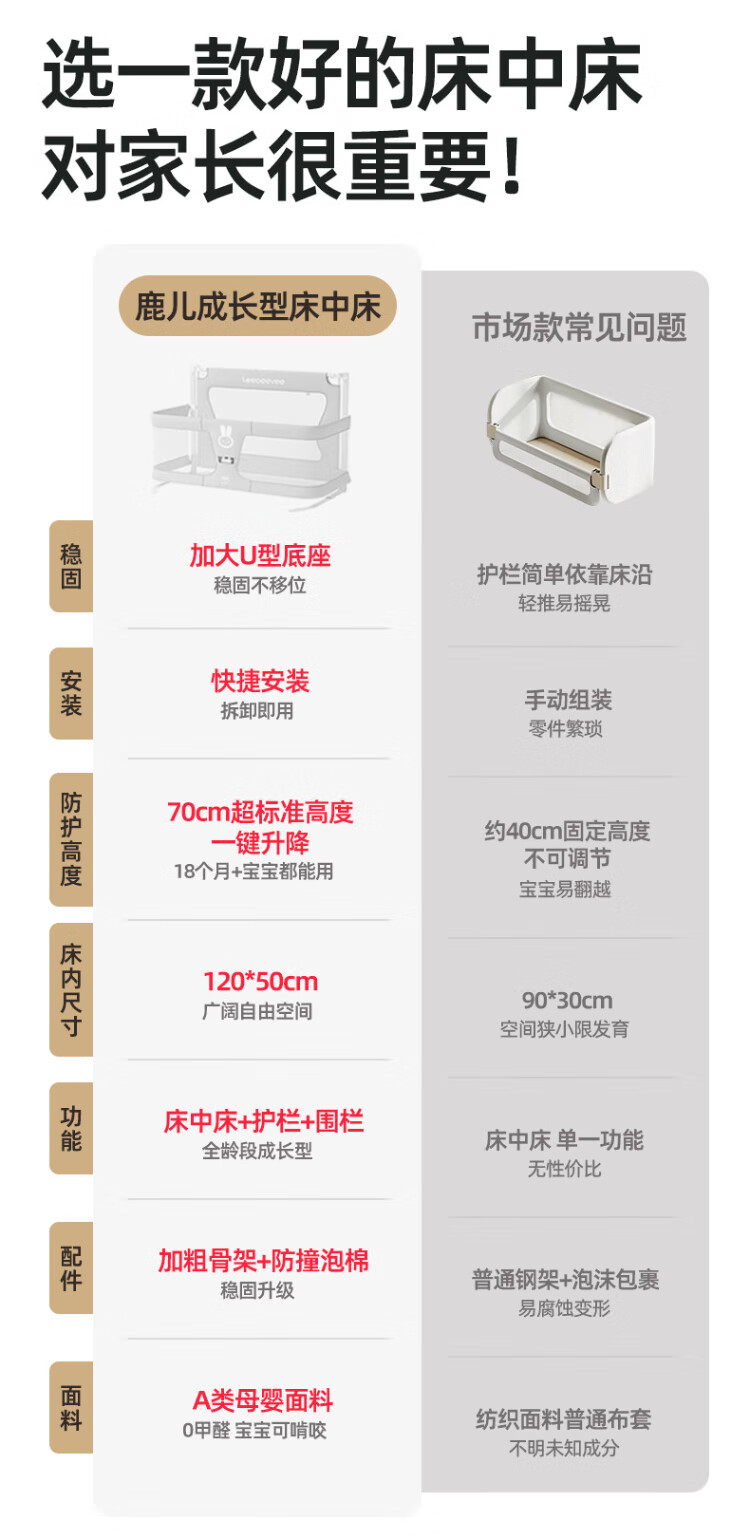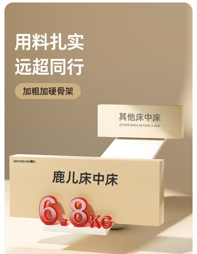 Leeoeevee deer bed in bed baby baby bed lifting anti-pressure portable bed multi-functional installation-free upgraded model beige