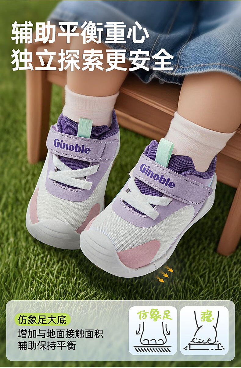 Jinopu children's walking shoes functional shoes 2025 spring and autumn infant shoes for men and women baby shoes children's shoes GB2461 Yuanshan Purple