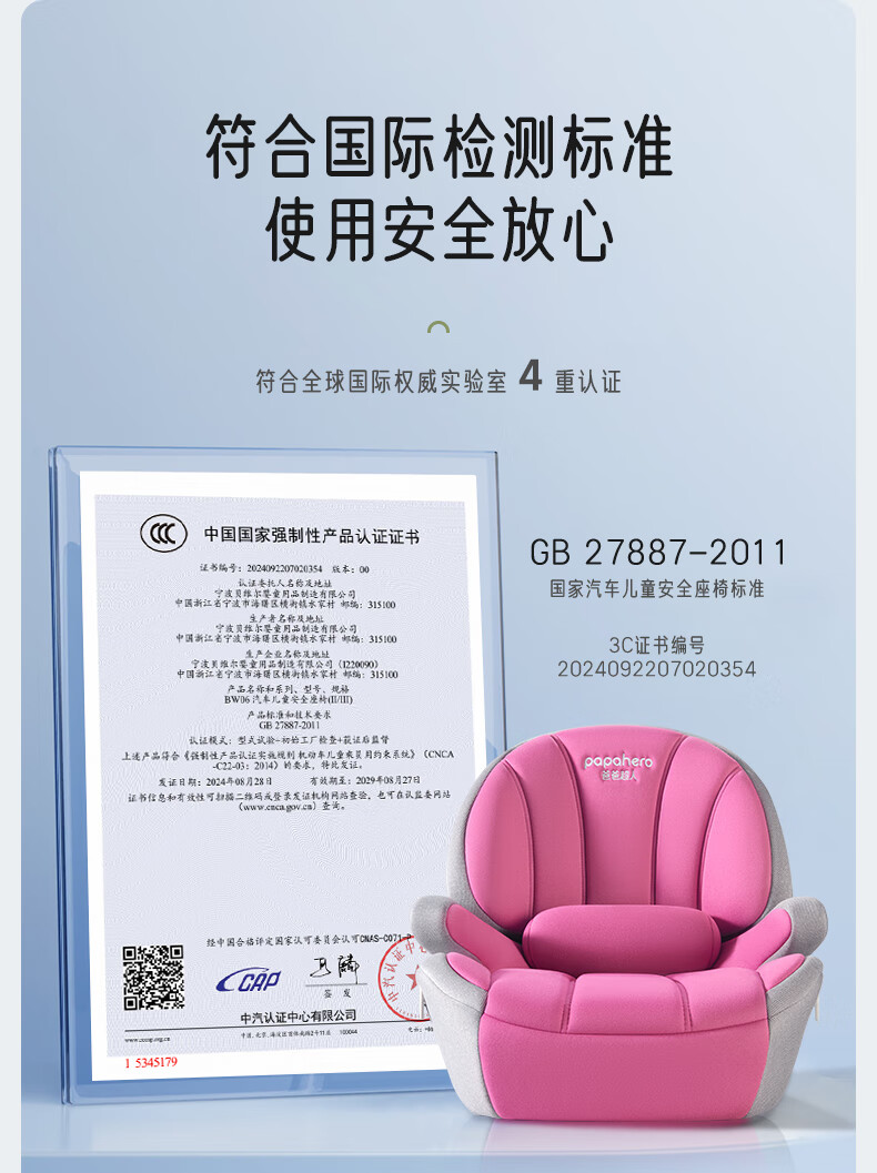 Dad Superman papahero child safety seat booster cushion 3 years old - 12 years old car for big children baby car seat cushion portable gray