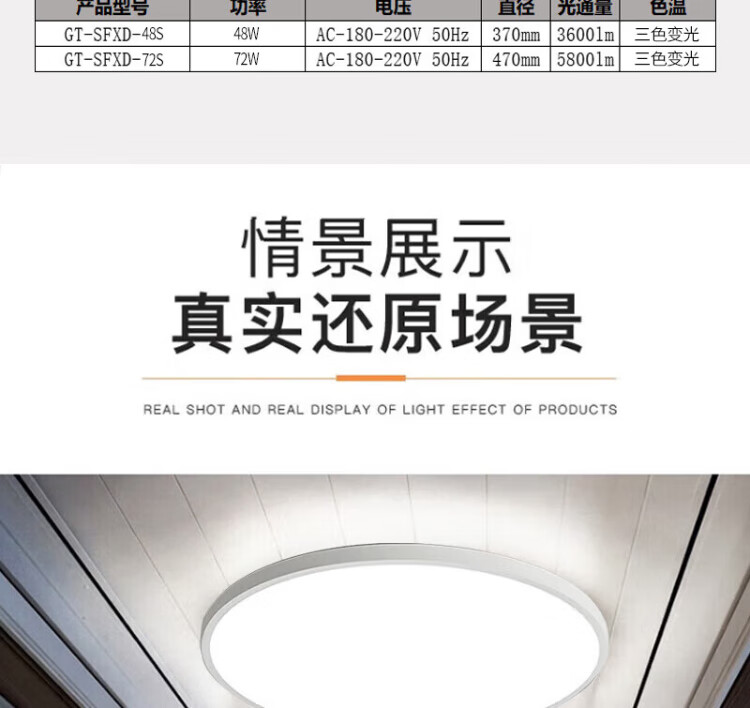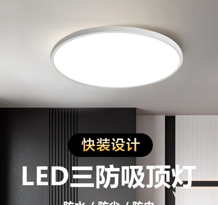 Gongtai LED three-proof ceiling light, three-tone dimming 48W waterproof and anti-mosquito bathroom balcony corridor bedroom light