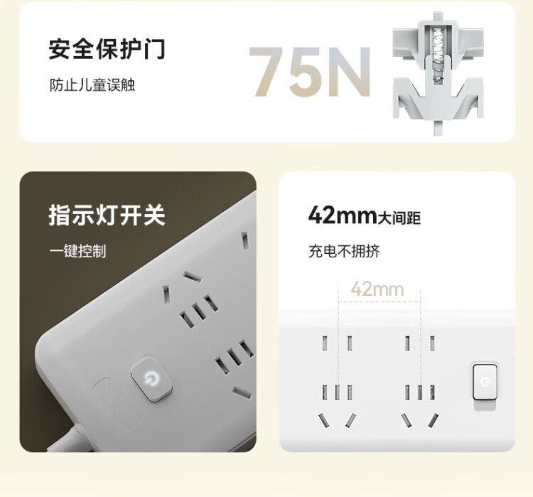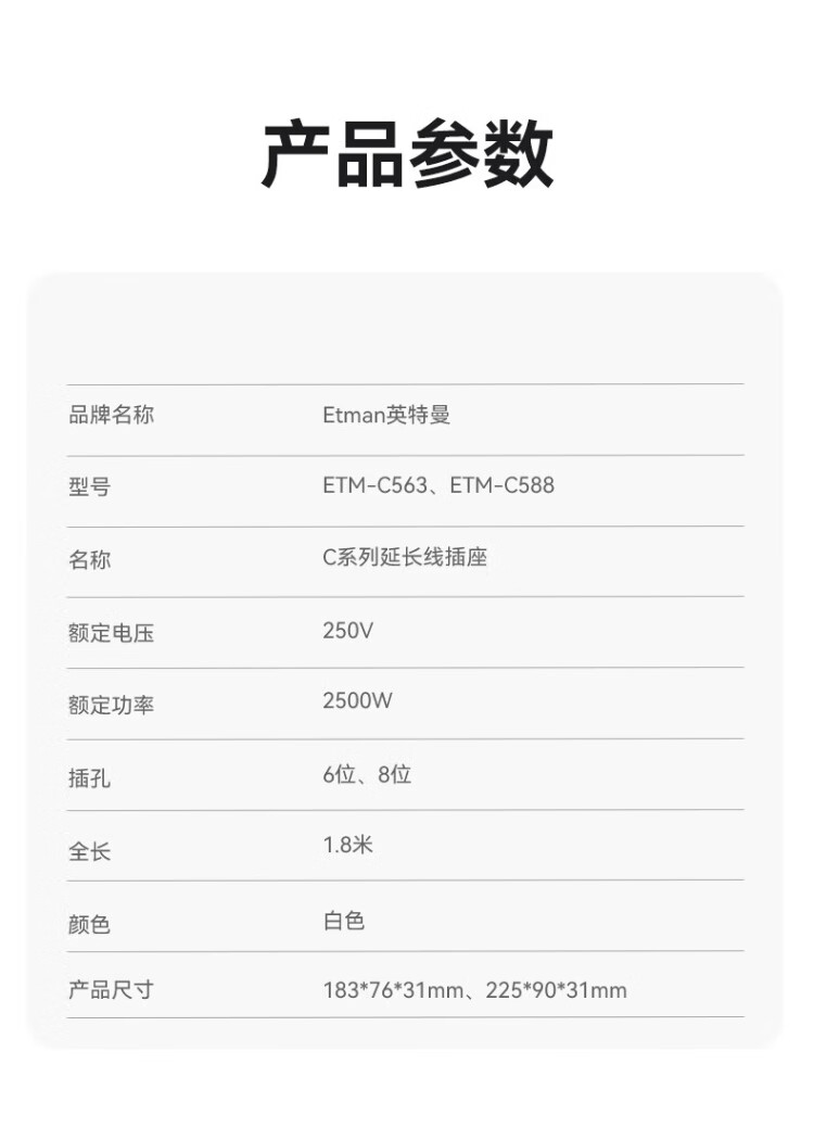 英特曼六位家用插线板/办公插排/桌面排插/插板/拖线板/接线板/电插板/电源插座延长线/6孔位带开关1.2米