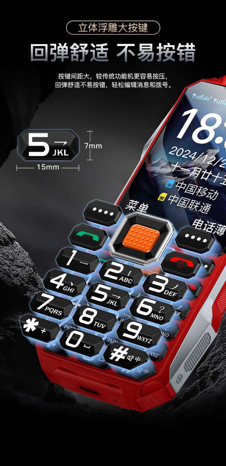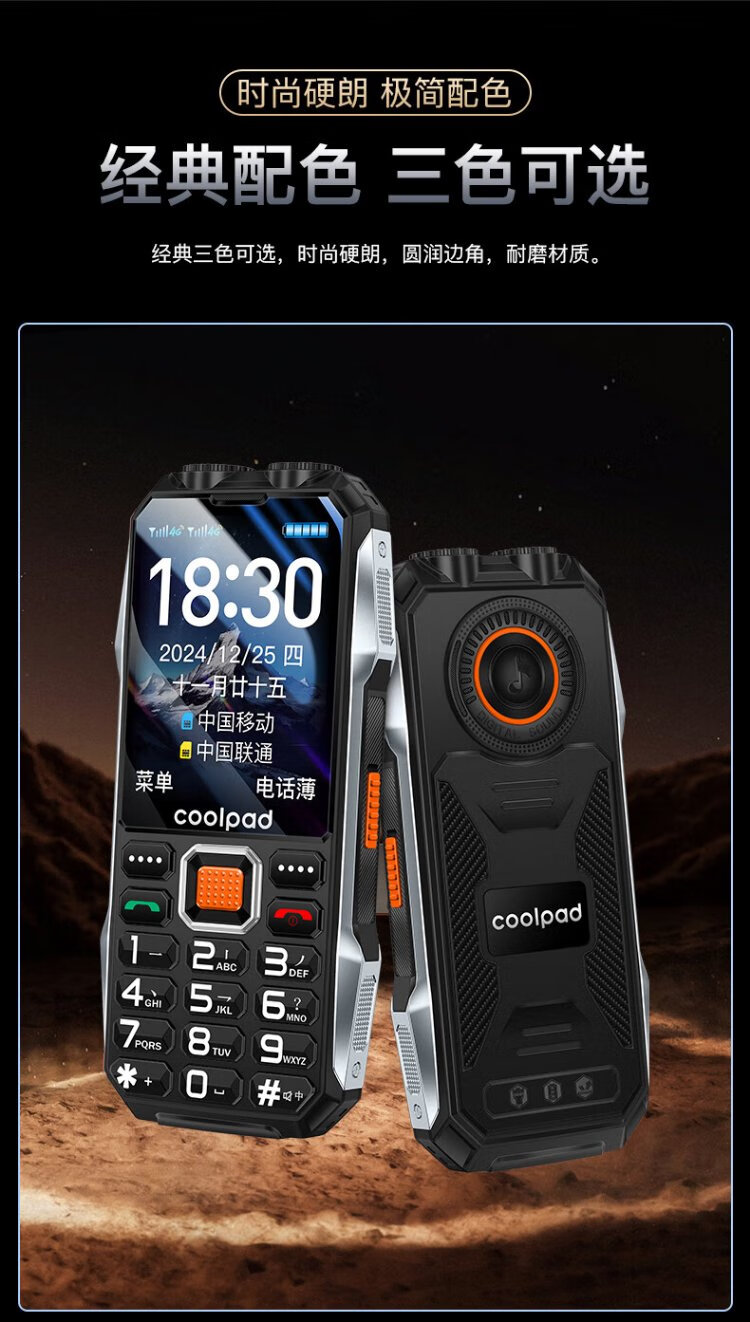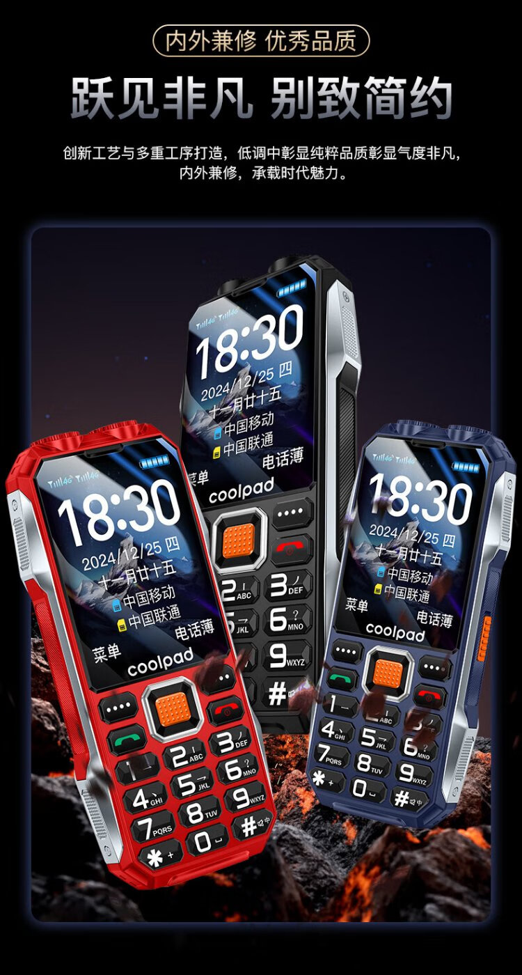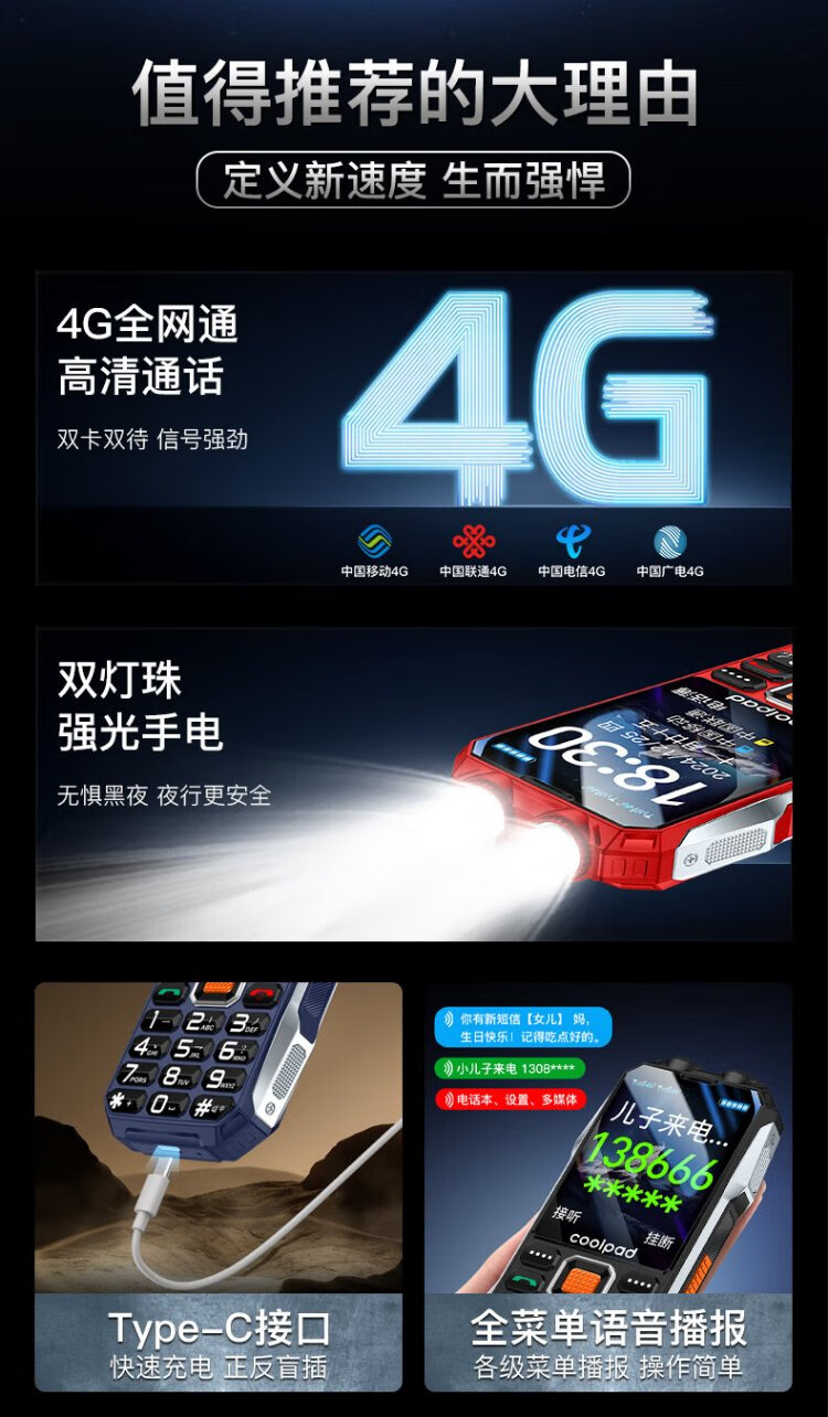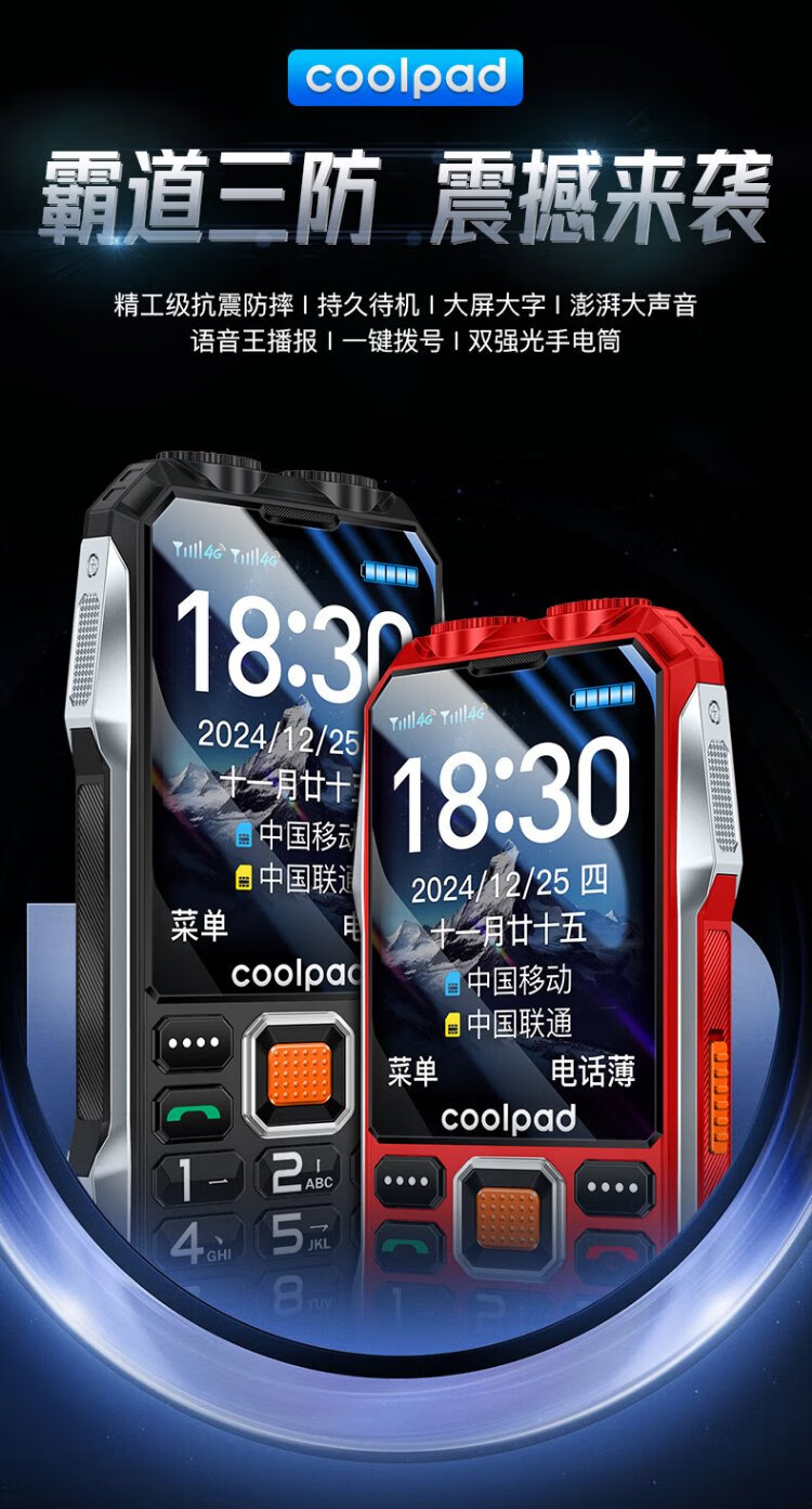 Coolpad three-proof elderly phone 4G full network communication large battery super long standby special mobile phone for the elderly anti-seismic and fall-proof new large screen big characters big sound button function phone K68 red