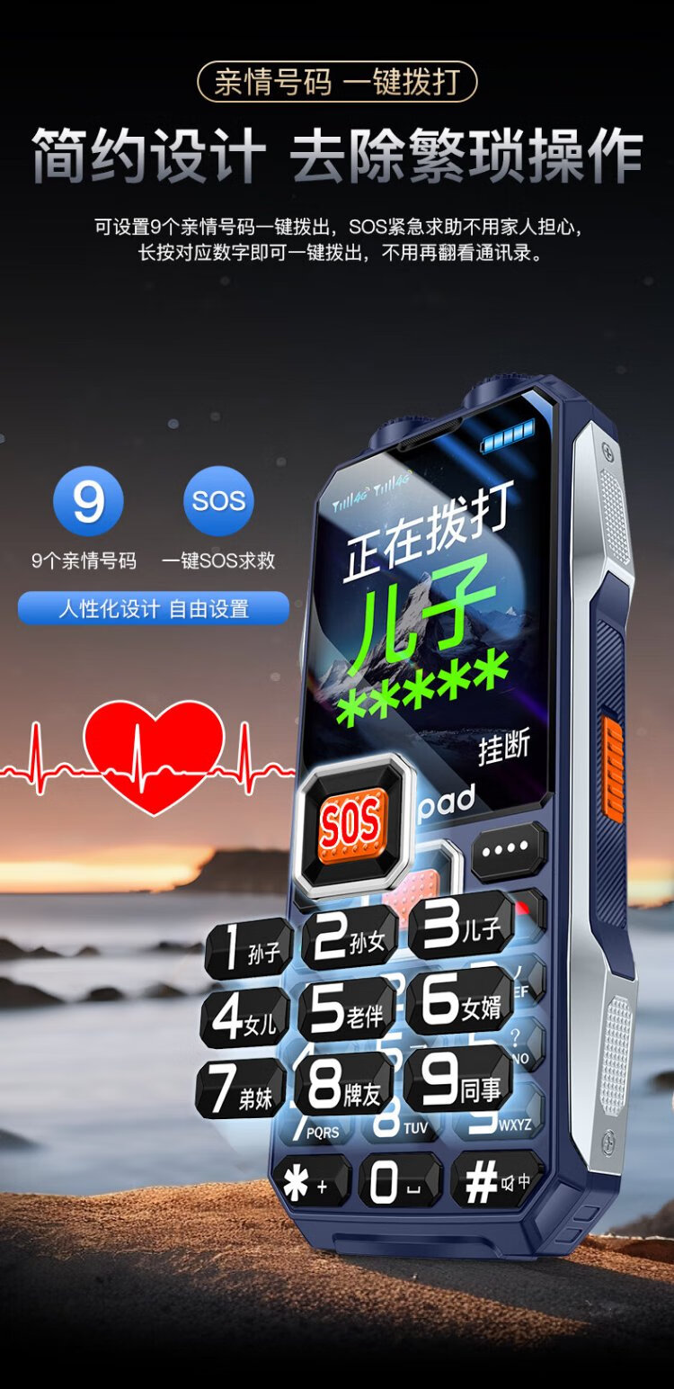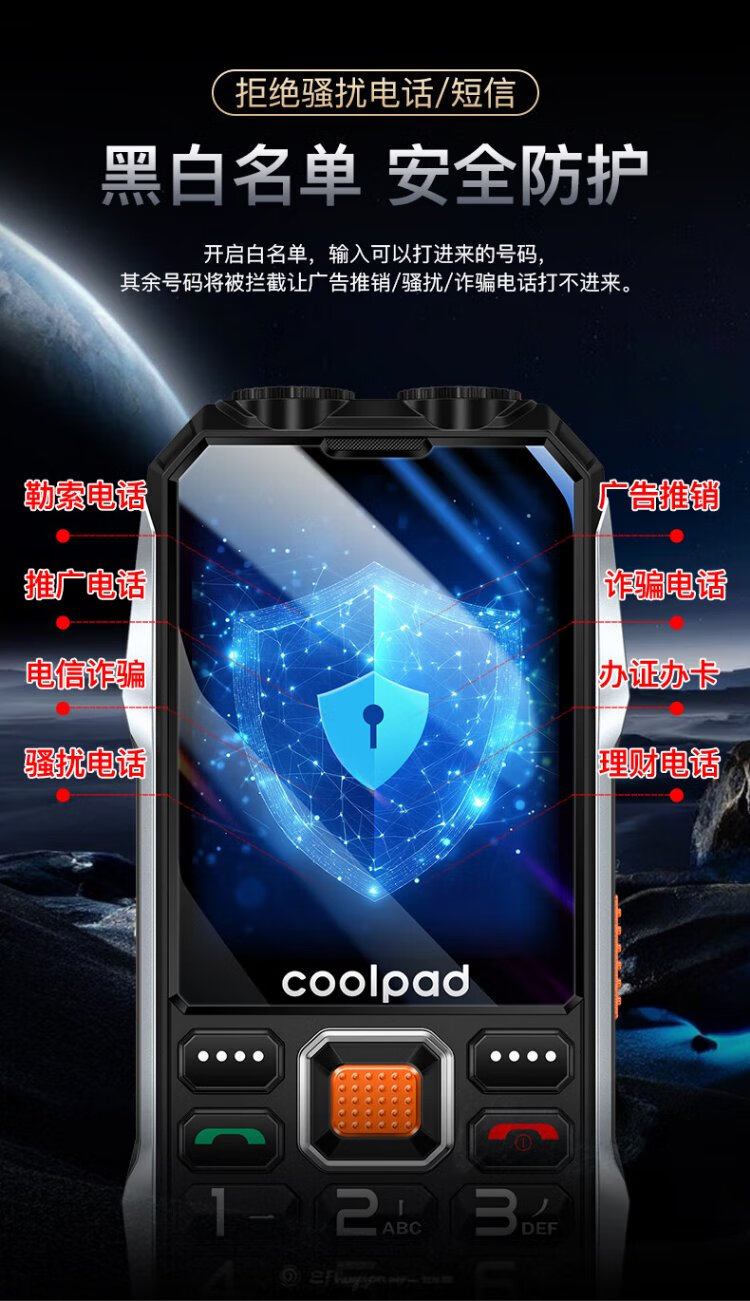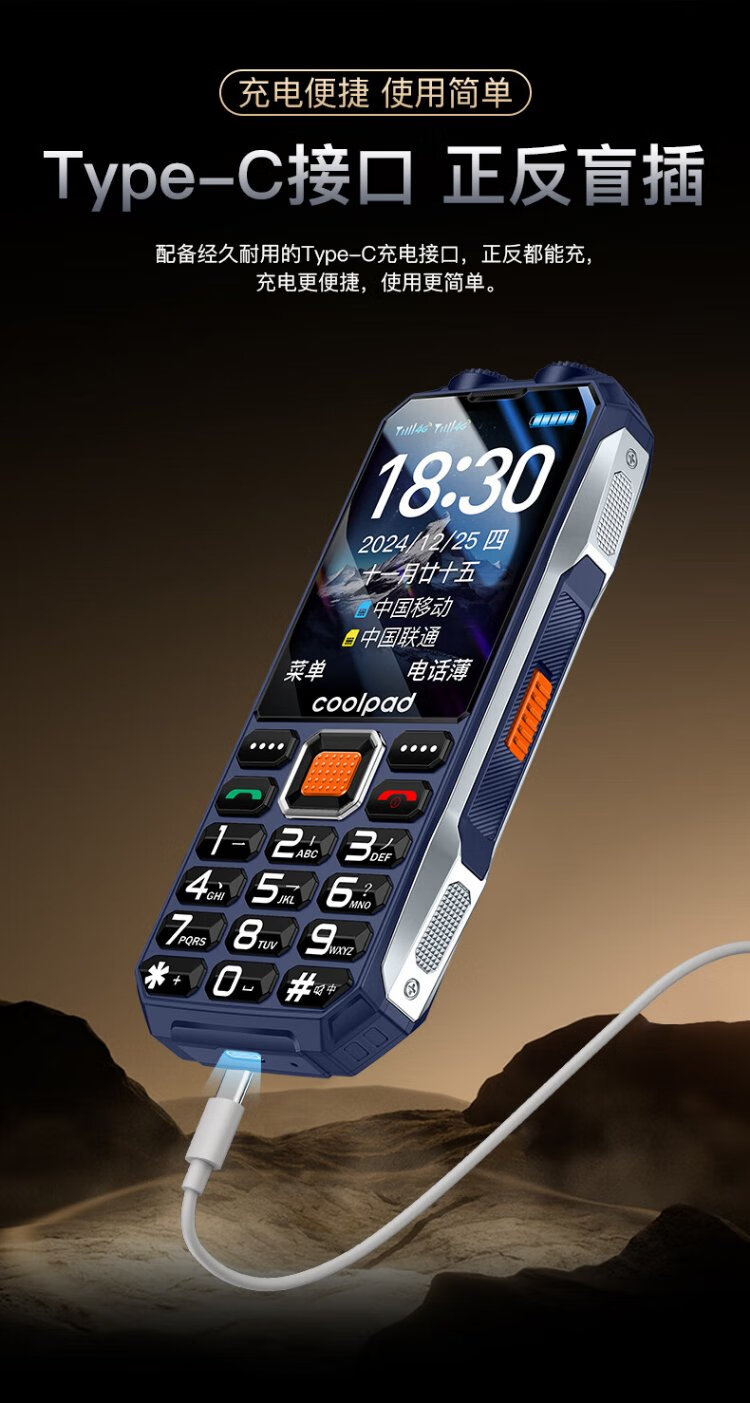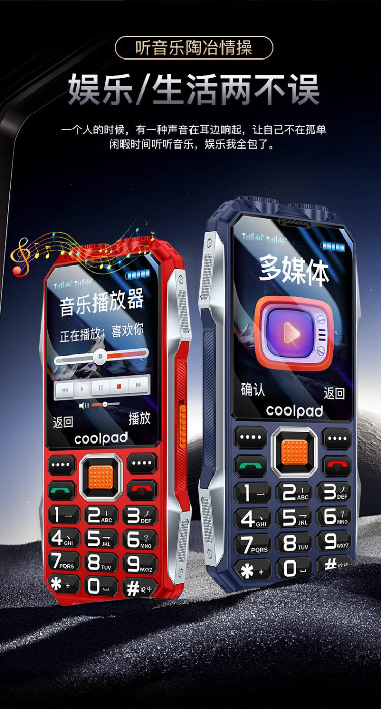 Coolpad three-proof elderly phone 4G full network communication large battery super long standby special mobile phone for the elderly anti-seismic and fall-proof new large screen big characters big sound button function phone K68 red