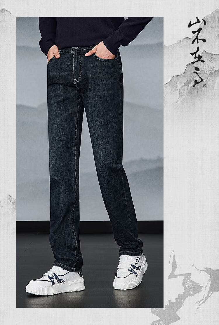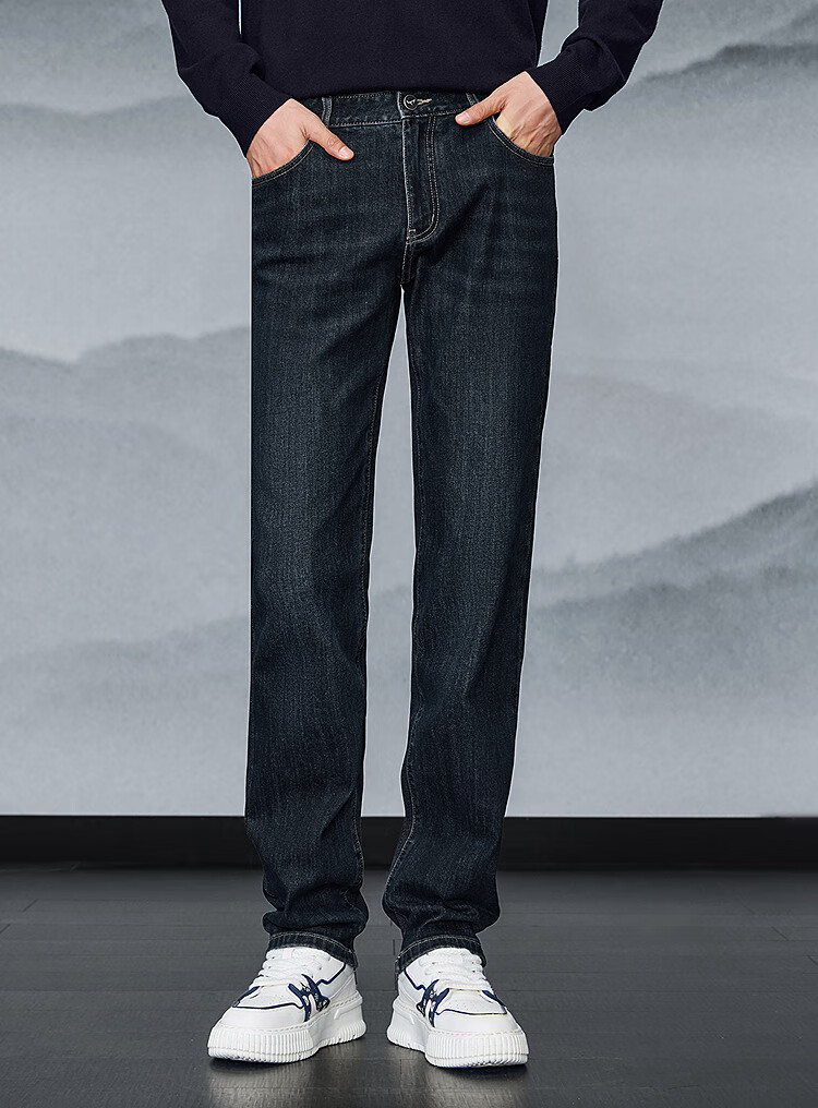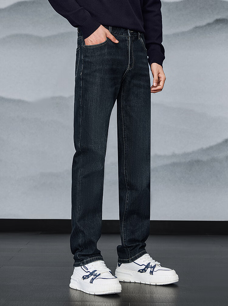 HLA Hailan House Jeans Men's Winter Mountain Not High Series Brushed Thickened Straight Leg Pants Men's New Year