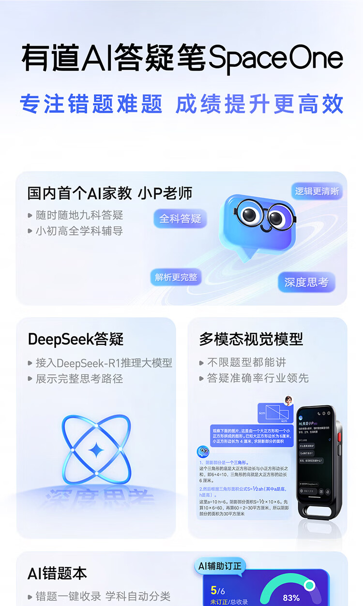 Youdao AI Question Answering Pen SpaceOne Science Artifact Step-by-Step Question Answering Dictionary Pen English Reading Pen Primary School High School General Scanning Mathematics Artifact Translation Pen Learning Machine