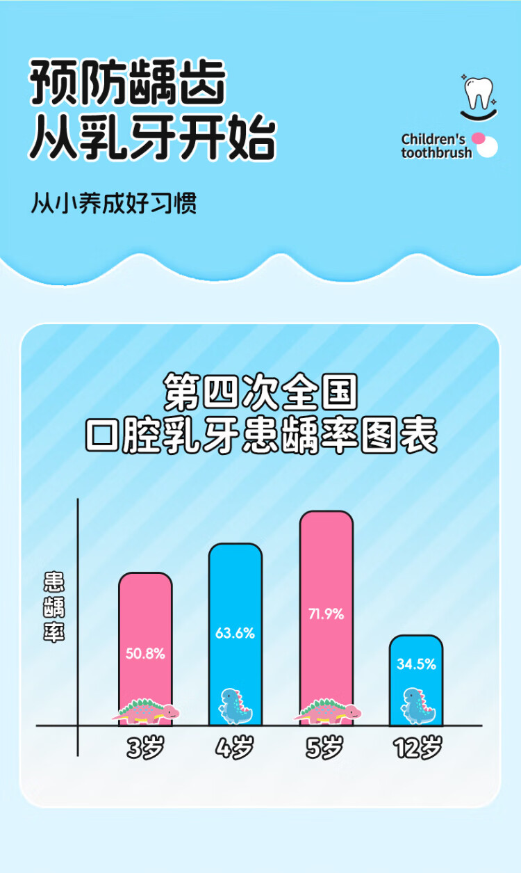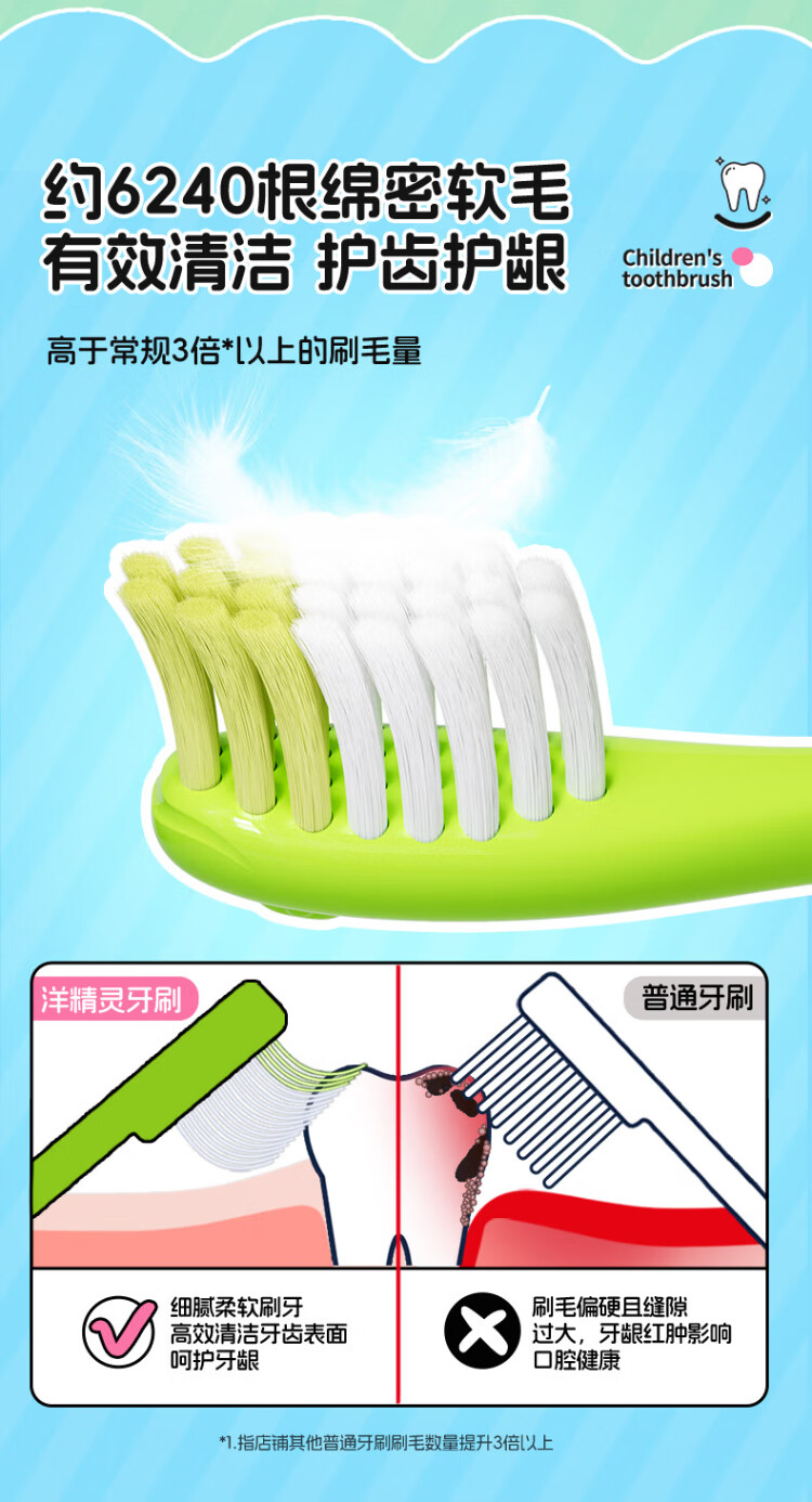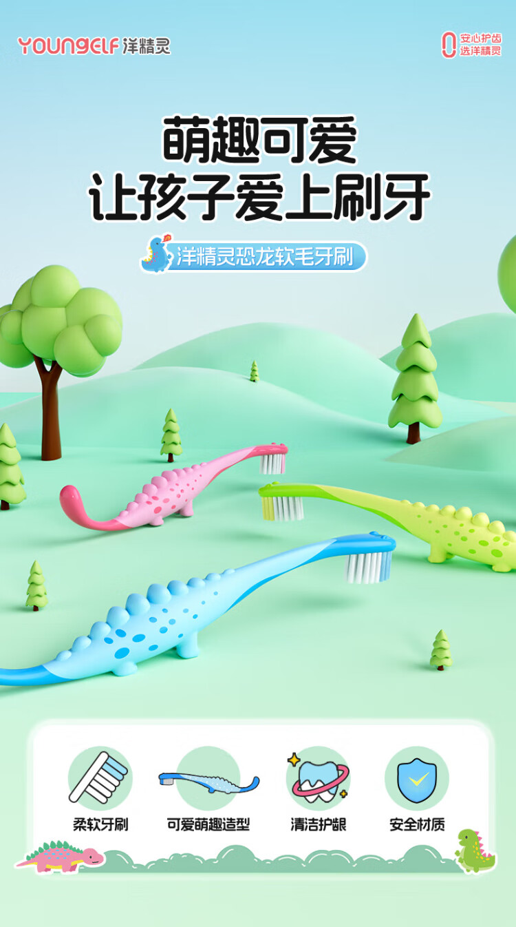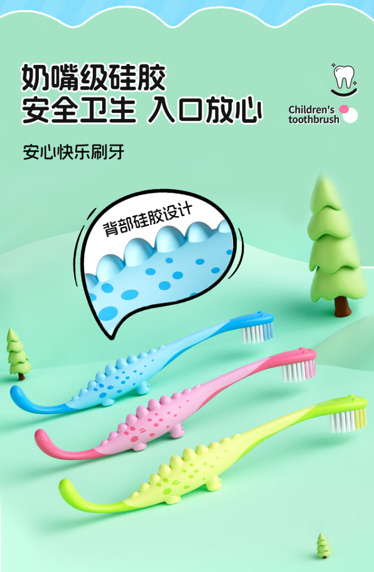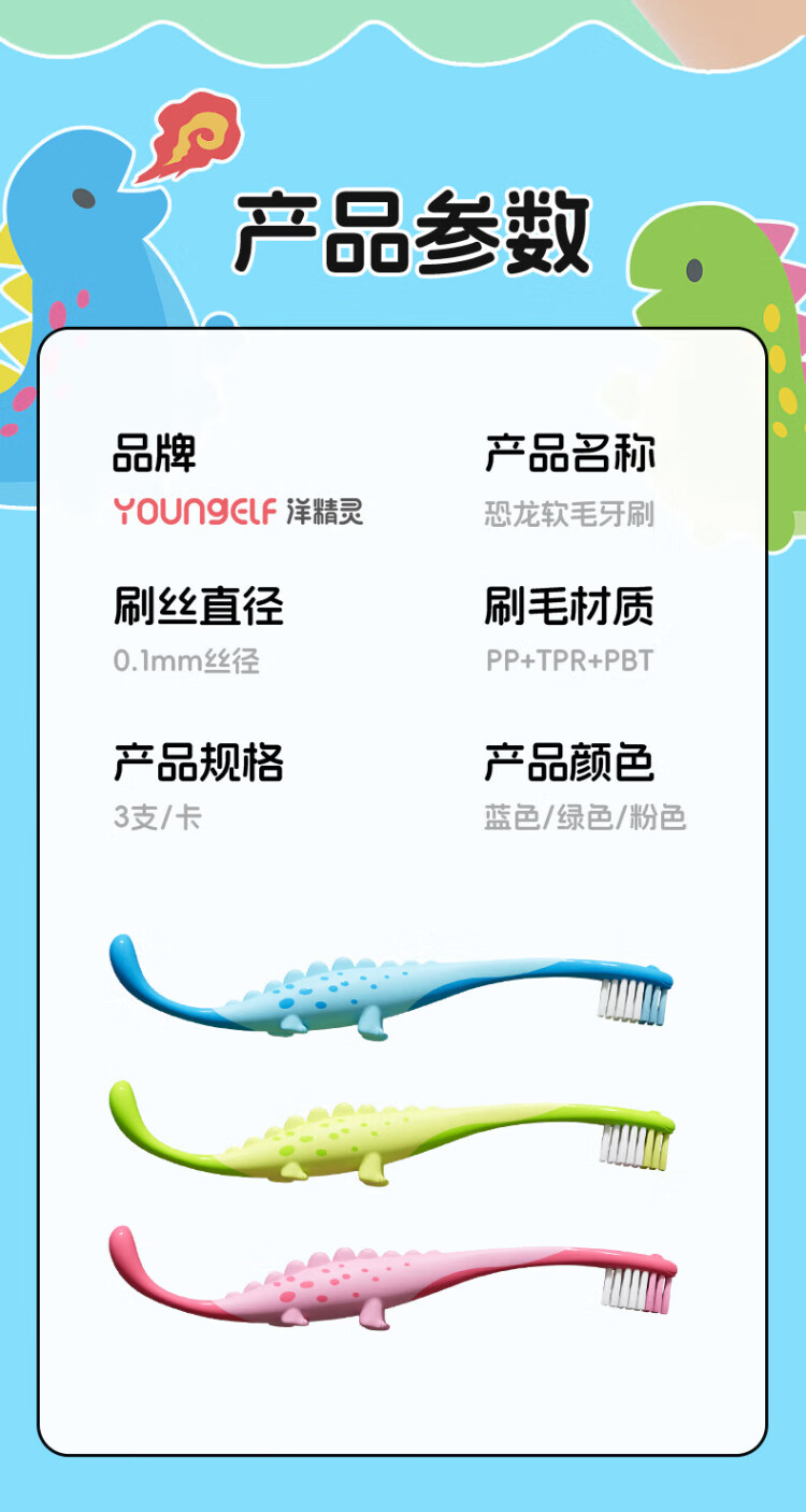 Yang Elf German imported PeDex soft-bristled children's toothbrush 3 to 6-12 years old special children's tooth changing period dinosaur 3-pack