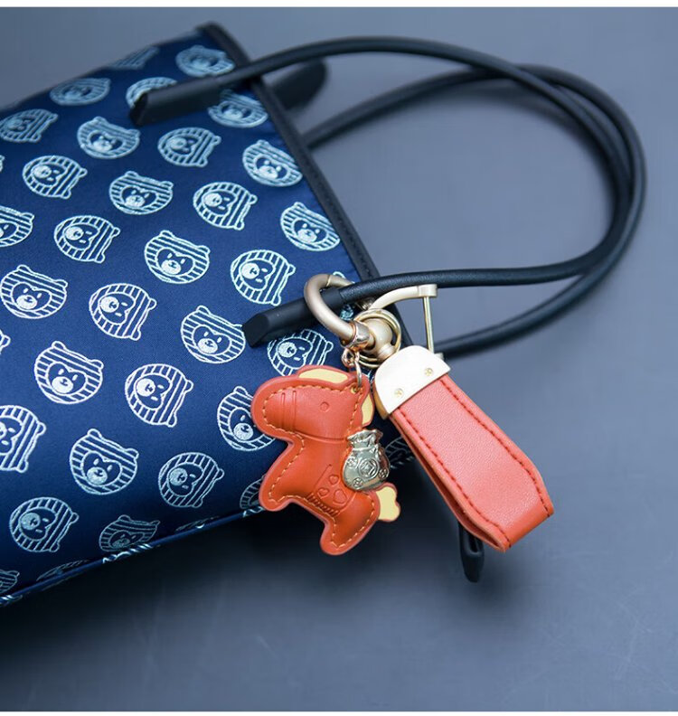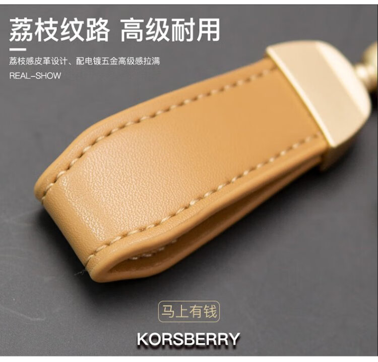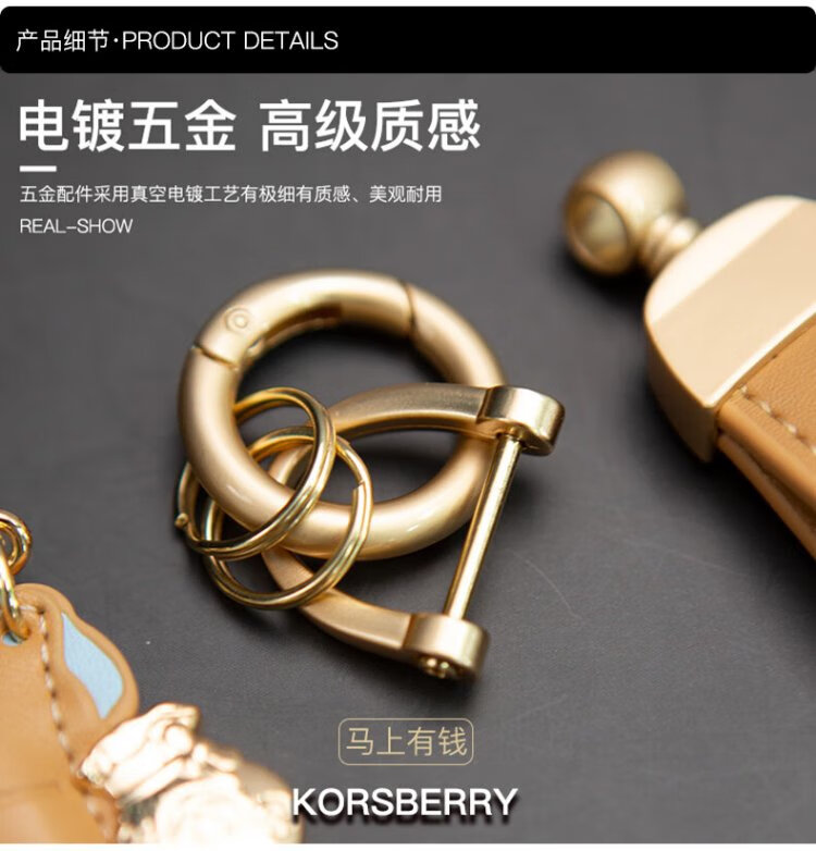 KORSBERRY Make Money Now Keychain Pendant Bag Pendant Exquisite Leather Creative Gift for Men and Women Couple Dark Brown