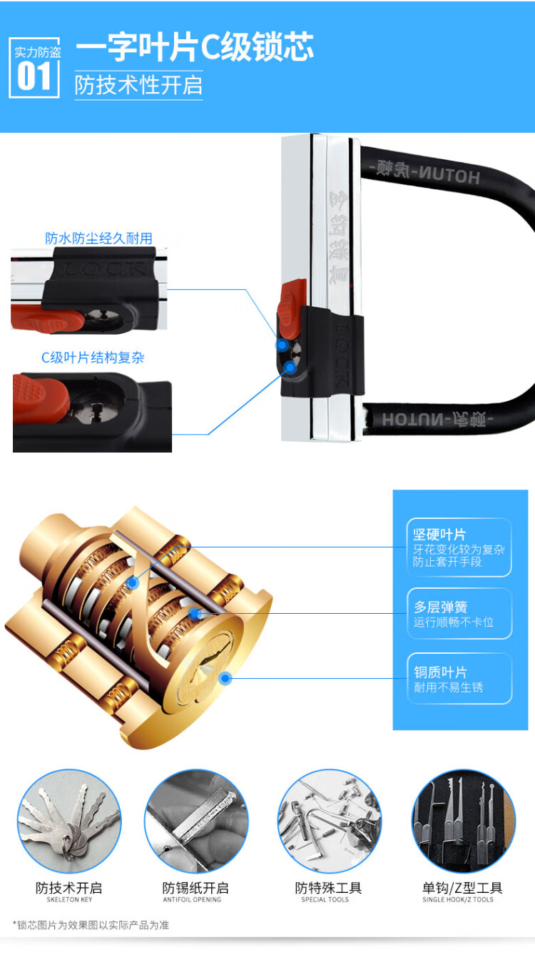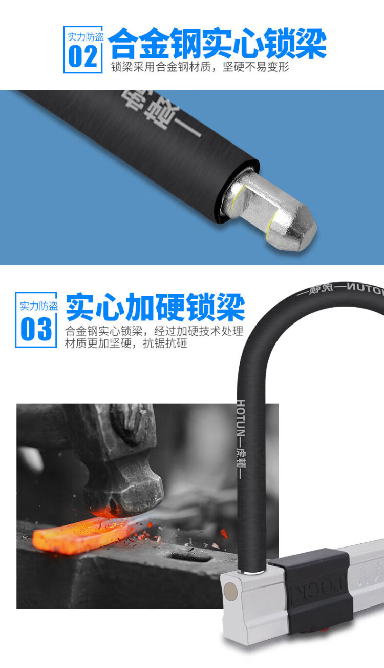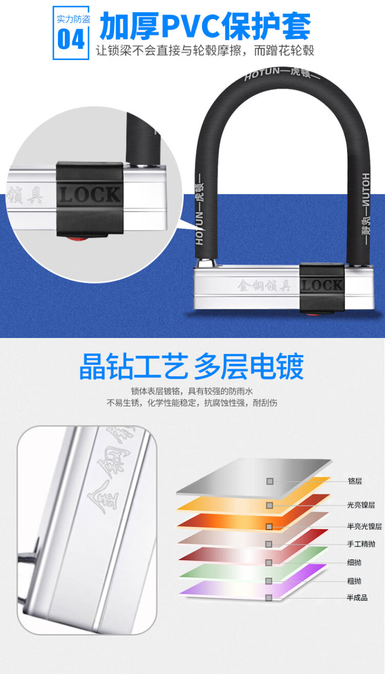 HOTUN electric vehicle U-shaped lock motorcycle bicycle U-shaped lock lightweight anti-theft safety lock HD-U6