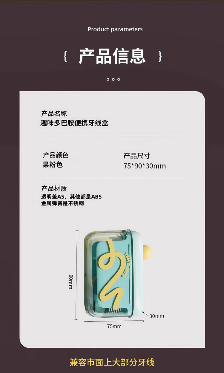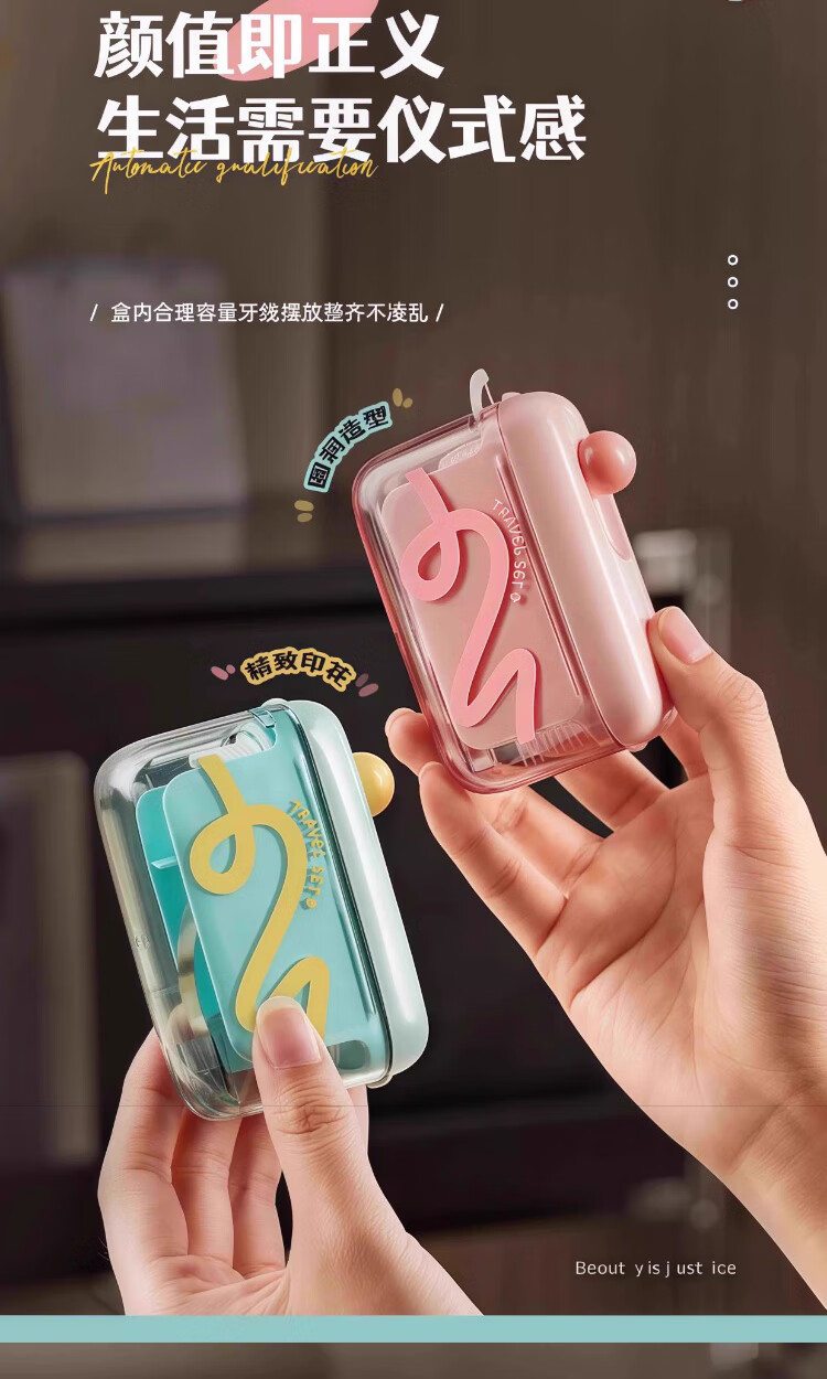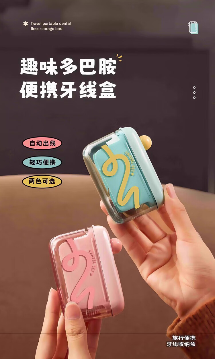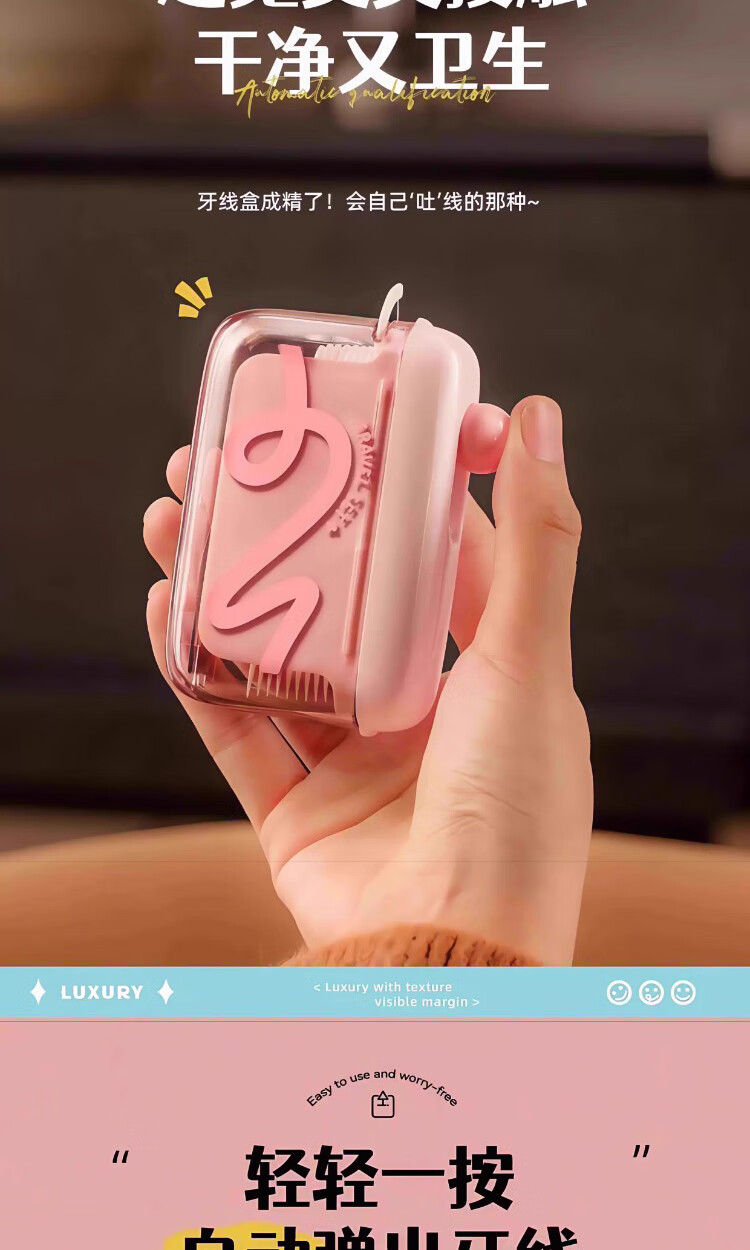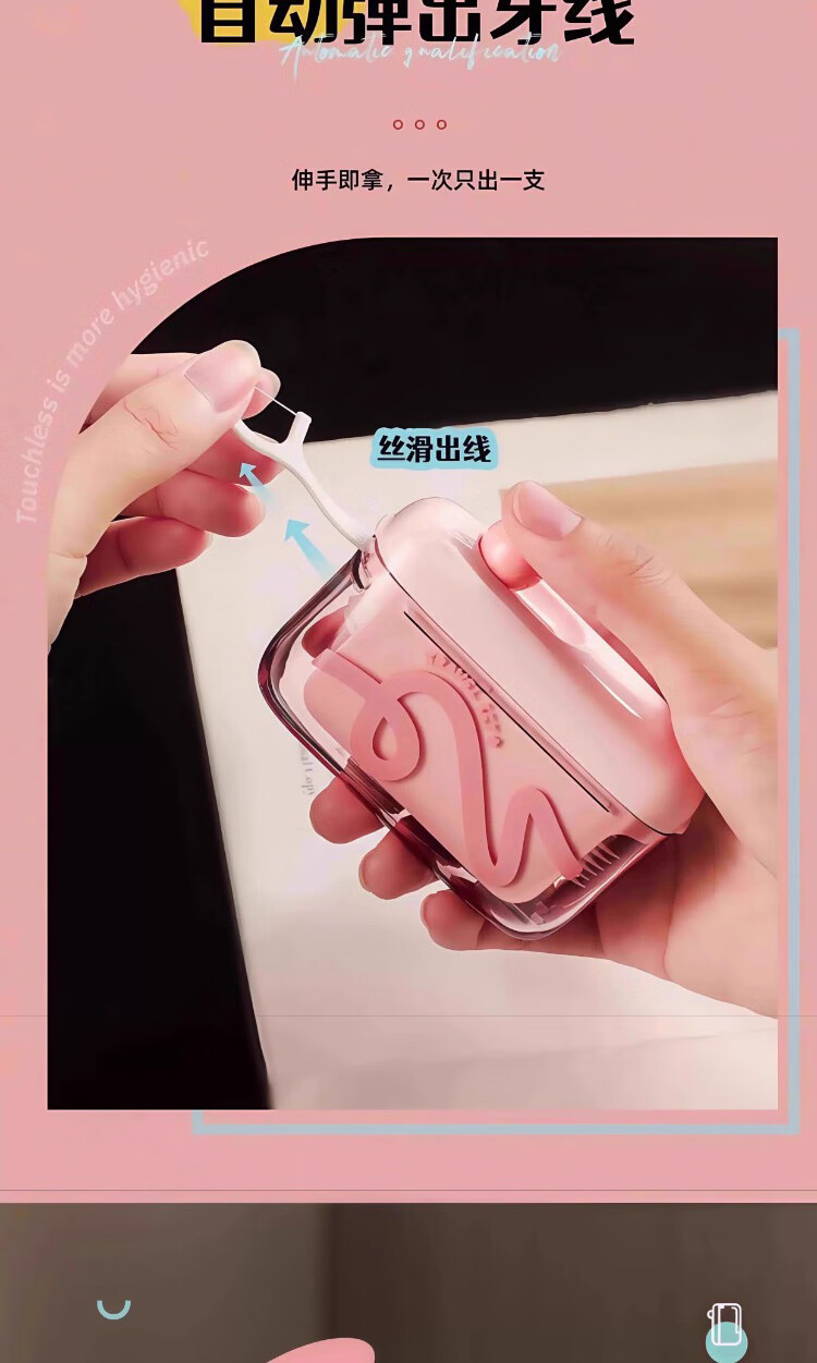Jiacube fun dopamine portable floss box automatically pops up household toothpick disposable floss stick storage box fruit pink