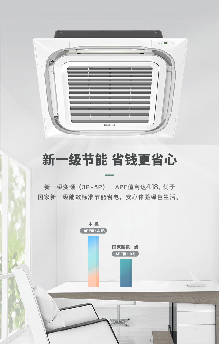 长虹中央空调3匹一拖一天花机一级能效 工厂商铺商用 ZKR72QW/ZA1+R1 以旧换新