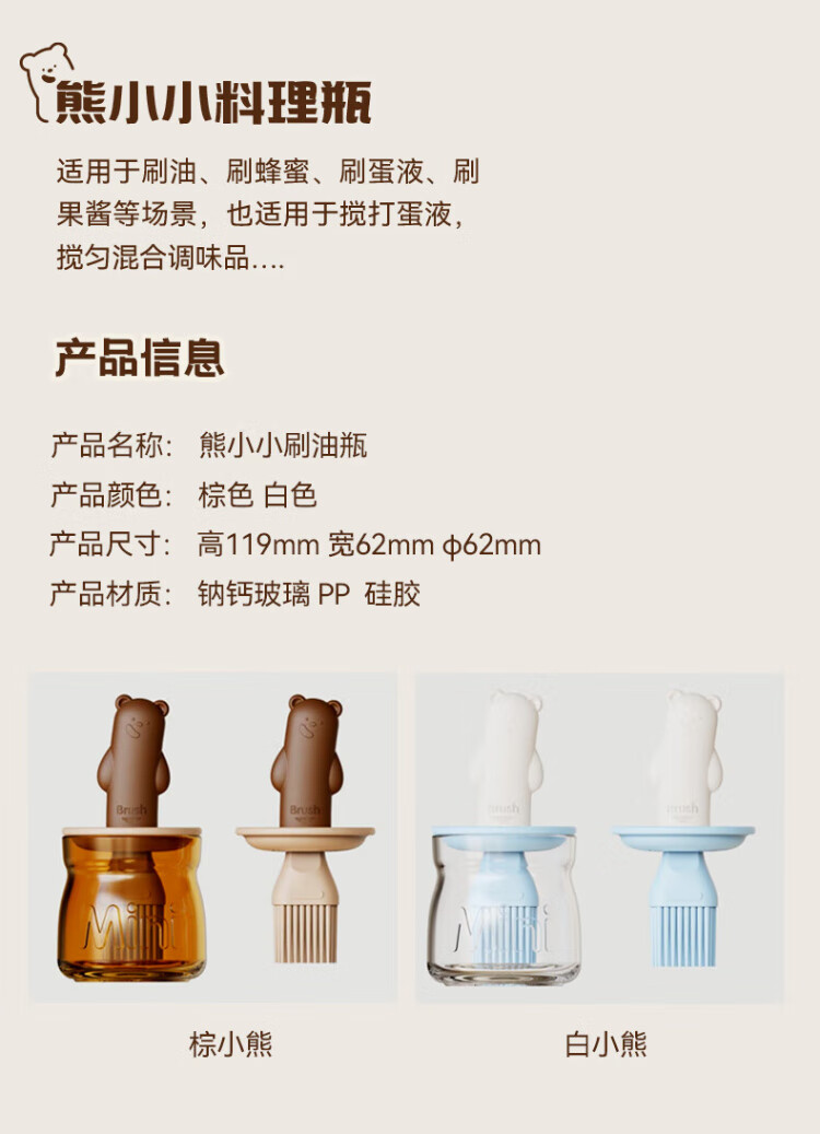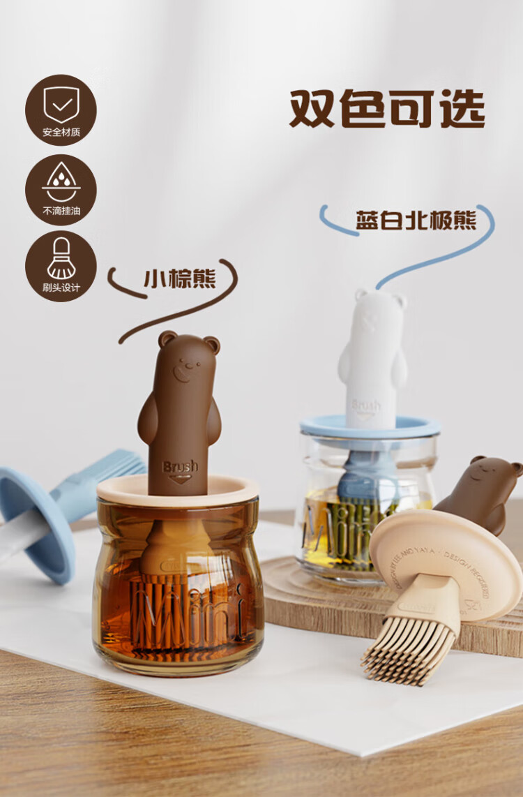 Genasi silicone barbecue brush oil brush with bottle oil pot integrated pancake brush high temperature resistant food grade baking glass brush oil bottle