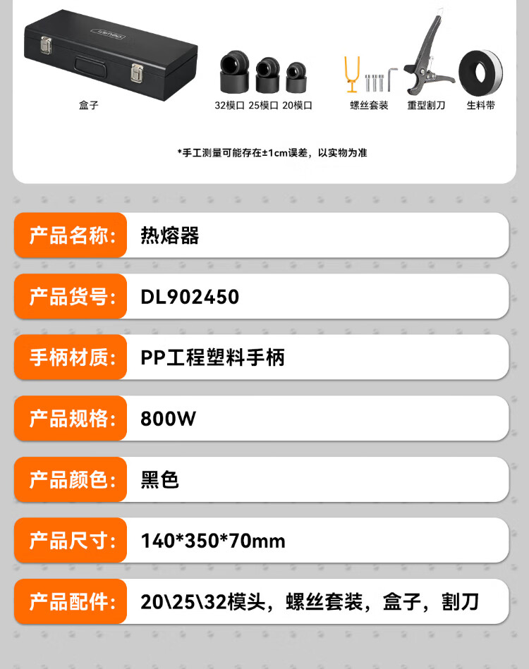 Deli hot melter welding machine 32 type PPR water pipe hot melt machine household high power electric heat melt gun mechanical temperature control 800W