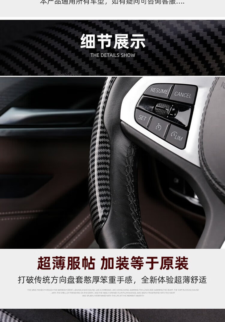FHAO car steering wheel cover for all seasons Honda Mercedes-Benz BMW Audi carbon fiber pattern ultra-thin anti-slip protective handle cover