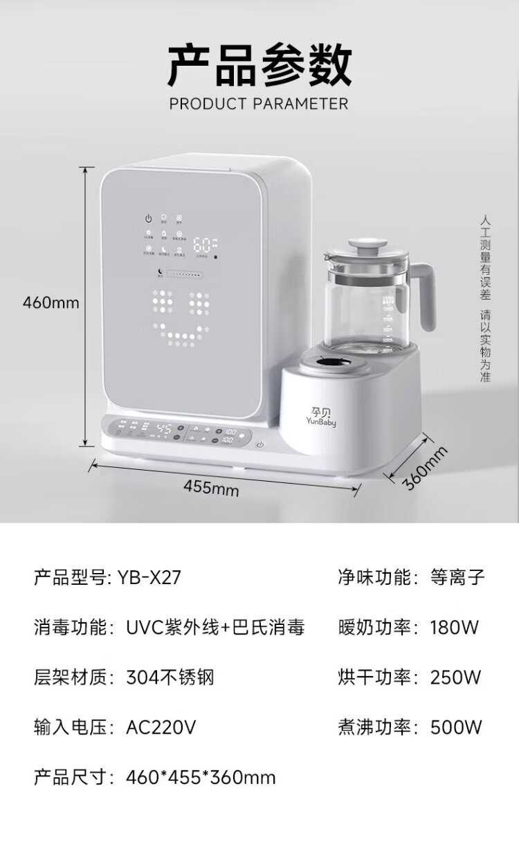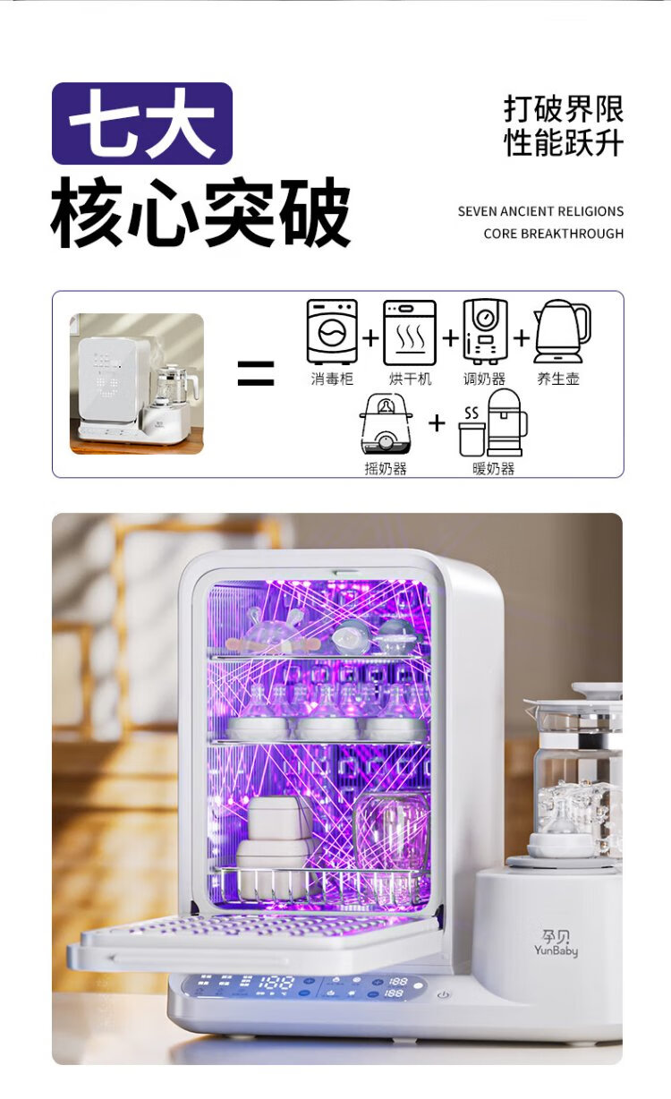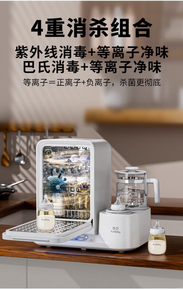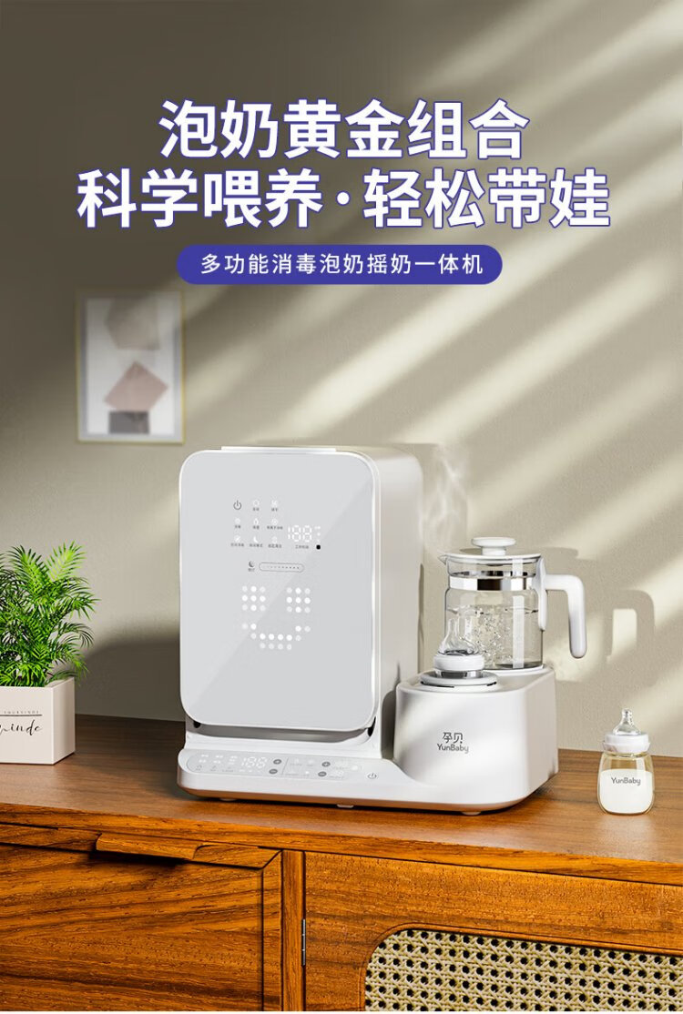 Yunbaby baby bottle sterilizer cabinet with dryer all-in-one shaker milk warmer thermostatic kettle milk foaming machine three-in-one feeding station