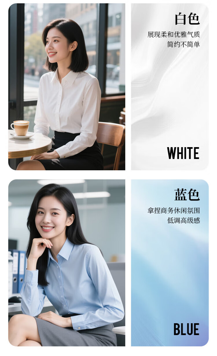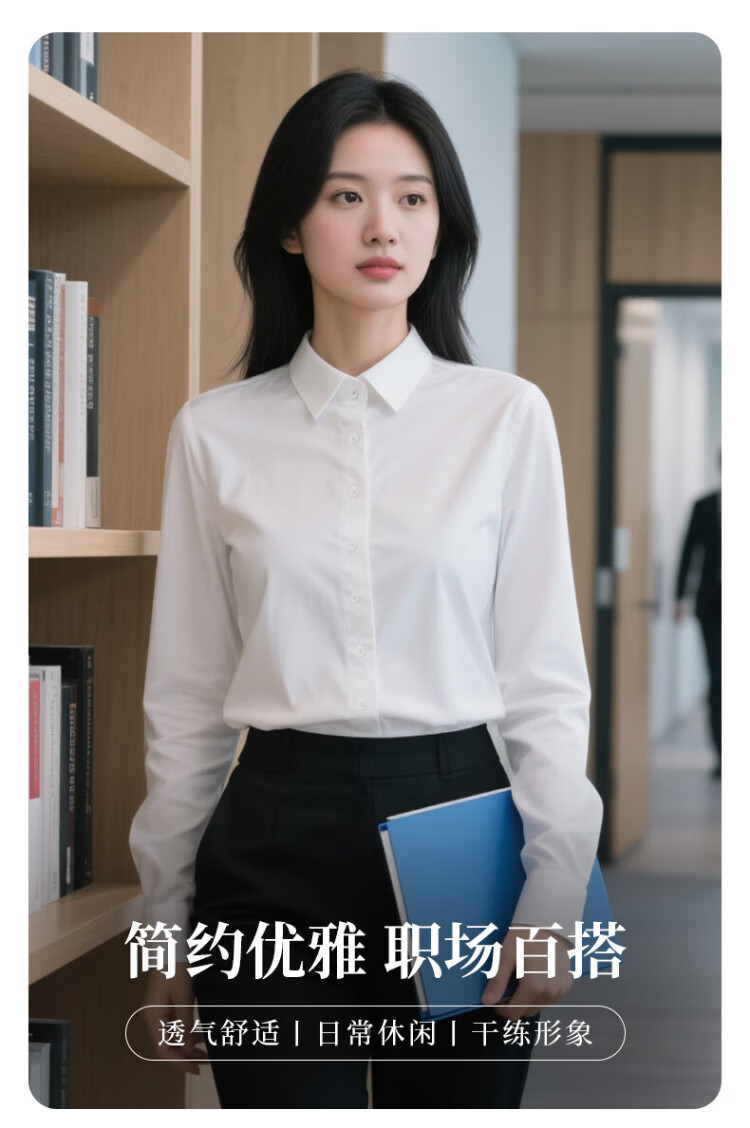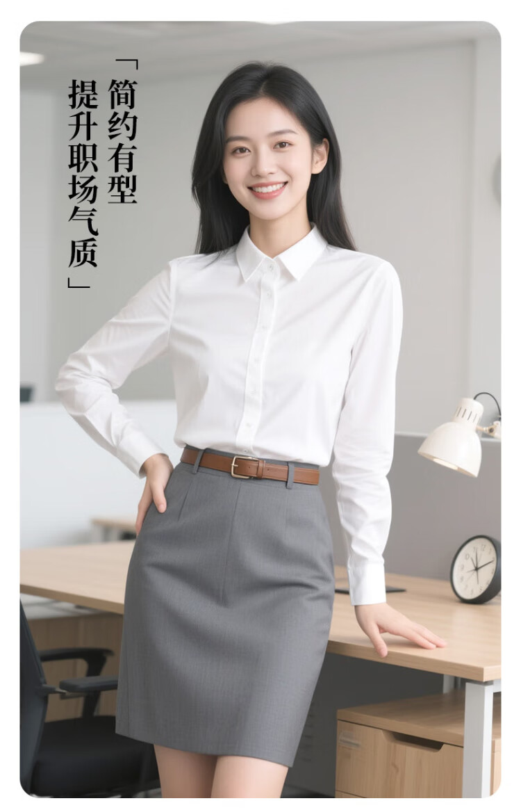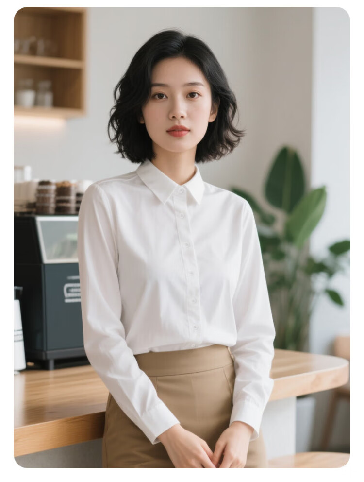 HANMANKE white shirt for women, simple long-sleeved single top, daily casual, no-iron women's clothing, commuting interview, professional formal shirt