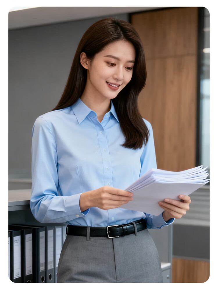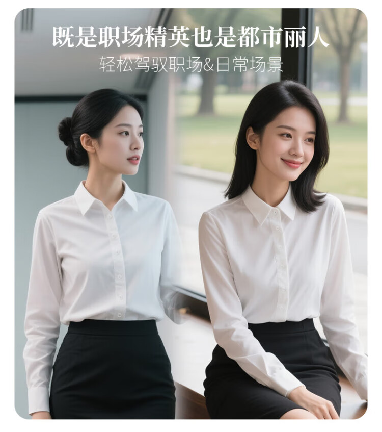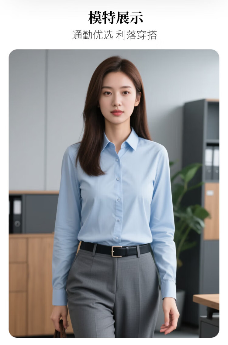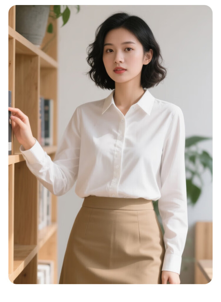 HANMANKE white shirt for women, simple long-sleeved single top, daily casual, no-iron women's clothing, commuting interview, professional formal shirt