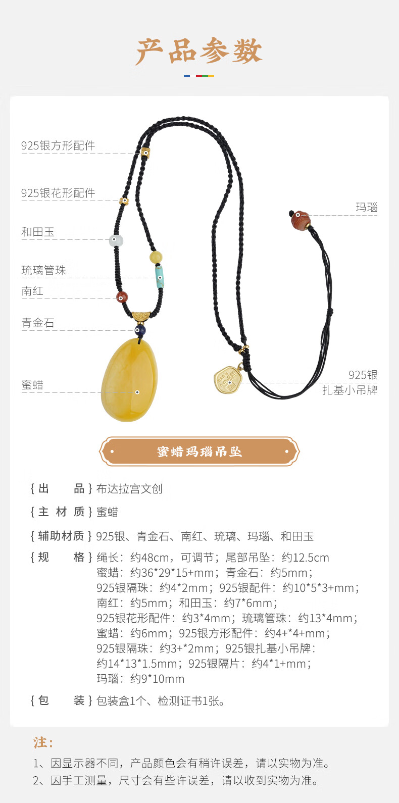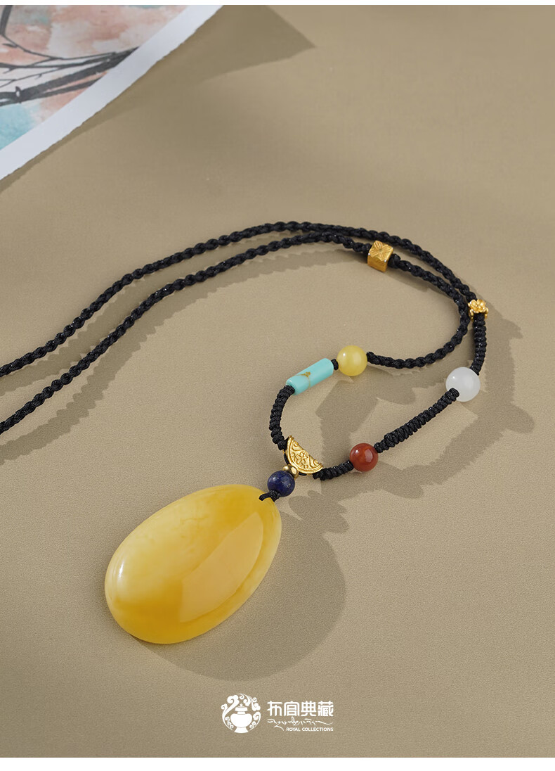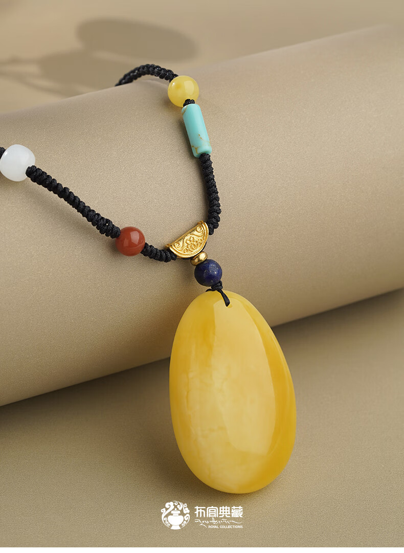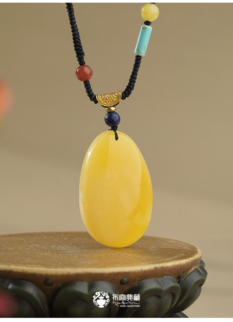 Potala Palace Beeswax Agate Pendant for Men and Women with Lapis Lazuli and Hetian Jade 925 Silver Zakiram Necklace Birthday Gift
