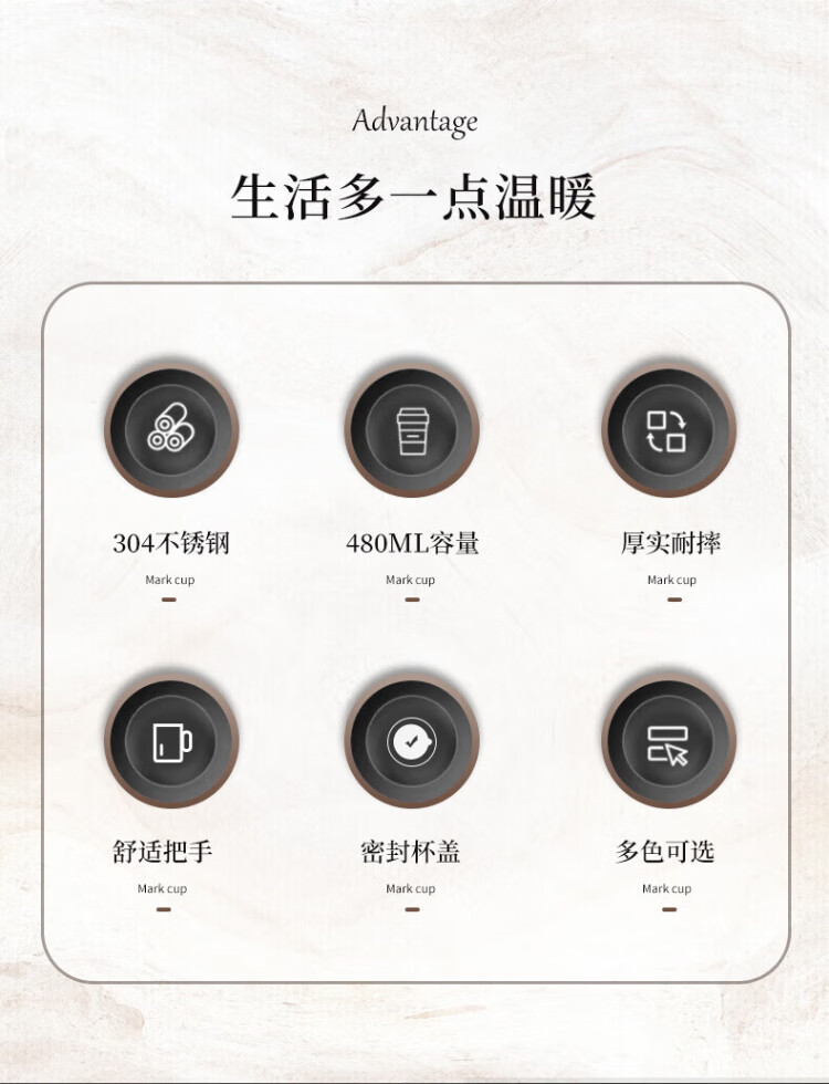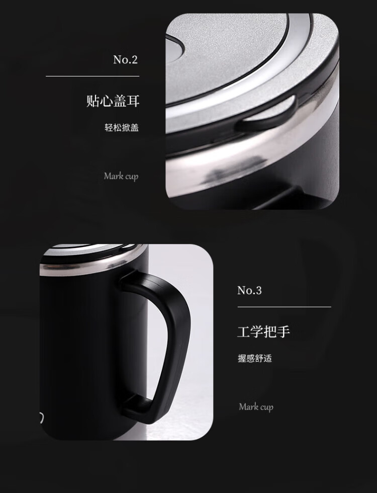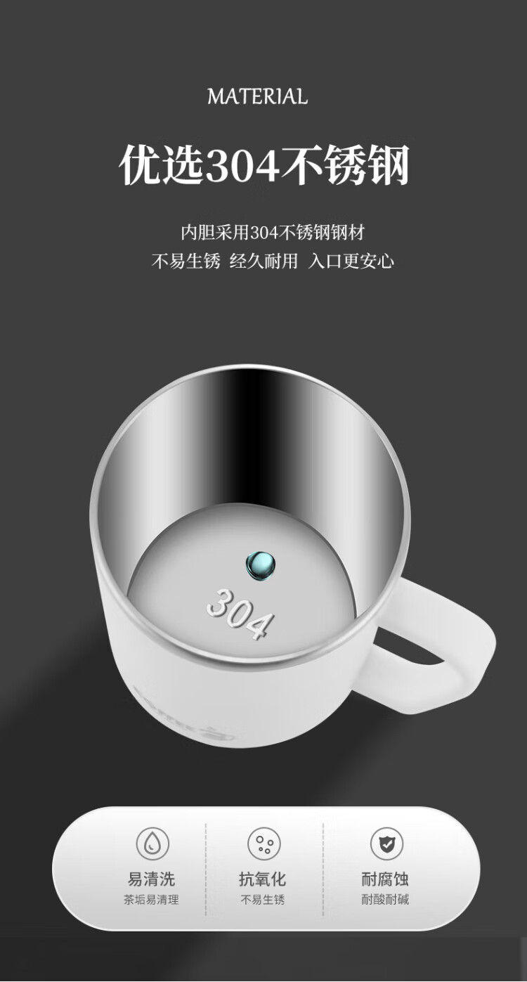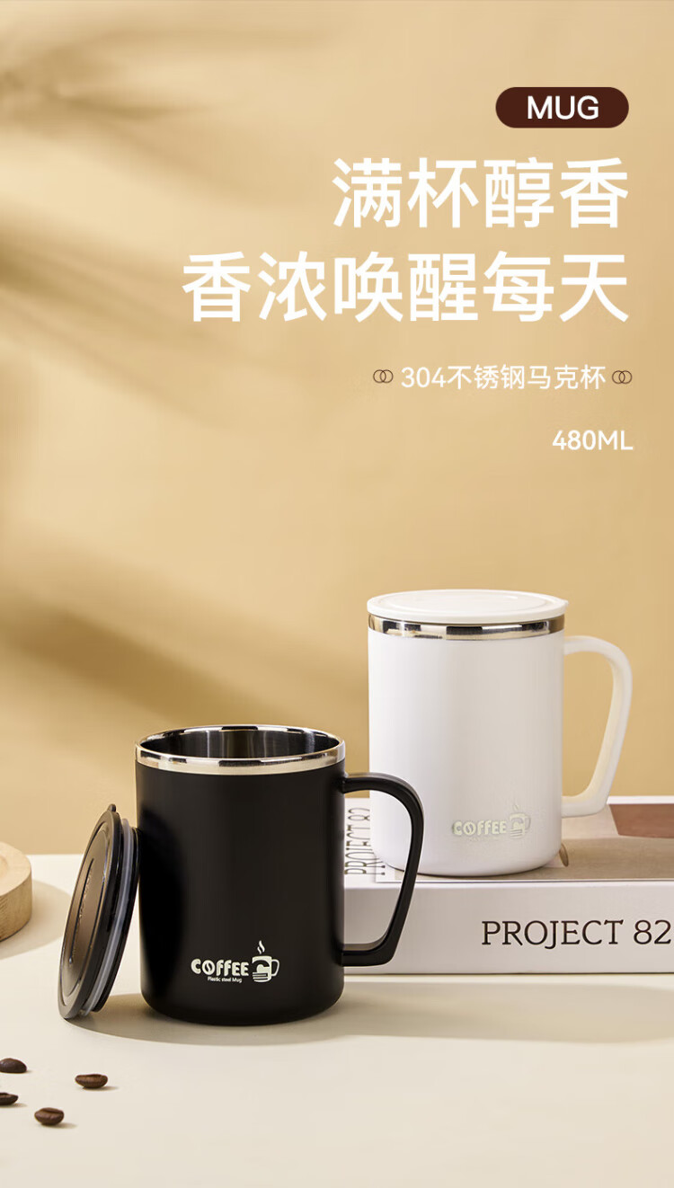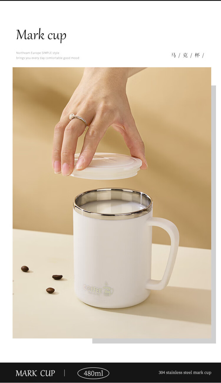 Youlaifu 304 stainless steel water cup mug coffee cup with lid household double-layer anti-scald drinking cup white