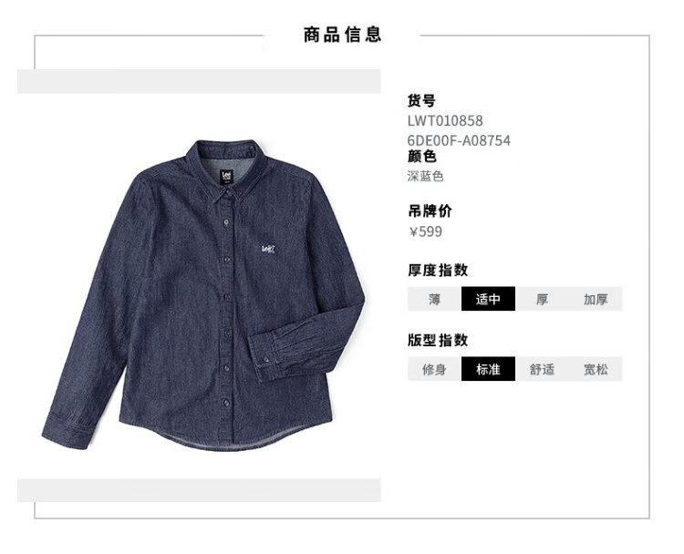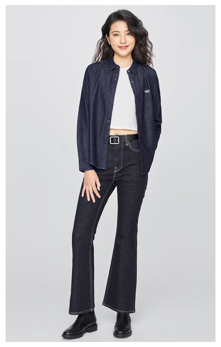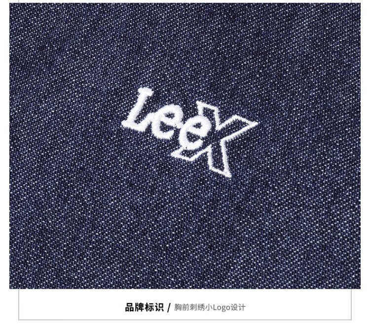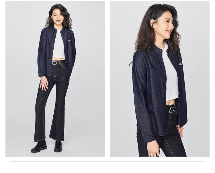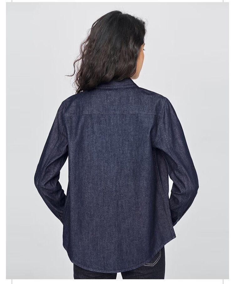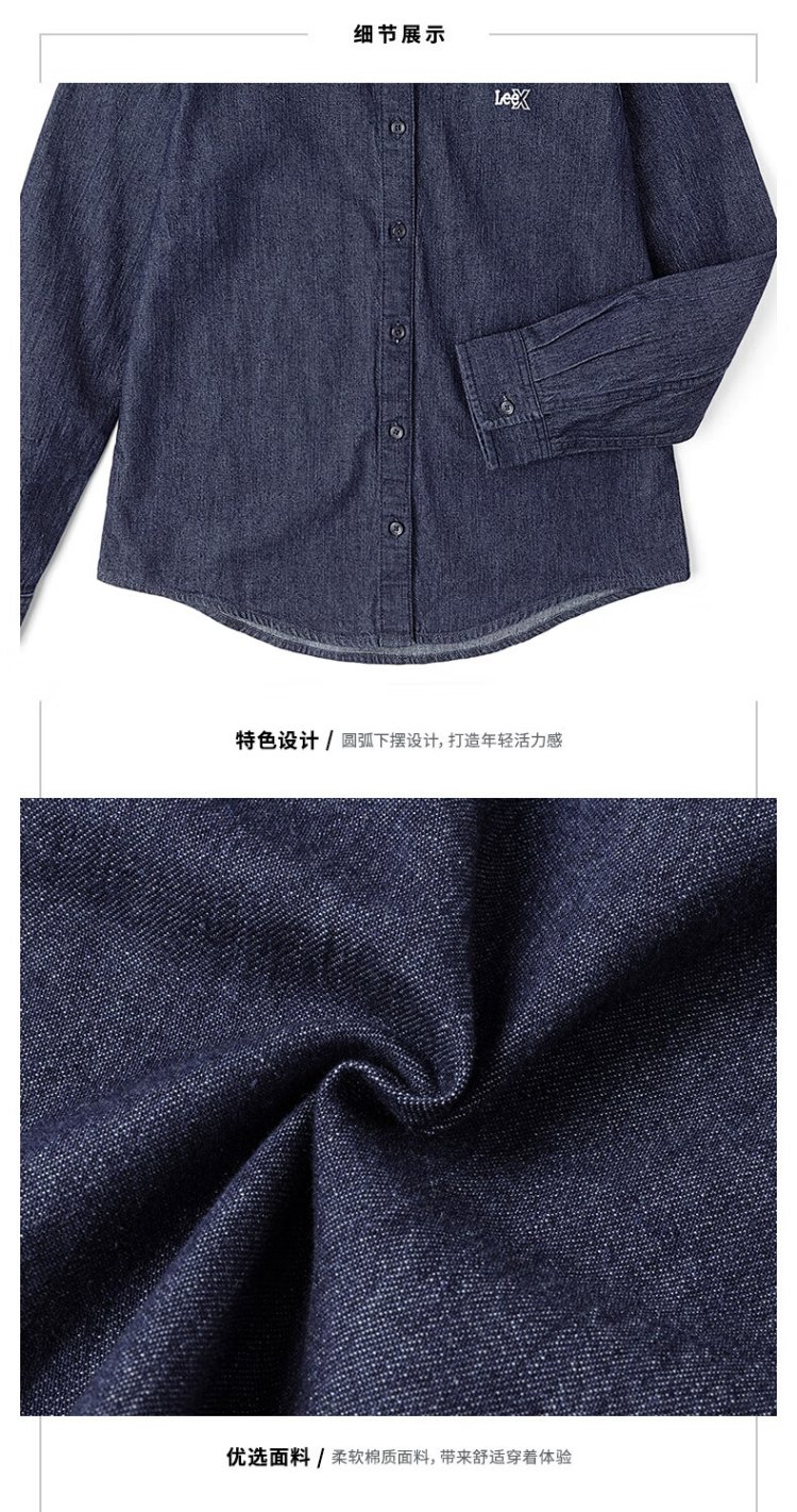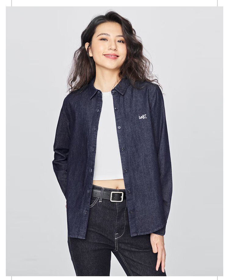 Lee25 new autumn and winter standard-fit lapel embroidered small logo women's long-sleeved denim shirt dark blue M