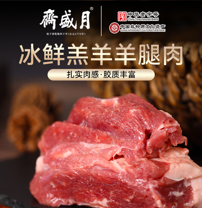 Yueshengzhai Chilled Lamb Domestic Boneless Lamb Leg Meat 1Jin Jin equals 0.5kg Fried, Roasted and Stewed Halal Ingredients