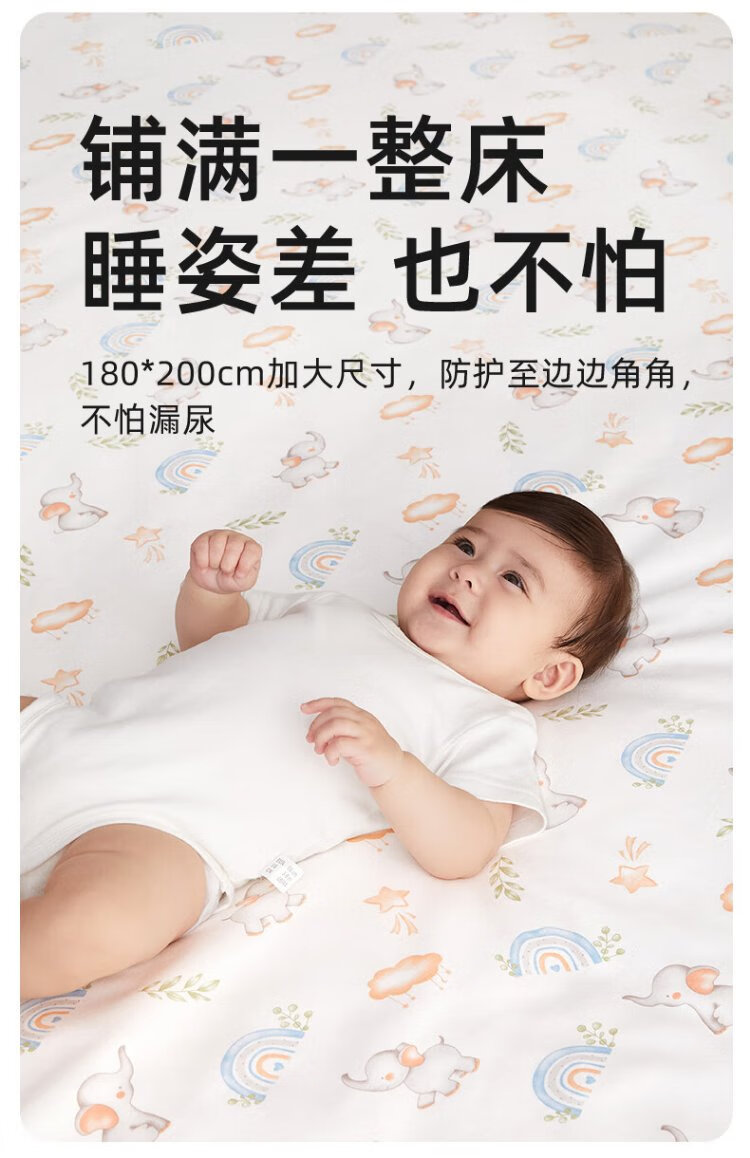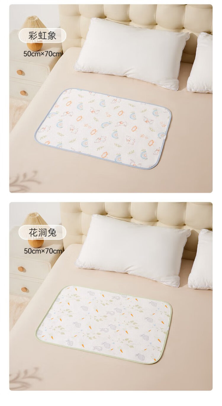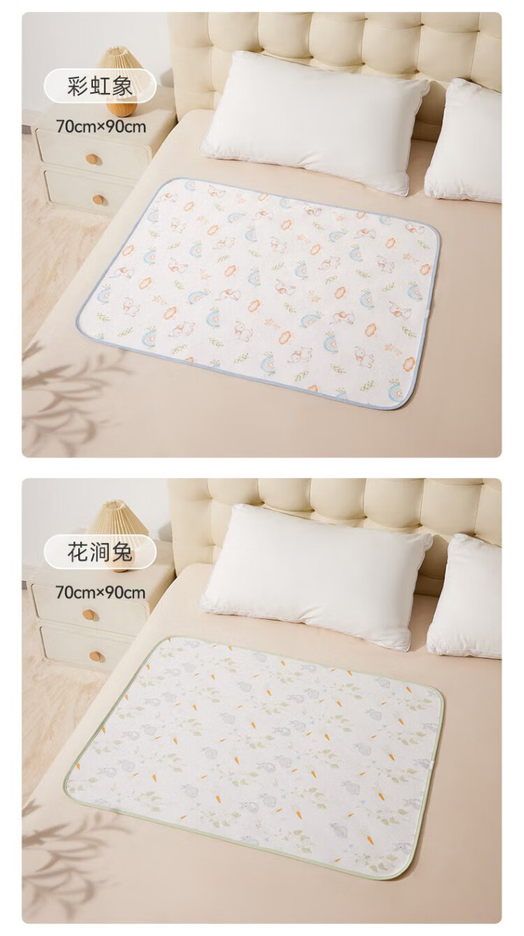 October Crystal Baby Changing Pad Washable Breathable Cotton Changing Pad Leak-proof Nursing Pad Aunt Pad Washable Sheet Rainbow Elephant 70*90