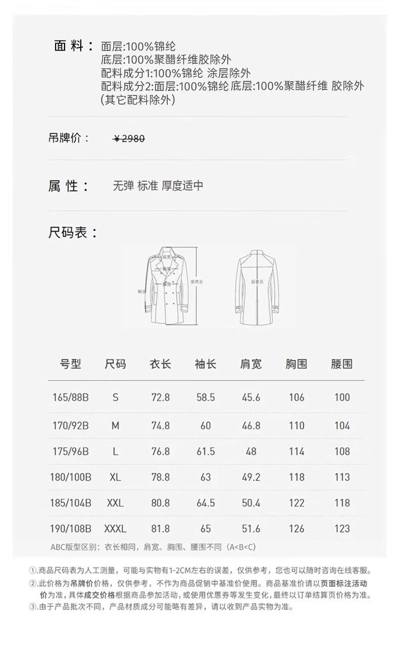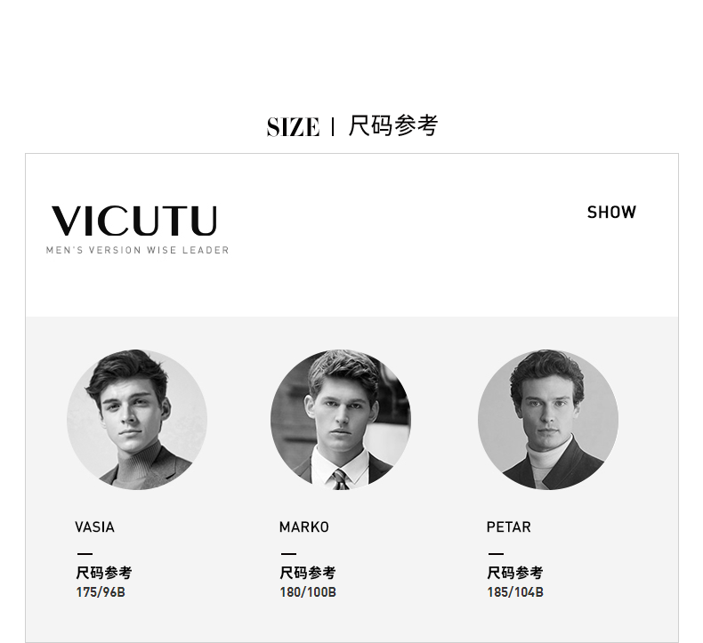 China (cm) 165 / 88-90 170 / 96-98 175 / 108-110 180 / 118-122 185 / 126-130