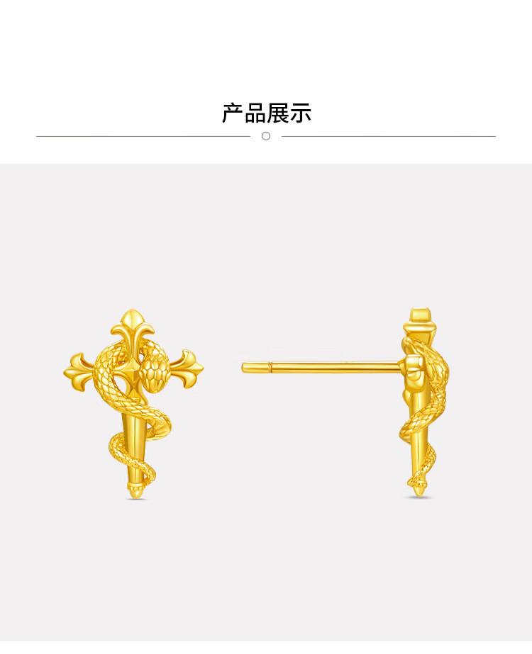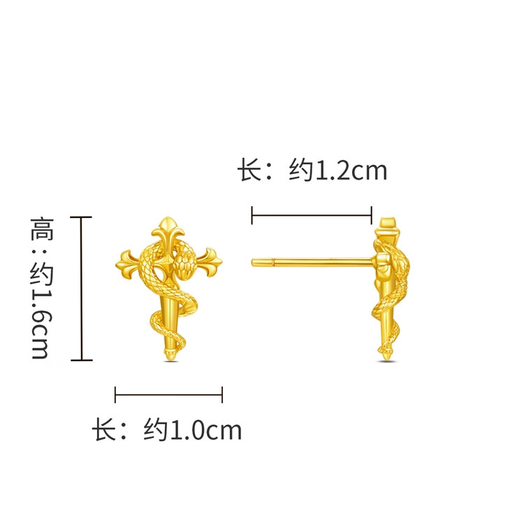 Chow Tai Fook Scepter Snake Earrings Gold Earrings (labor cost 320) about 3.05g EOF1447