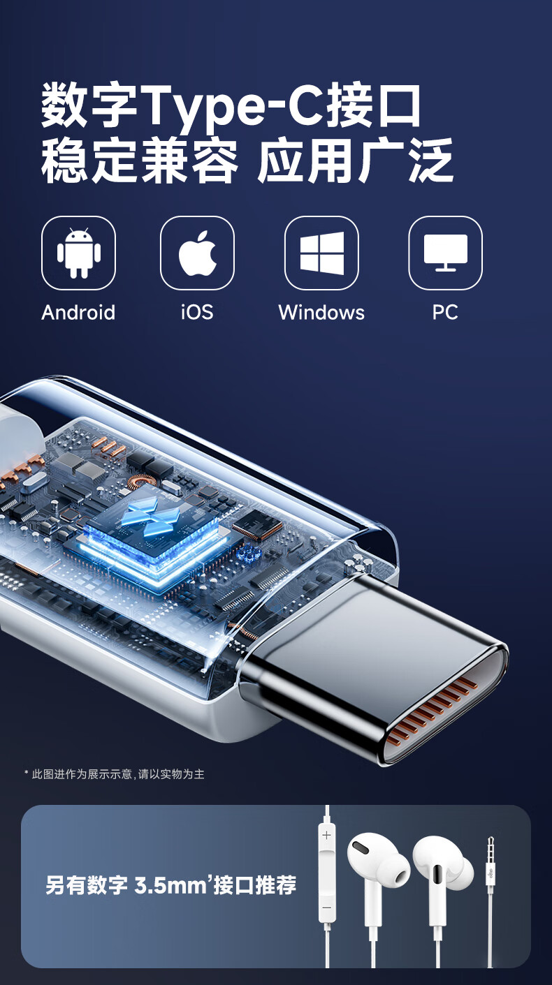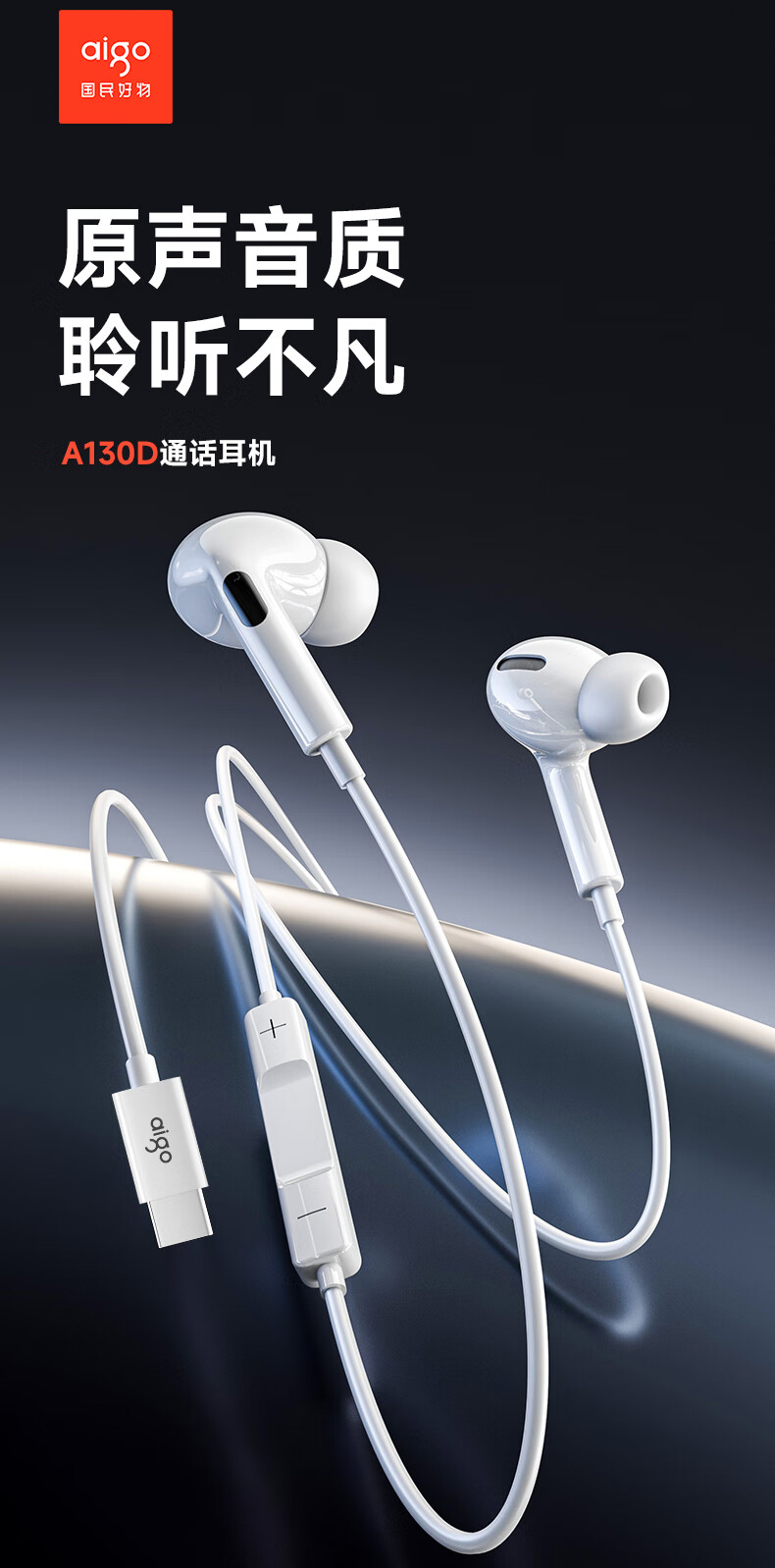 Patriot (aigo) original super good sound quality Type-c headset wired headset digital interface suitable for oppo Xiaomi Android mobile phone computer iPhone Apple 15/16 A130D