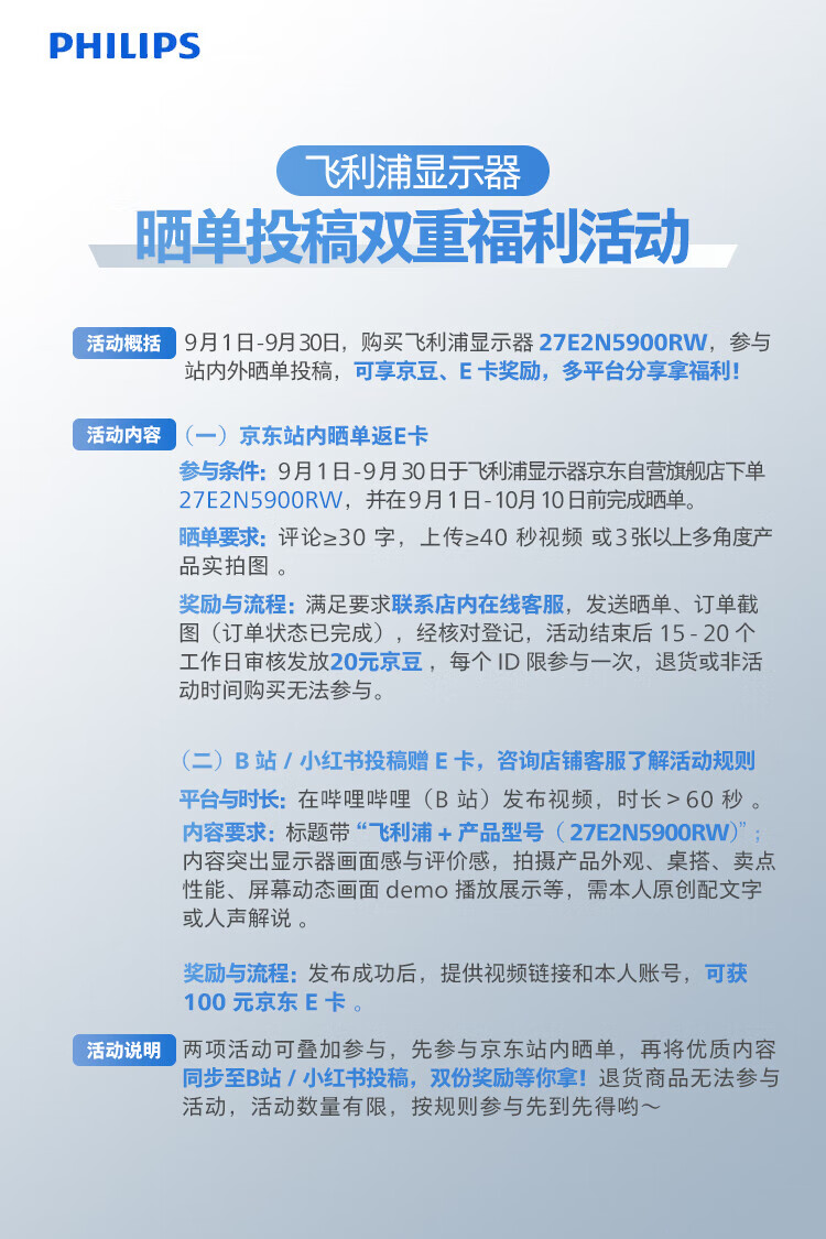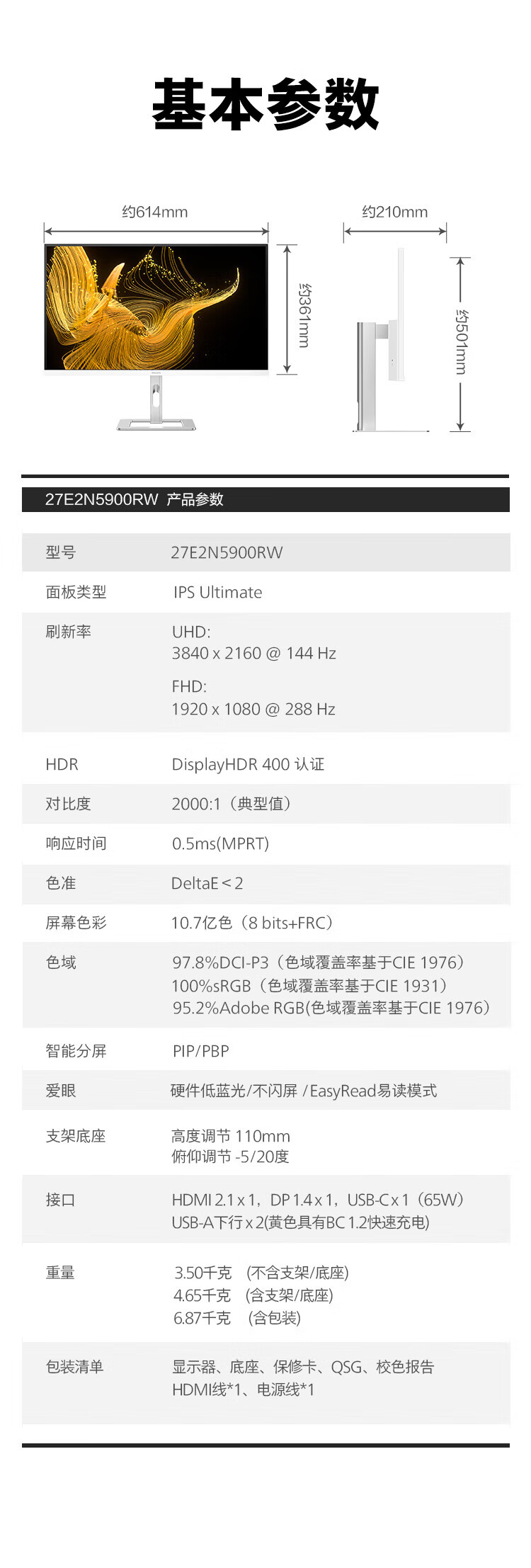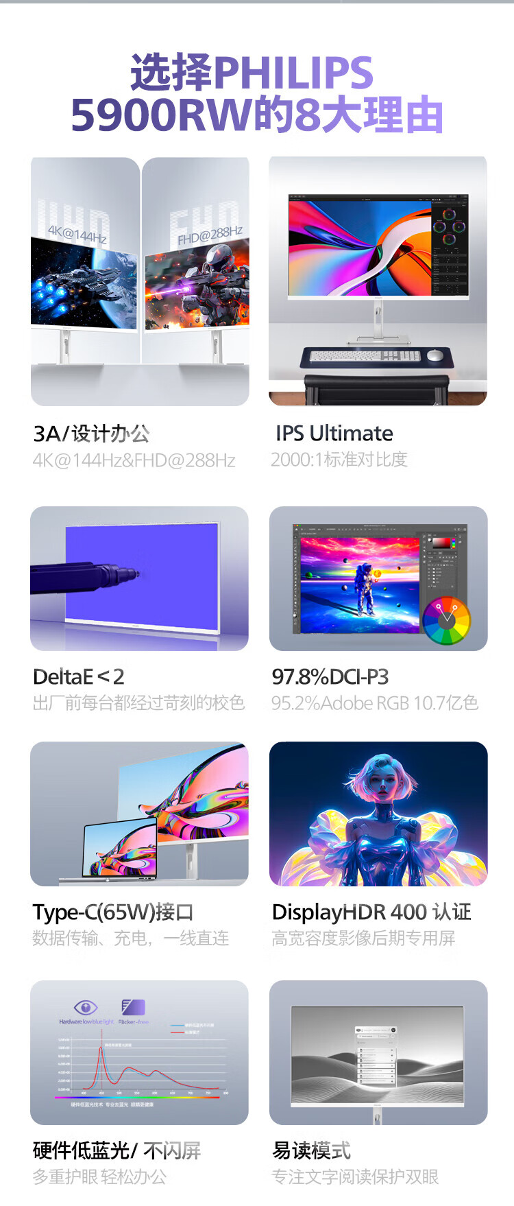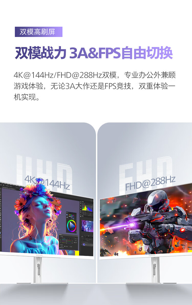Philips 27-inch 4K144Hz/288 dual-mode IPS hardware low blue light TypeC HDR400 97%P3 2000 1 design office monitor crystal screen 27E2N5900RW