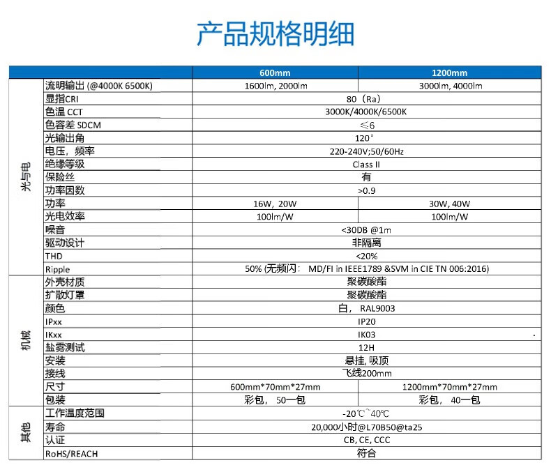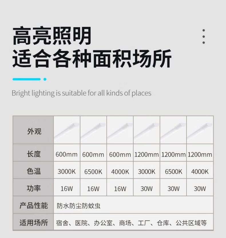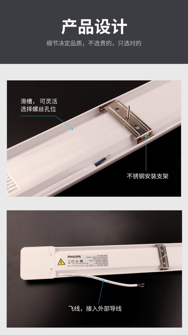Philips (PHILIPS) LED strip lamp fluorescent lamp full set of integrated bracket LED office wide body high-bright warehouse fluorescent lamp 1.2 meters 40W 6500K cold white light