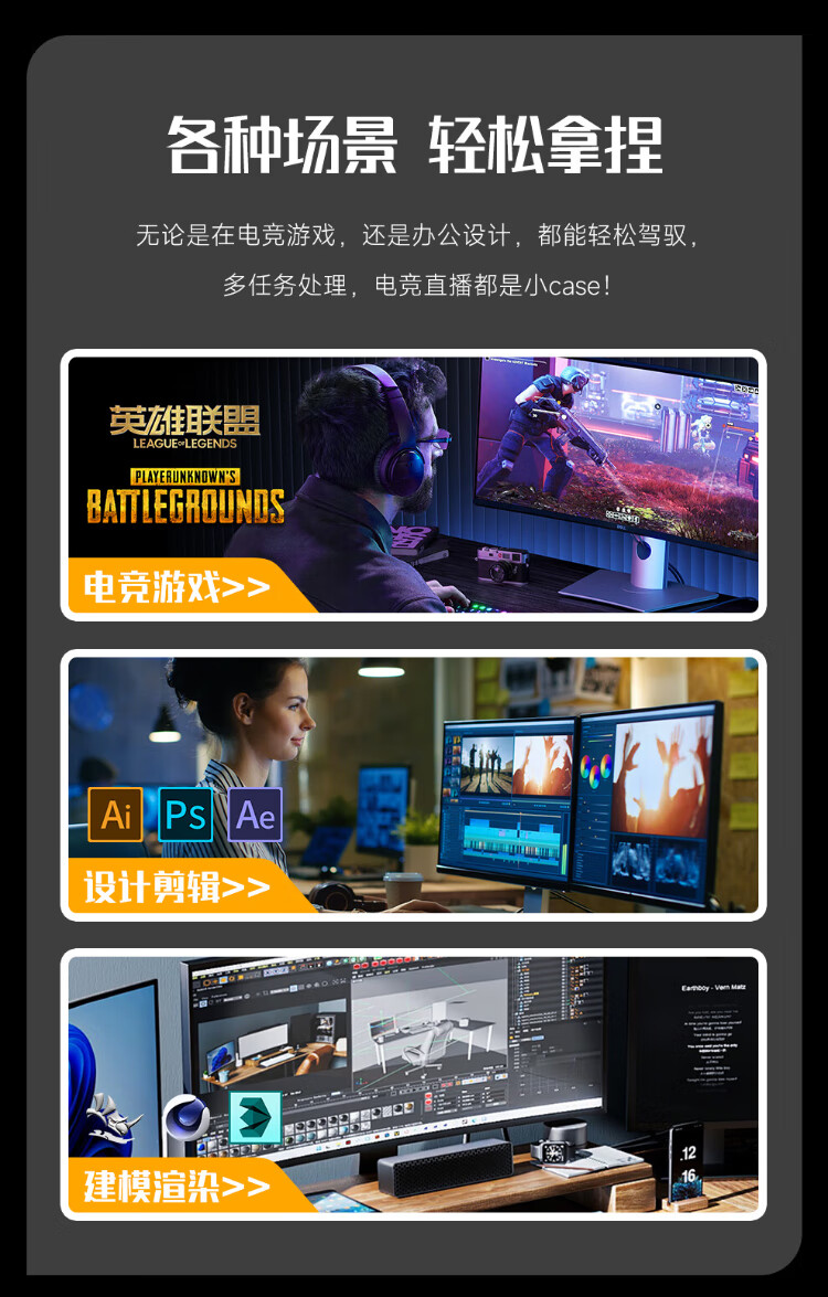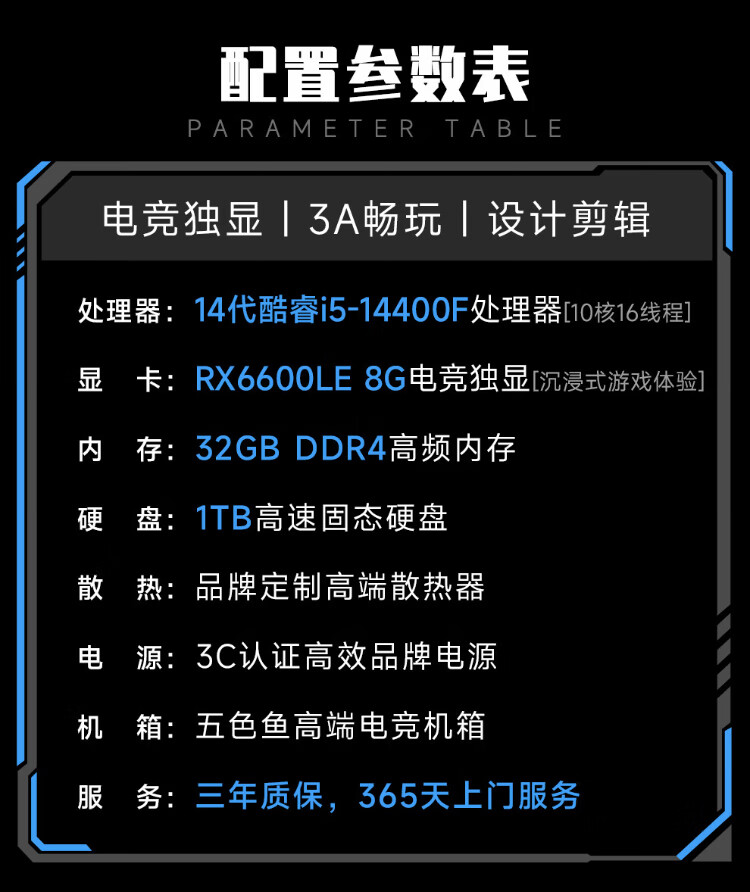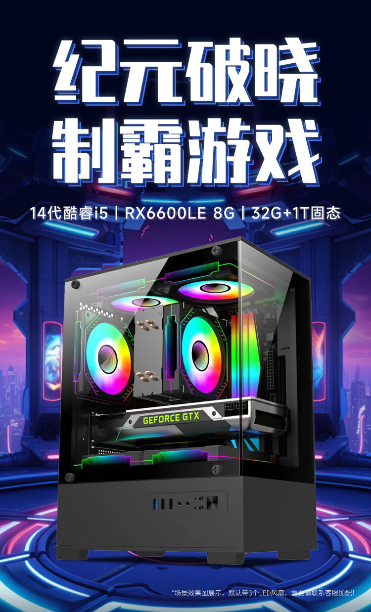 WuSeYu office gaming desktop computer desktop computer host complete set (14th generation Core i5-14400F 32G+1TB RX6600LE 8G comparable to RTX3060)