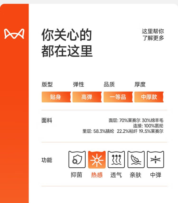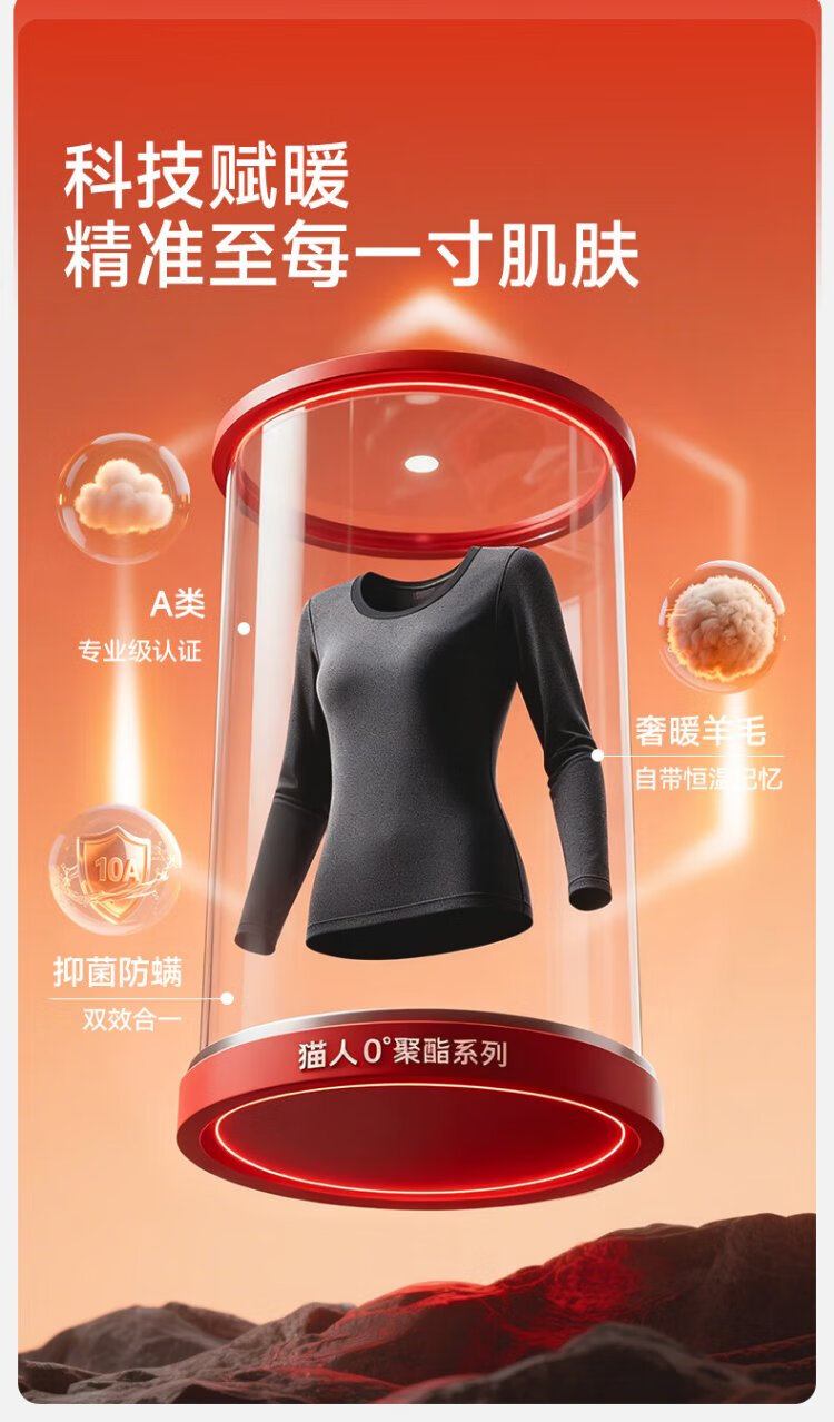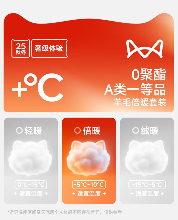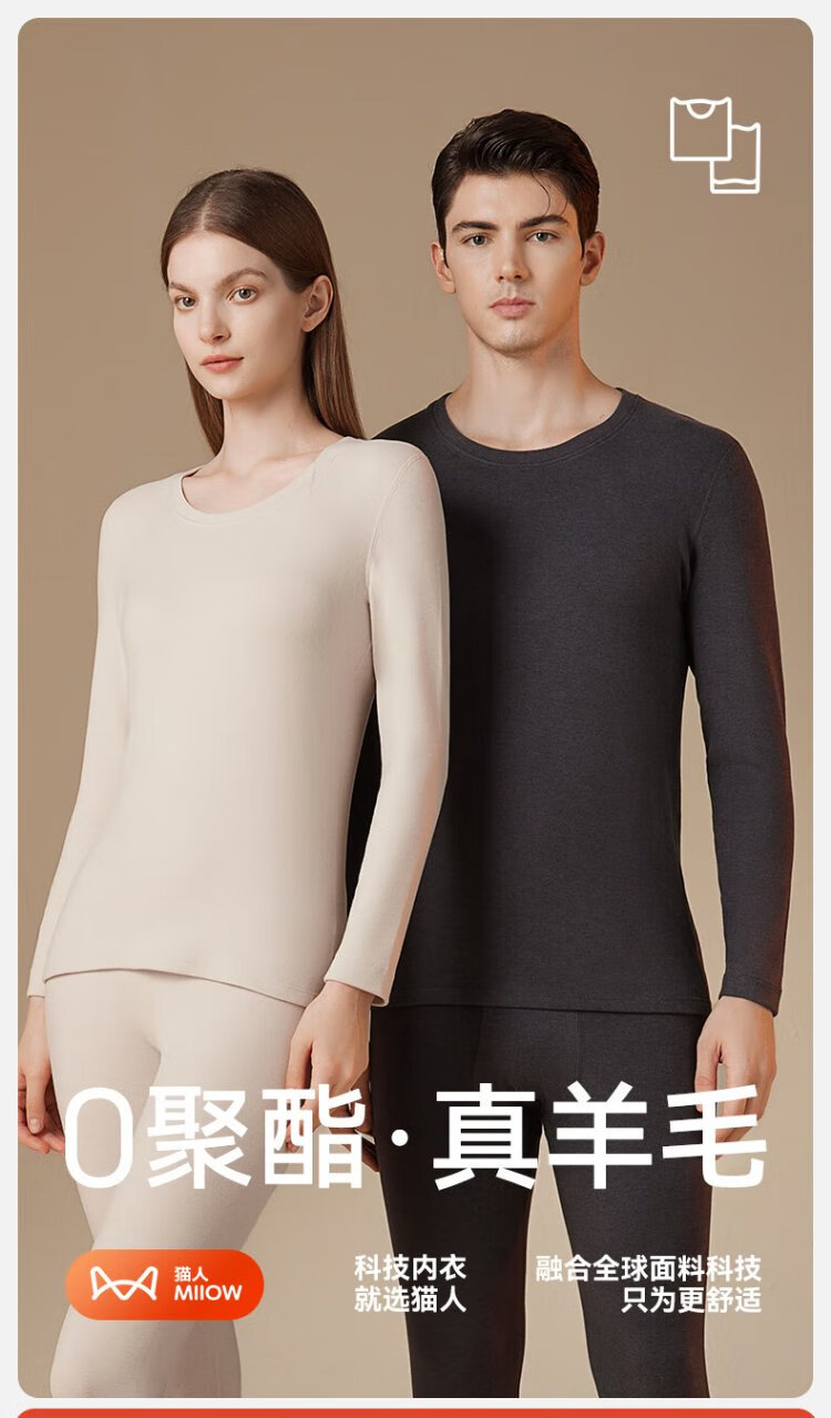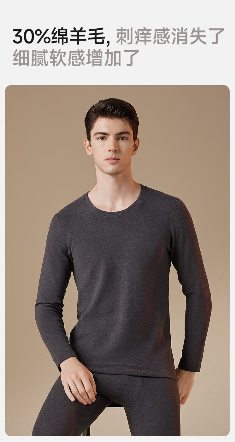 Catman 30% real wool round neck thermal underwear men's close-fitting, comfortable, seamless, thermal, warm autumn coat and long trousers set
