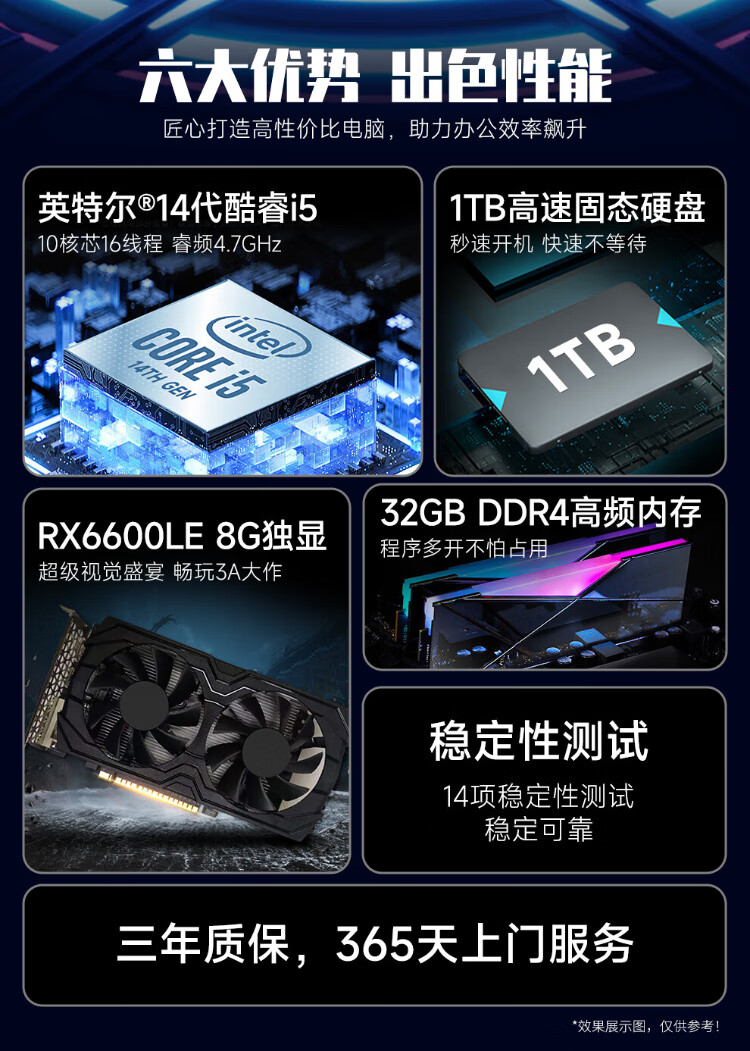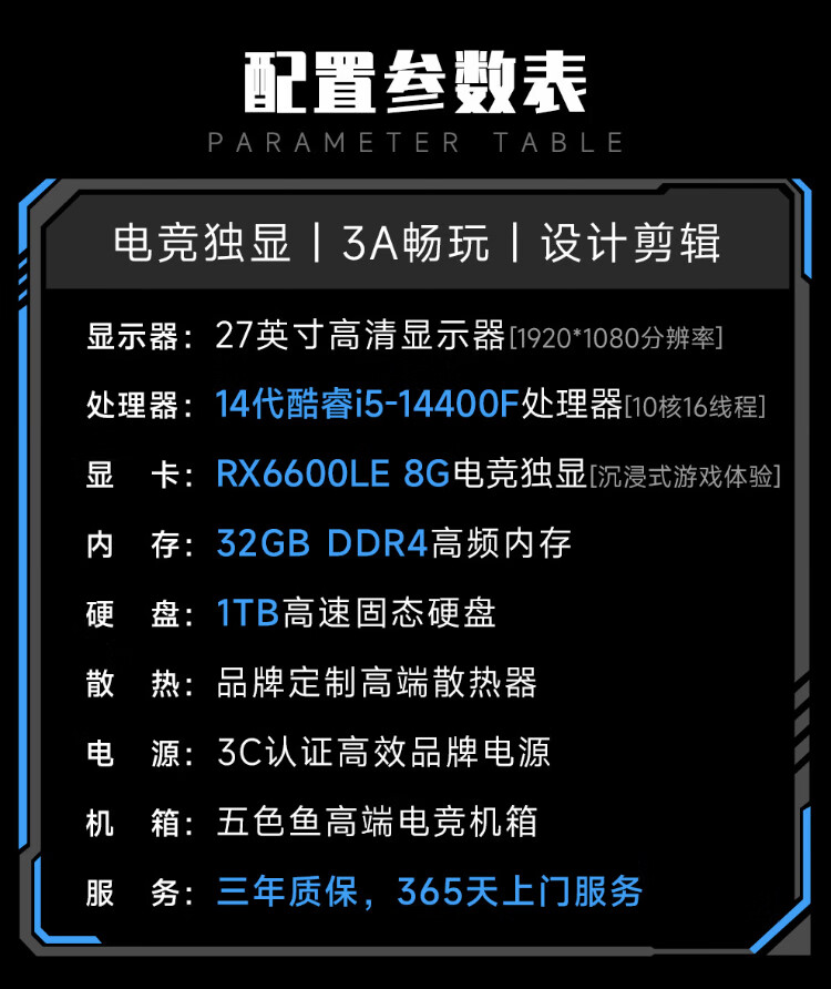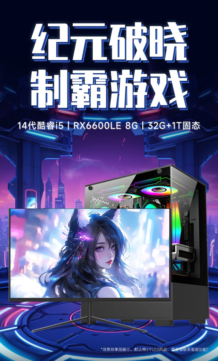 WuSeYu office gaming desktop computer desktop computer host complete set (14th generation i5-14400F 32G+1TB RX6600LE 8G comparable to RTX3060) 27 inches