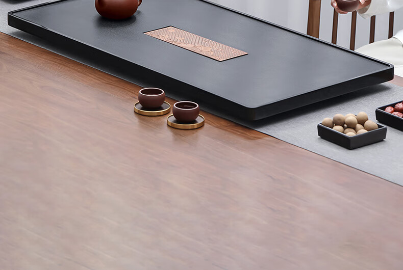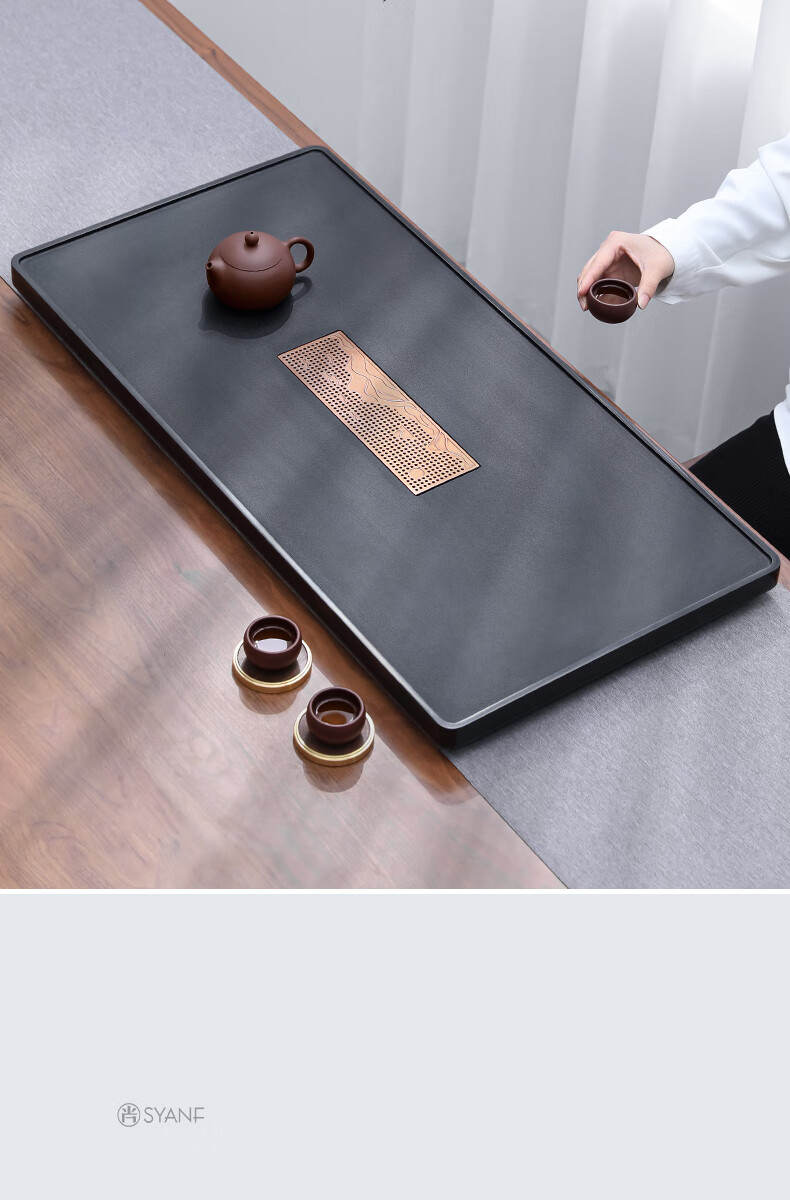 Shangyanfang natural black gold stone tea tray tea tray with drainage high-end home office kung fu tea set dry tea brewing table