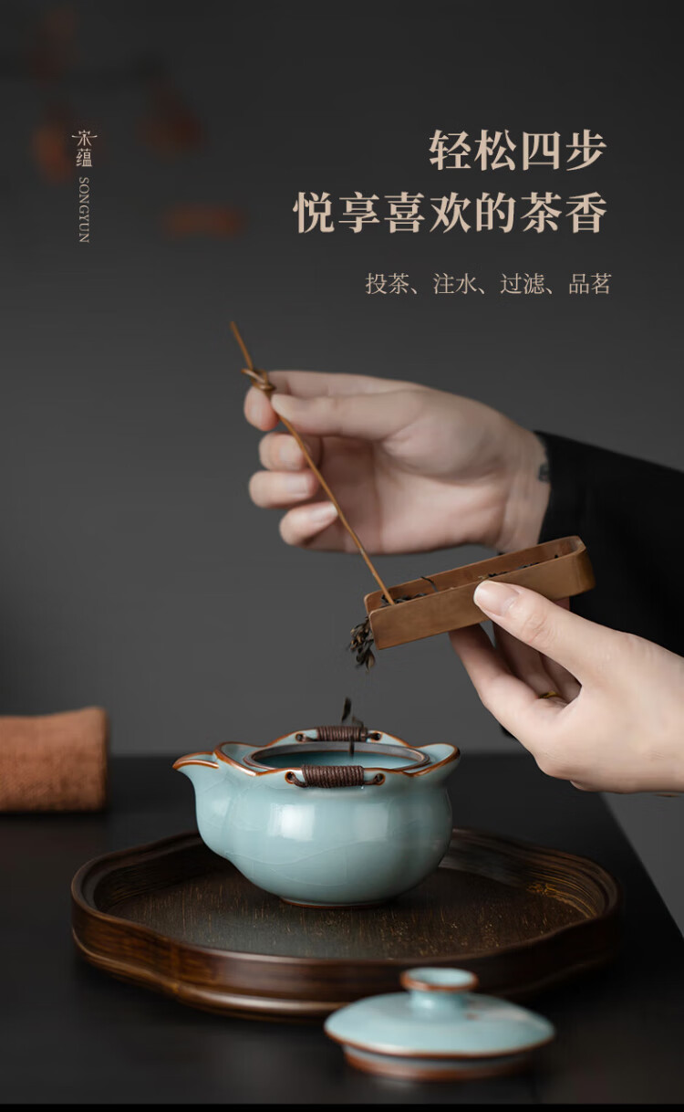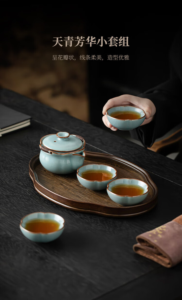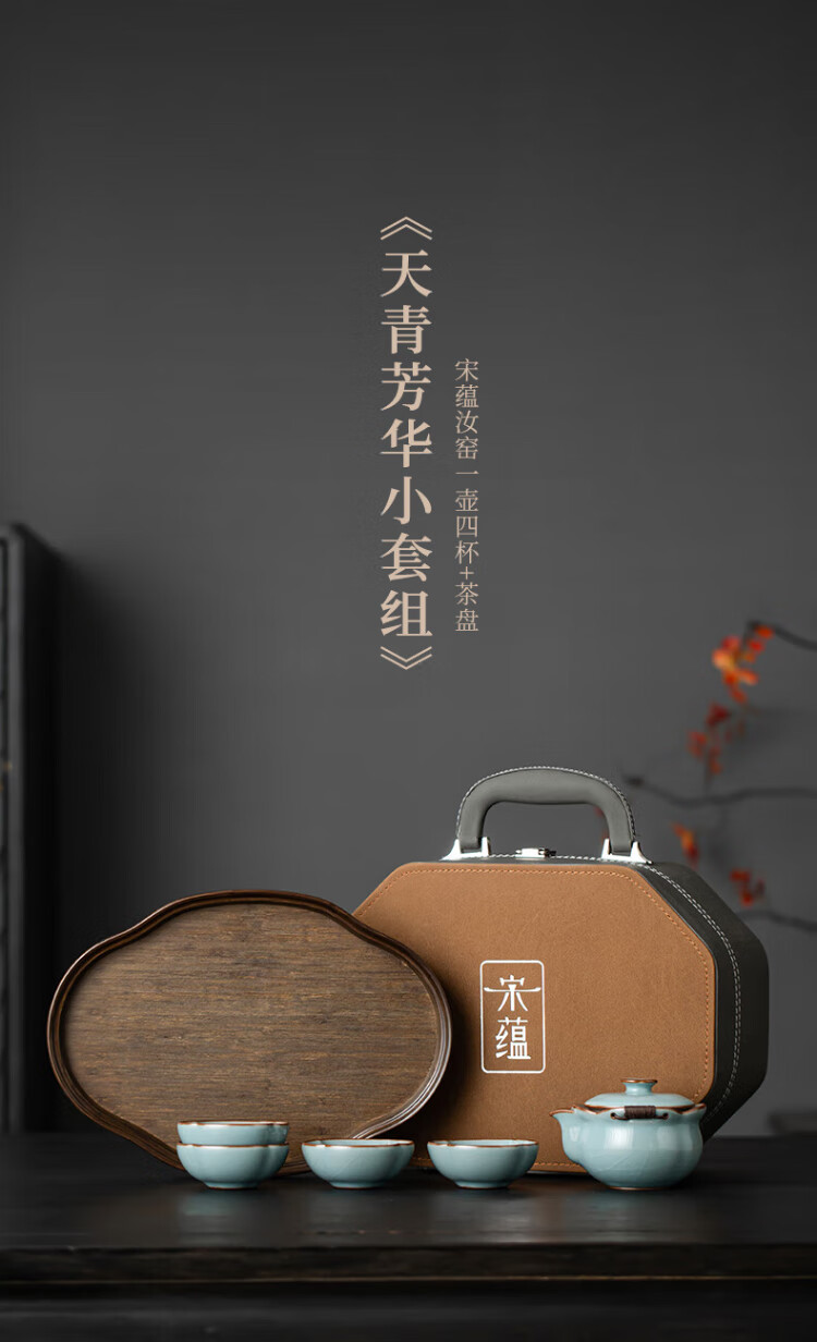Song Yun Li Guilian Ru Kiln Tea Set High-end Kung Fu Tea Set Portable Tea Set Gift Box Housewarming Souvenir