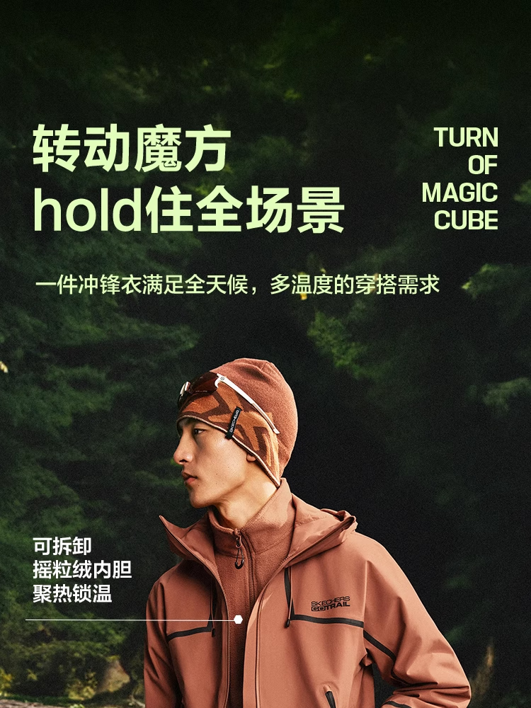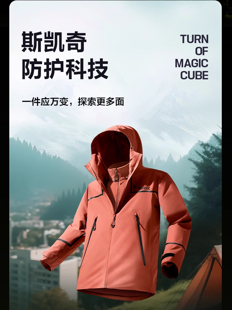 Skechers Tony Leung's same style Rubik's Cube 2.0 three-in-one jacket men's waterproof breathable polar fleece to keep warm