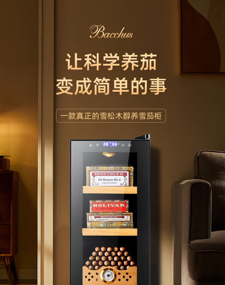 Bacchus humidor constant temperature and humidity control humidifier box mini small household solid wood cedar wood embedded pure culture naked (vertical mini-1 naked care + 2 box care) BWH-35D3