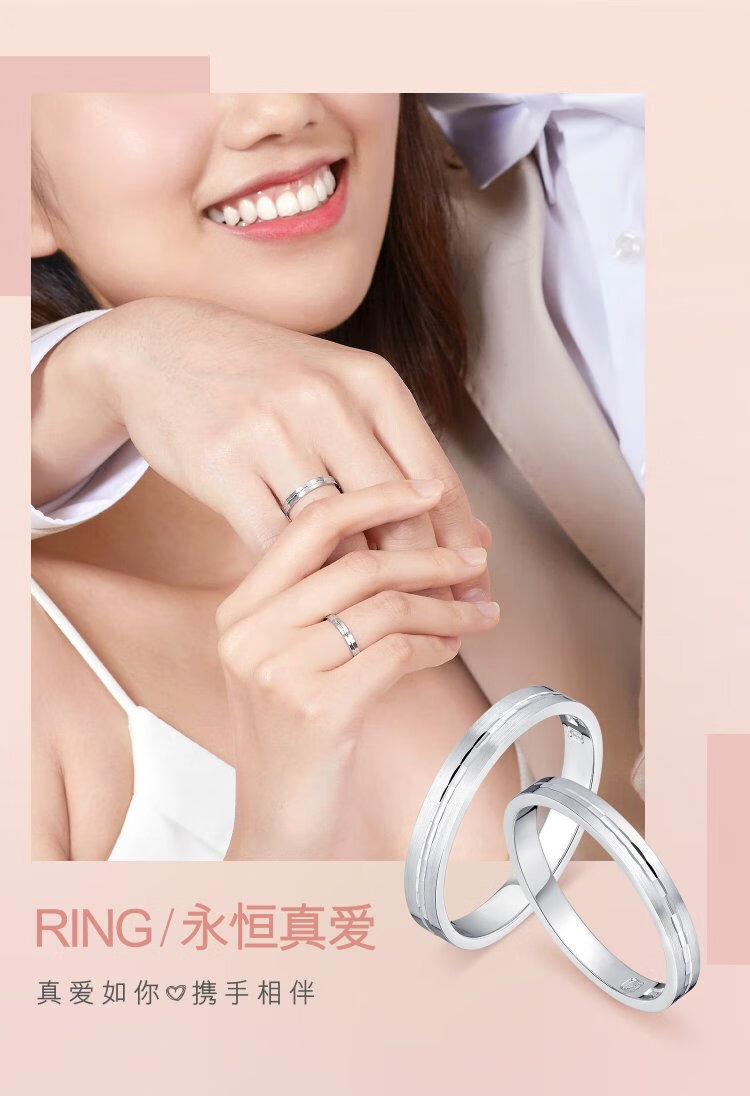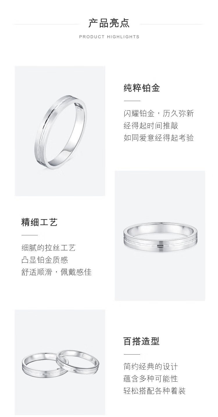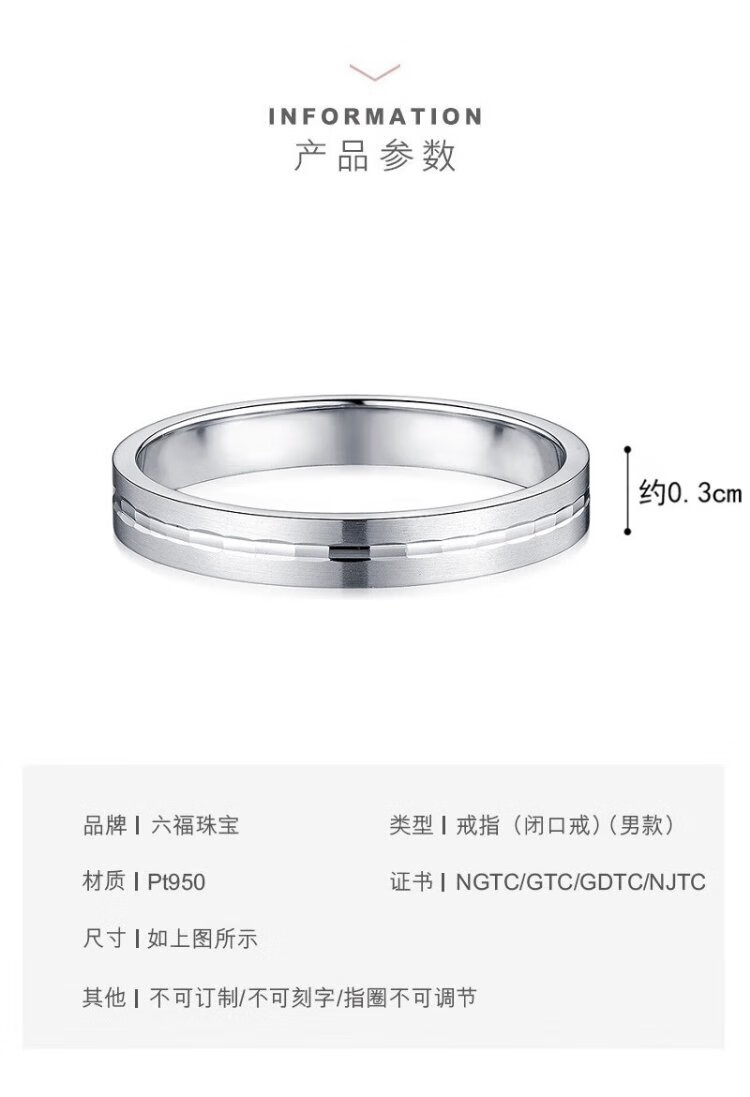 Lukfook Jewelry Platinum 950 Eternal True Love Couple Platinum Ring Men's Price Size 18 - About 3.51 grams