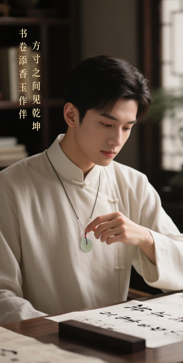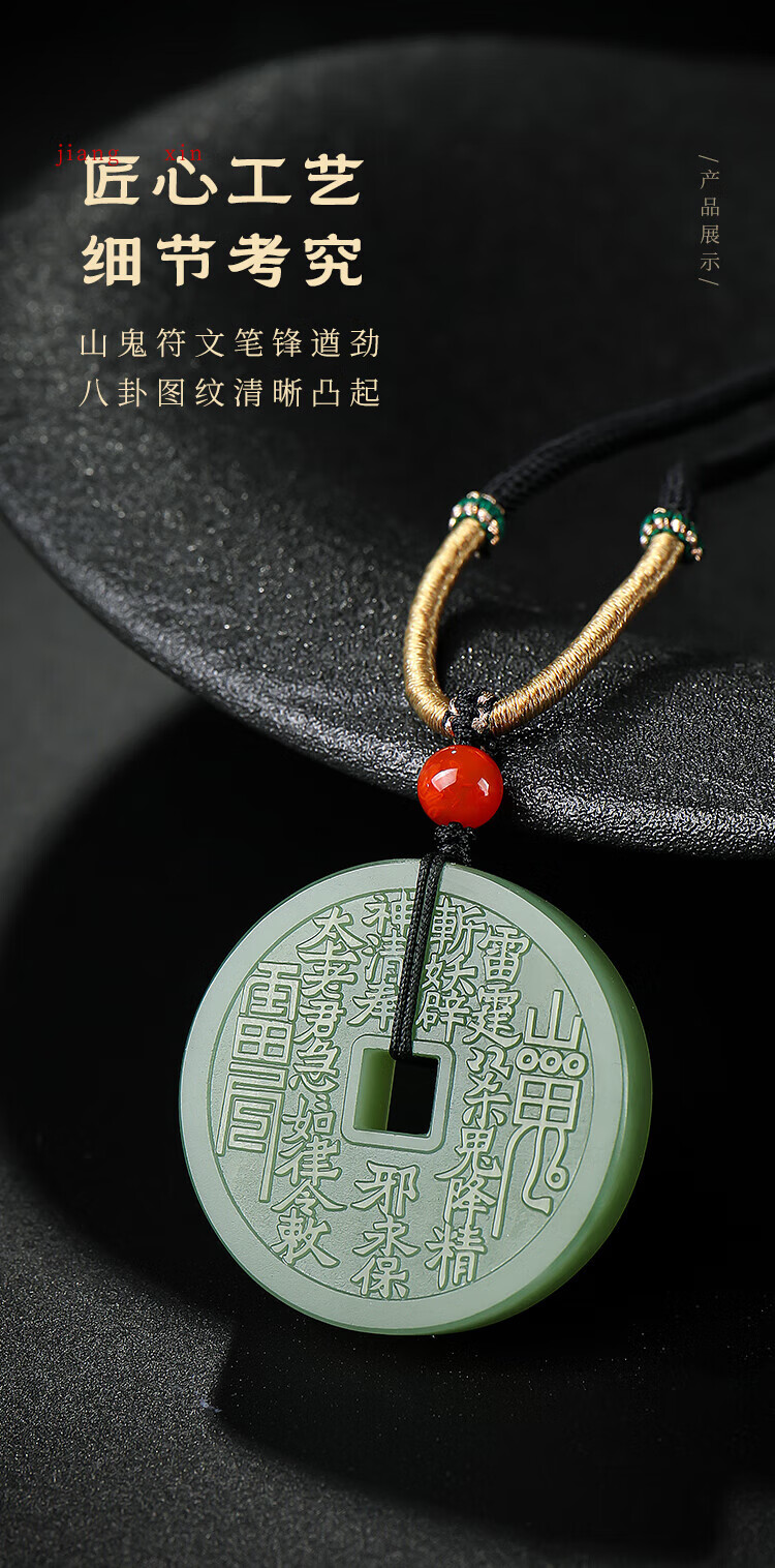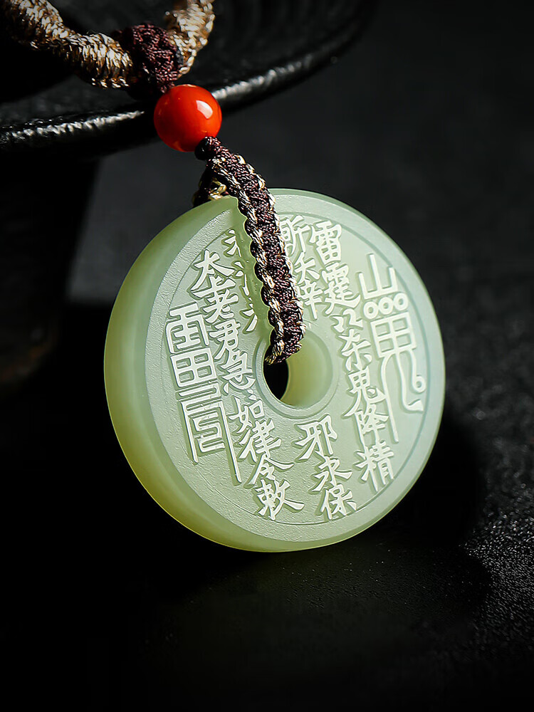 Pure Heart Stone Classic Hetian Jade Peace Buckle Pendant Light Green Jade Mountain Ghost Spending Jade Pendant Diameter About 30mm