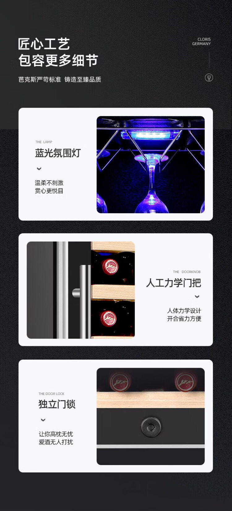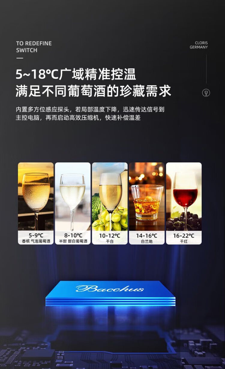 Bacchus wine cabinet double-door 150-bottle large-capacity constant-temperature wine cabinet for home commercial ice bar built-in left drink type + right hanging cup type YC-208 compressor