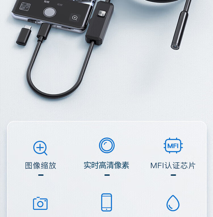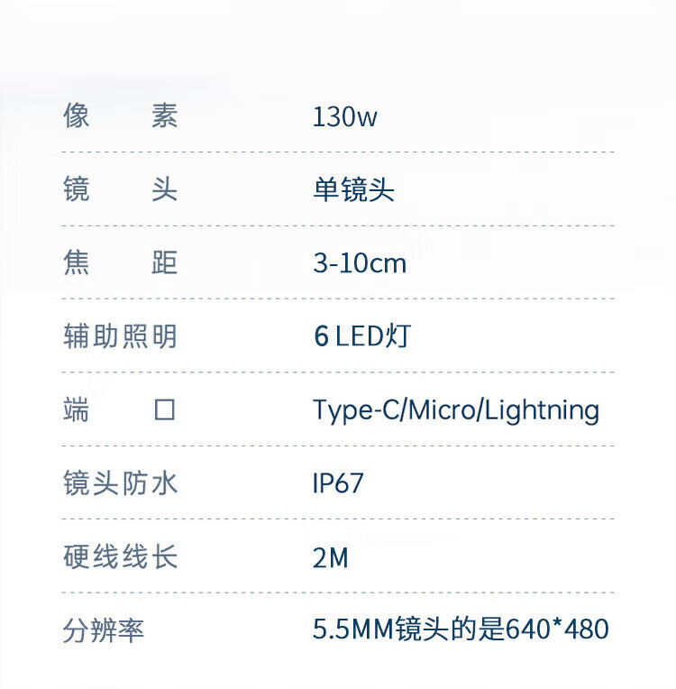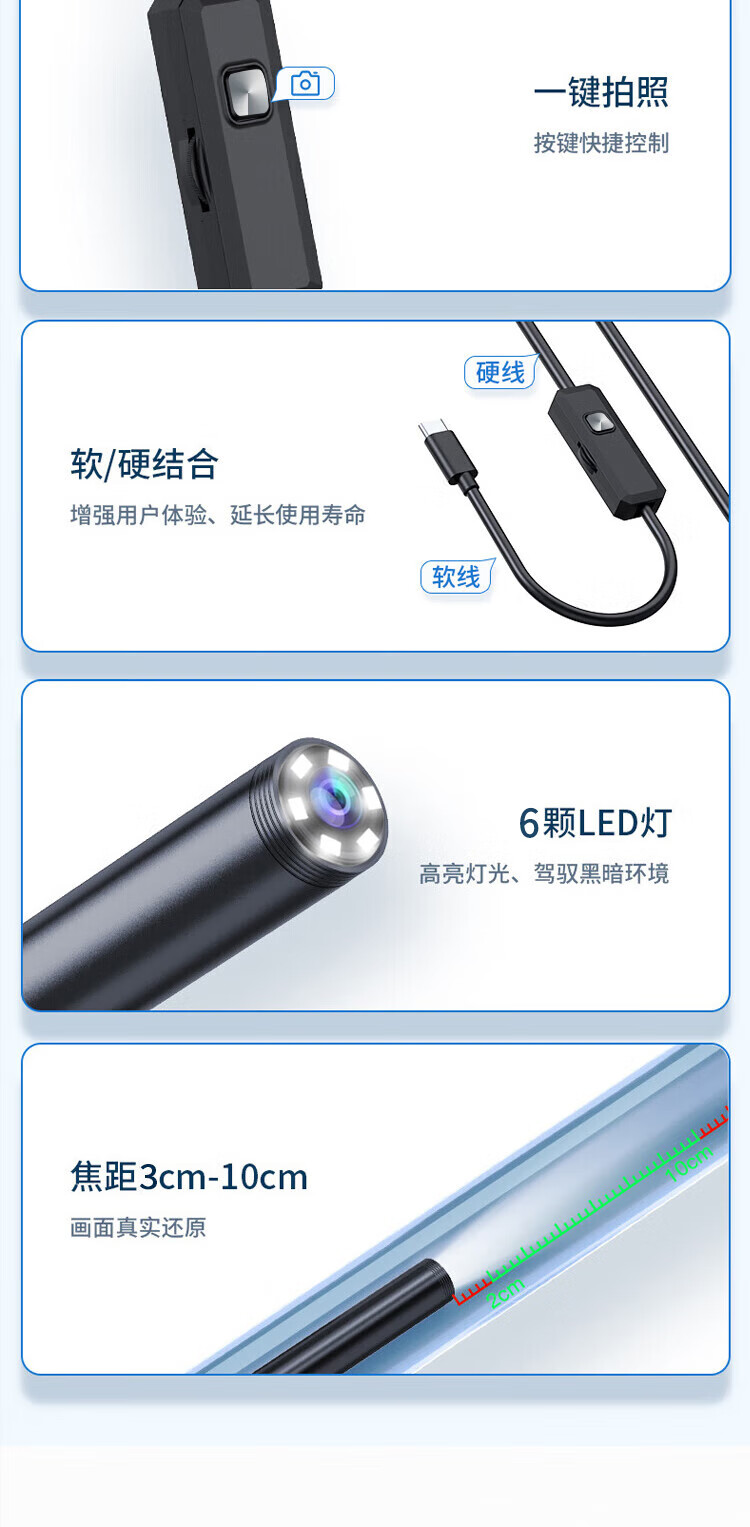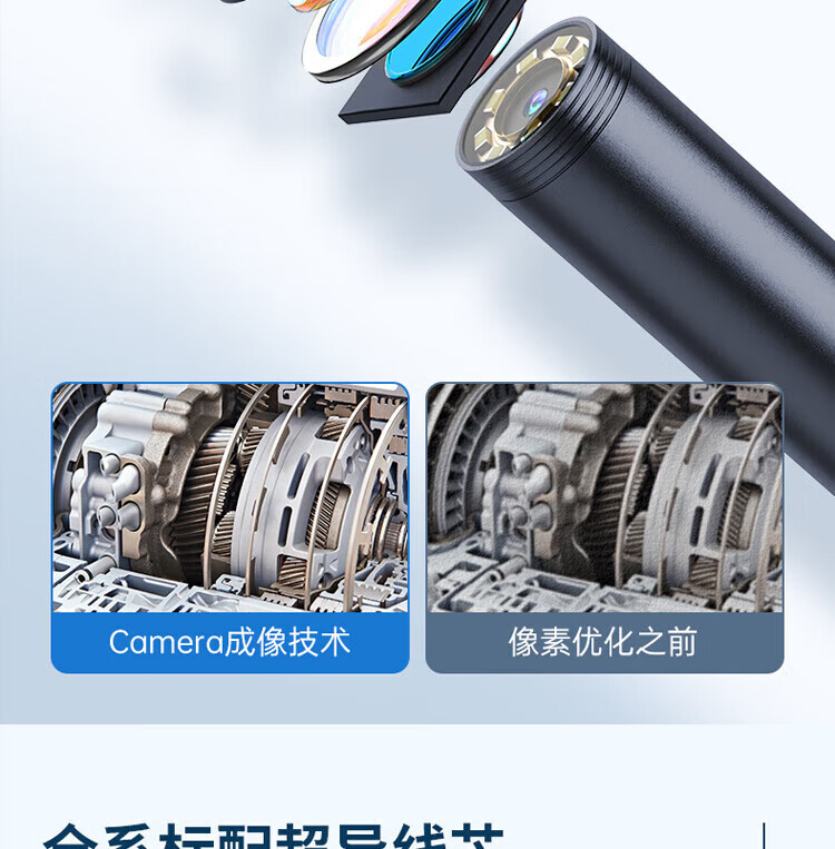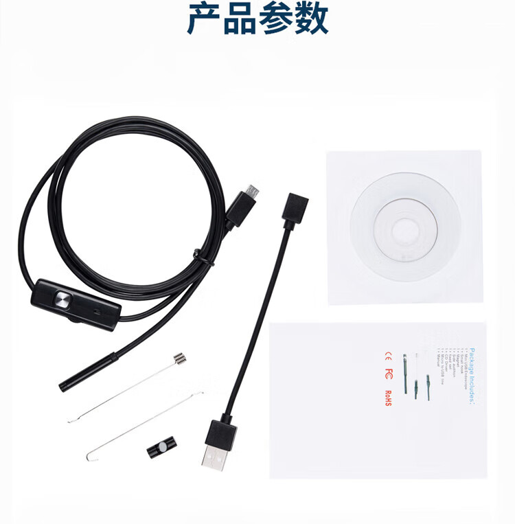 Honggong Endoscope Car Sewer Pipe Repair HD Camera Industrial Waterproof Probe Detection 2 Meter Hard Wire