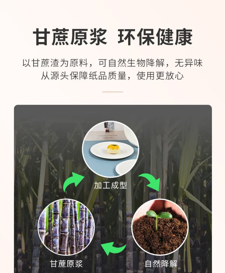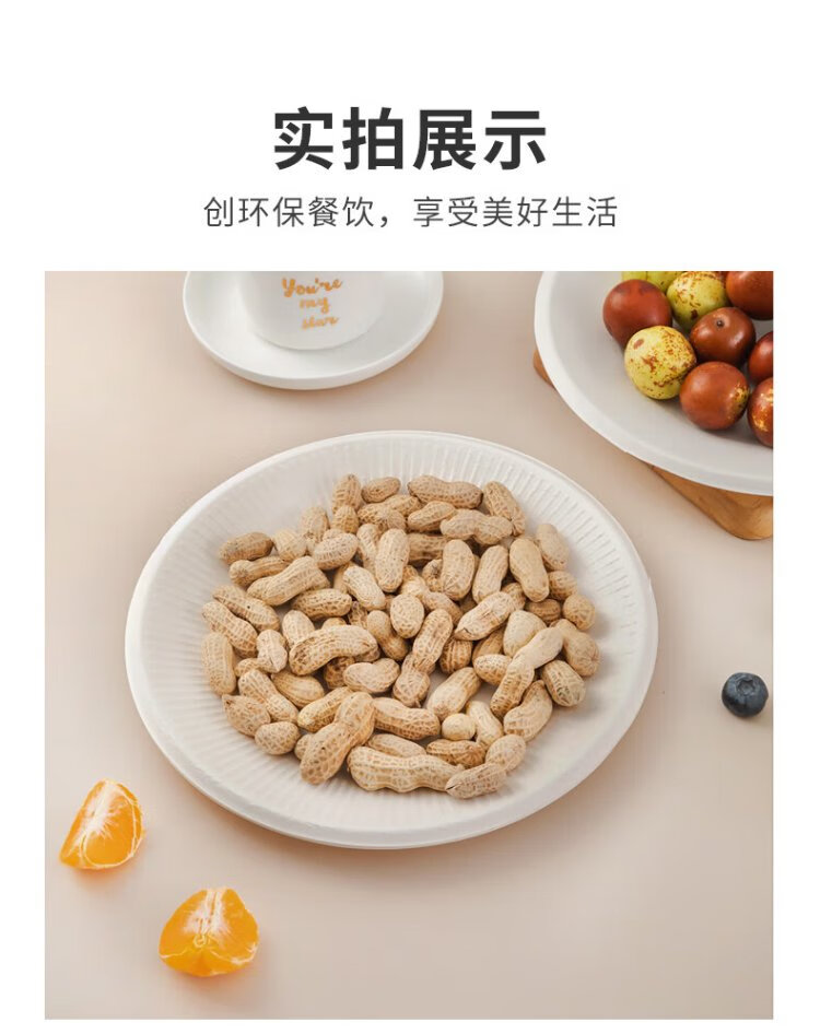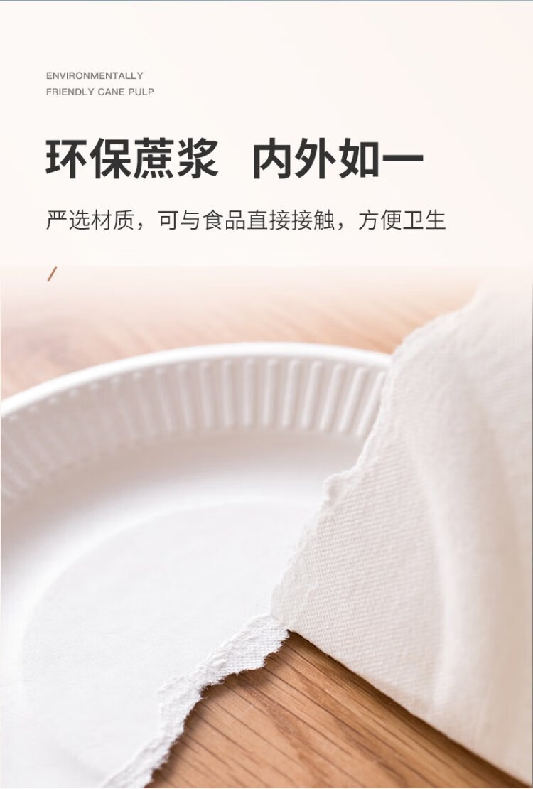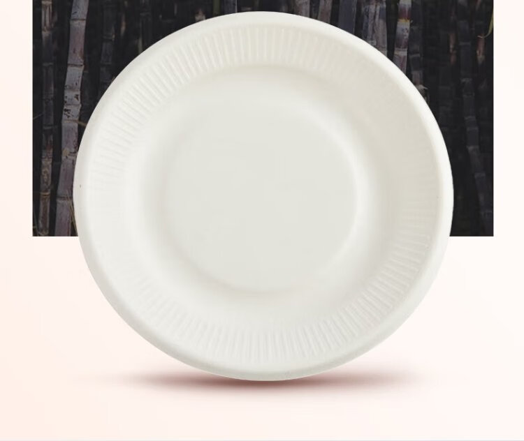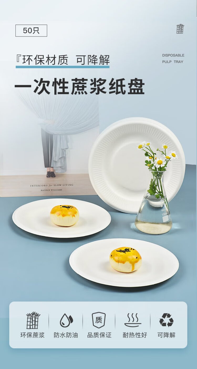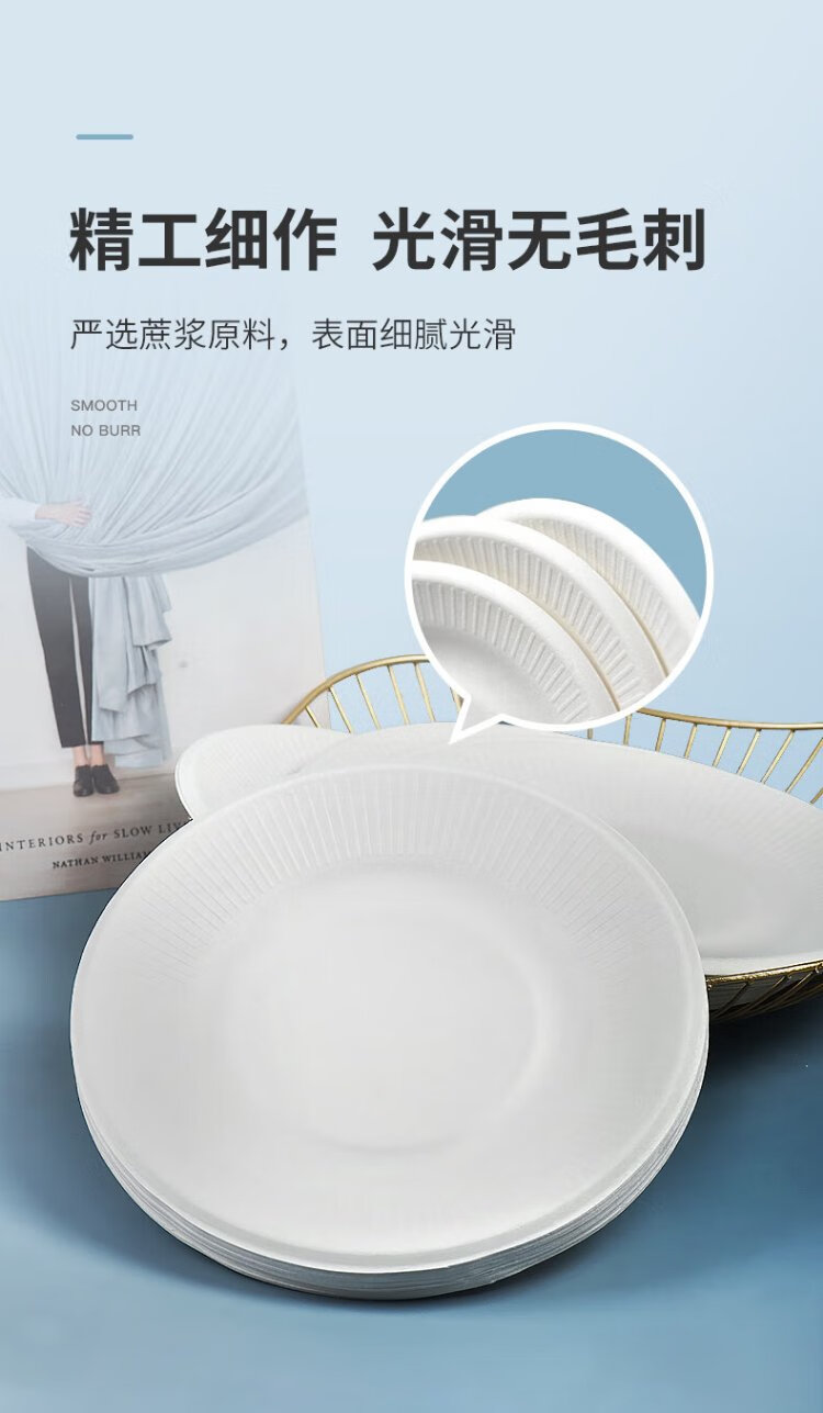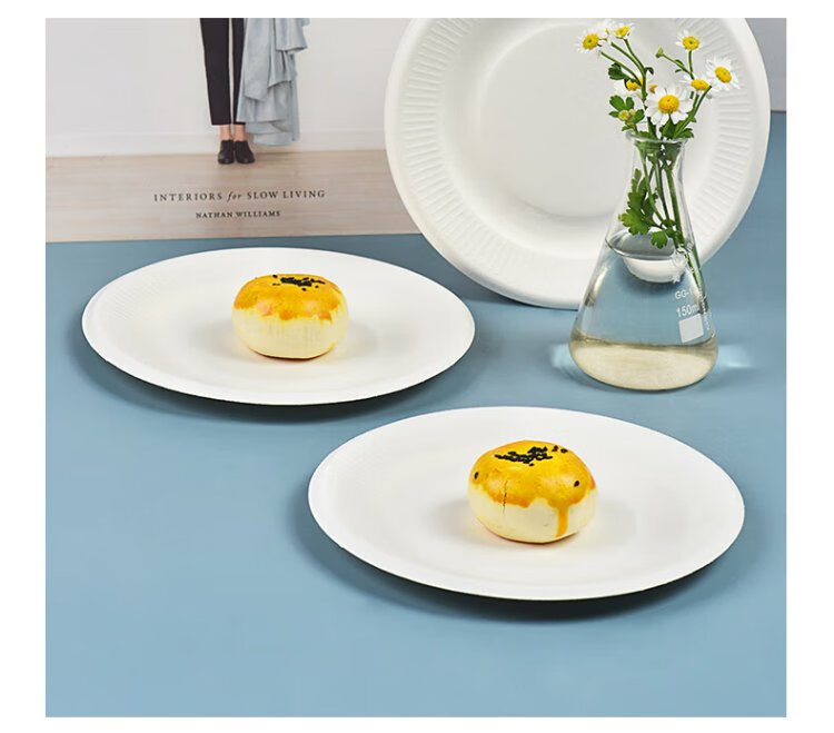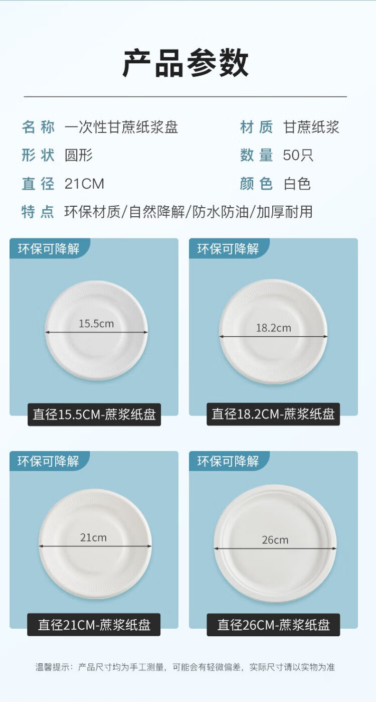Temeiju disposable plate large cake plate saucer barbecue picnic plate sugarcane paper plate dessert fruit plate 21cm 50 pieces
