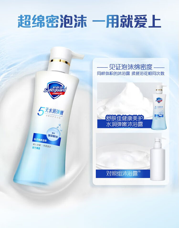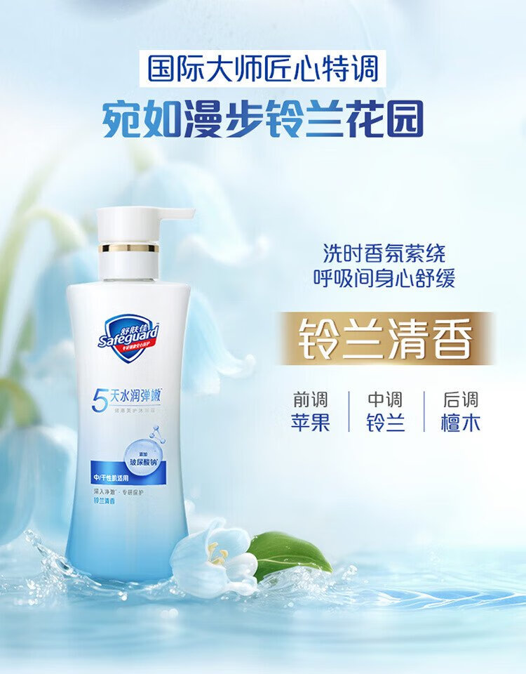 Safeguard Healthy Beauty Shower Gel Little Blue Bottle Lily of the Valley Fragrance 400g Moisturizing and Tender Shower Lotion for Medium to Dry Skin