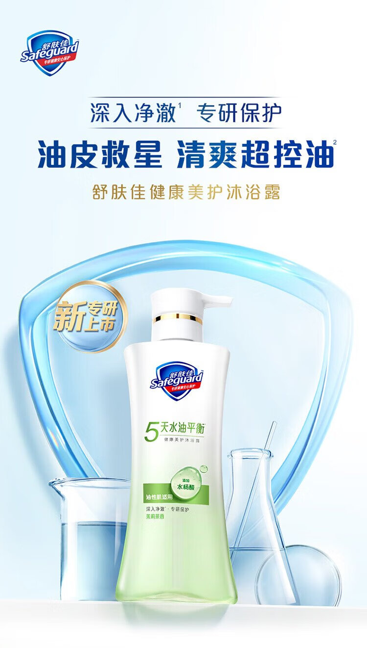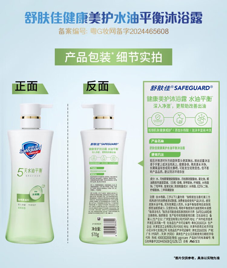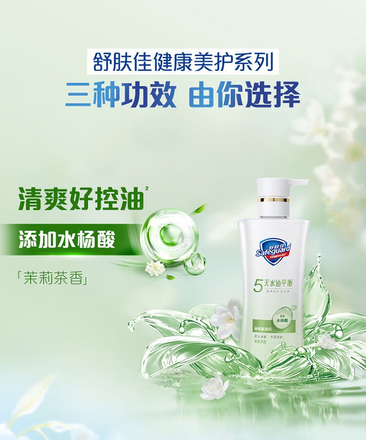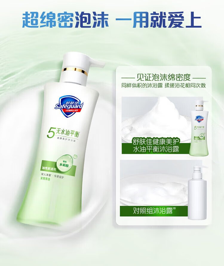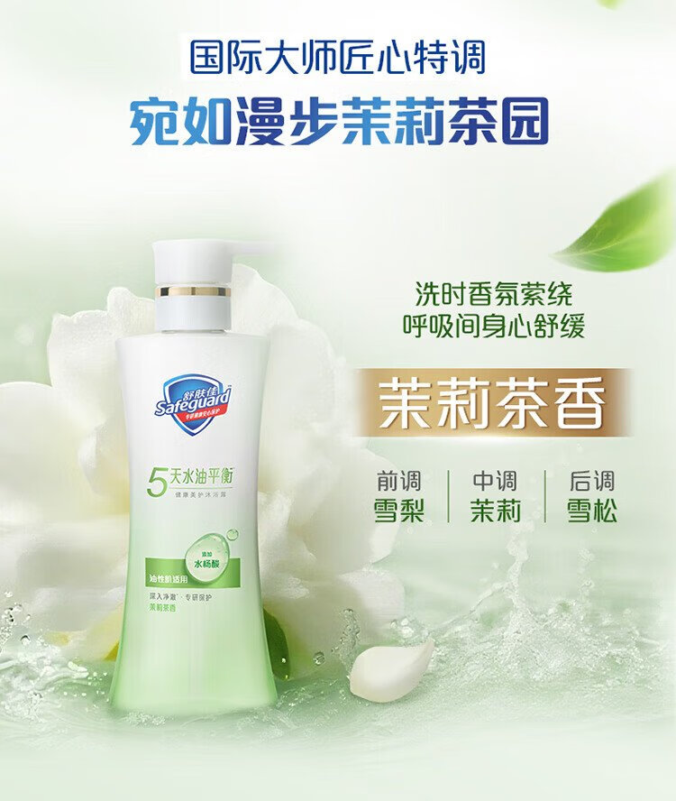 Safeguard Healthy Beauty Shower Gel Small Green Bottle Jasmine Tea Fragrance 570g Oil Control Oil Removal Cleansing Oily Skin Shower Gel for Men